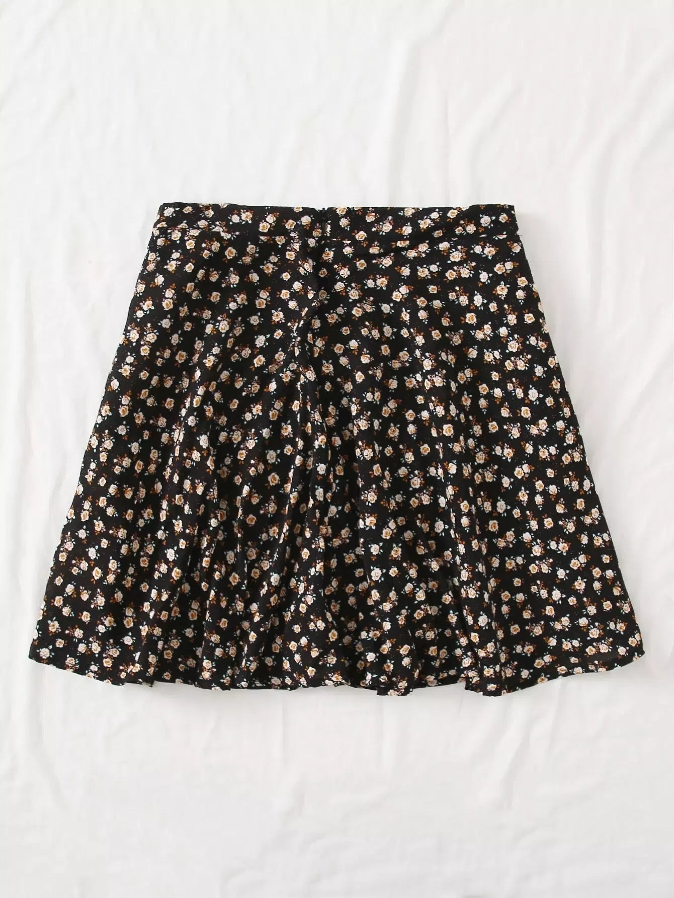 تنورة ديتسي مزينة بالورود بسحاب من الخلف