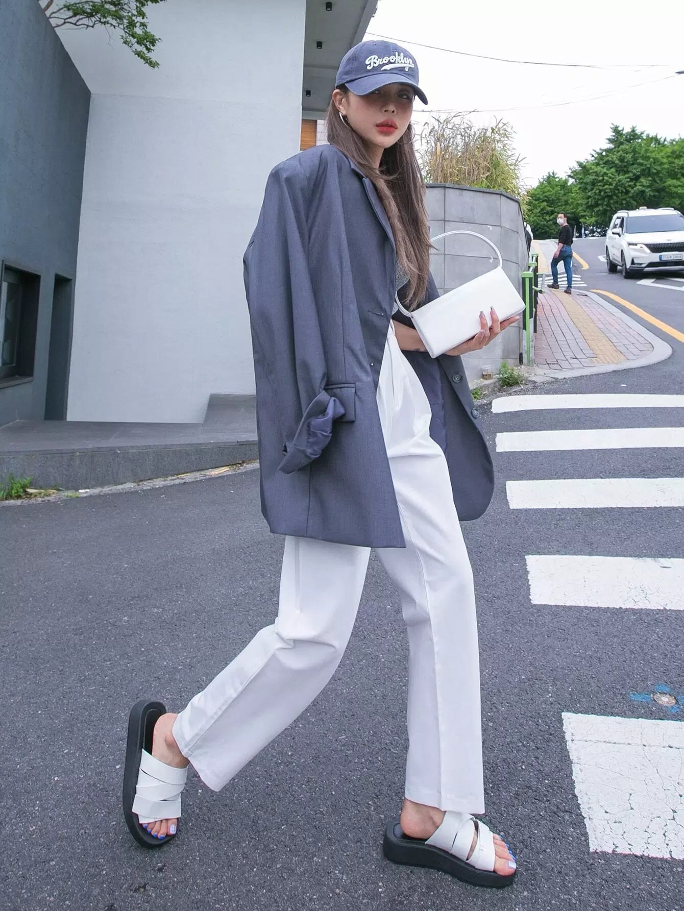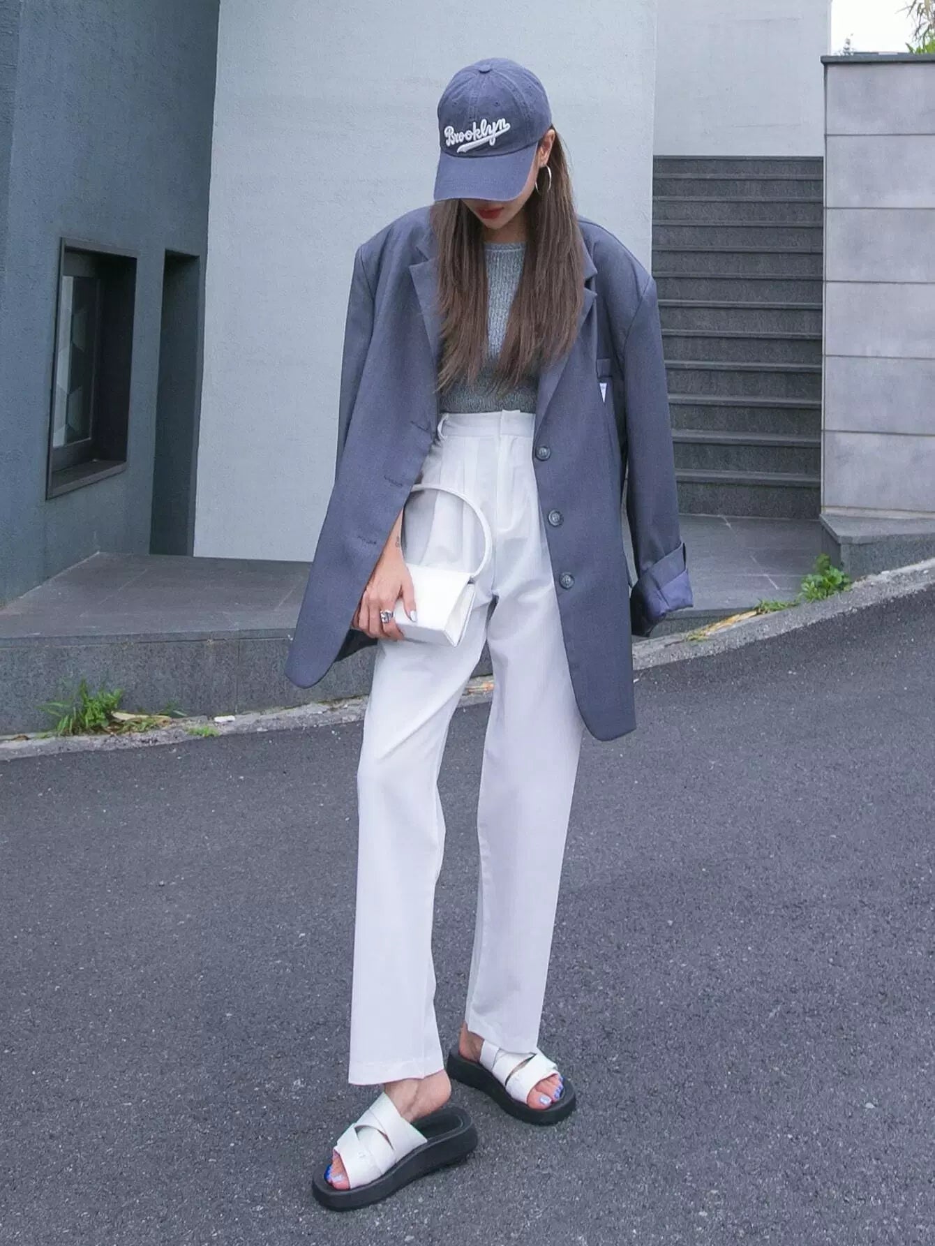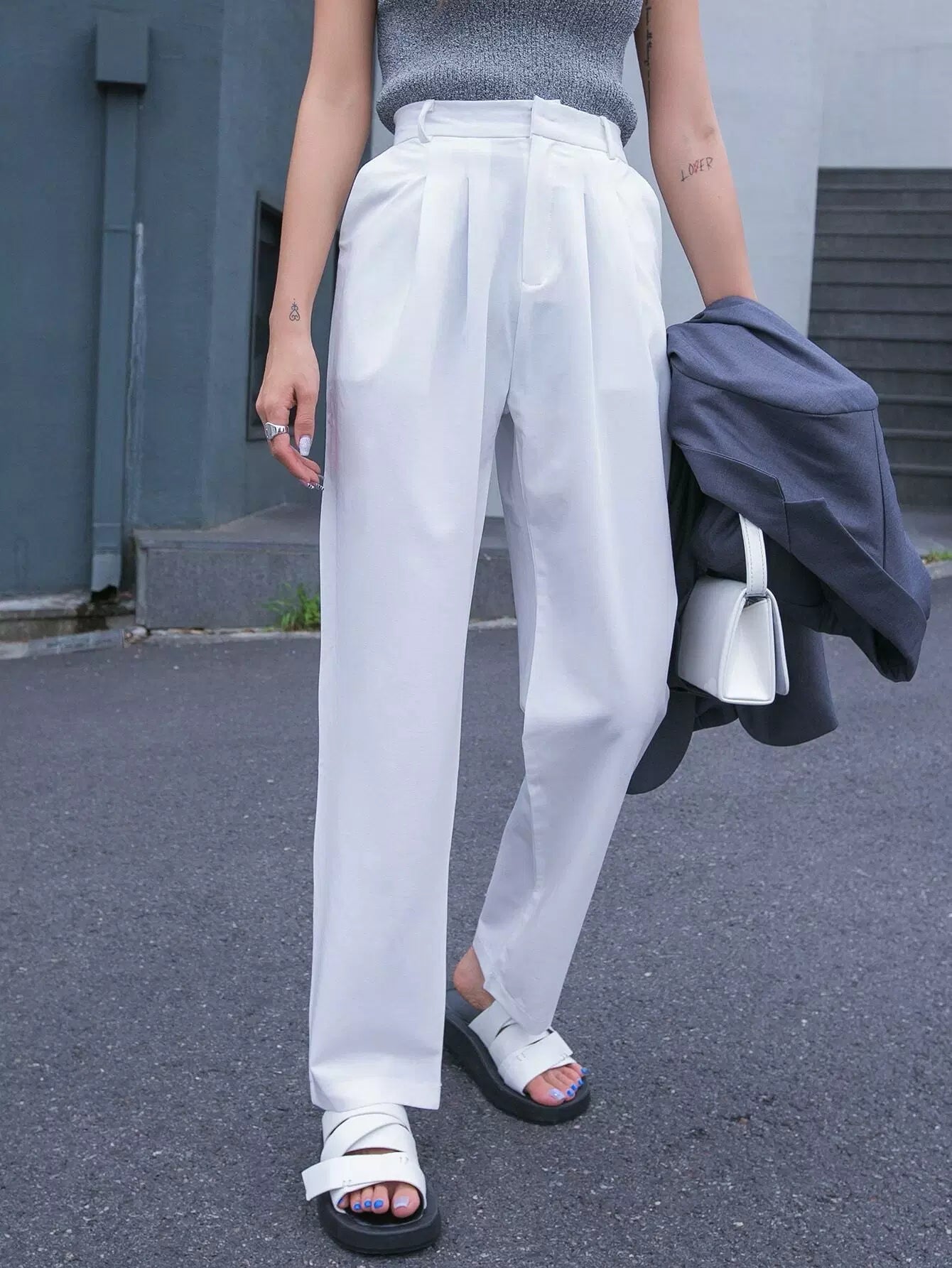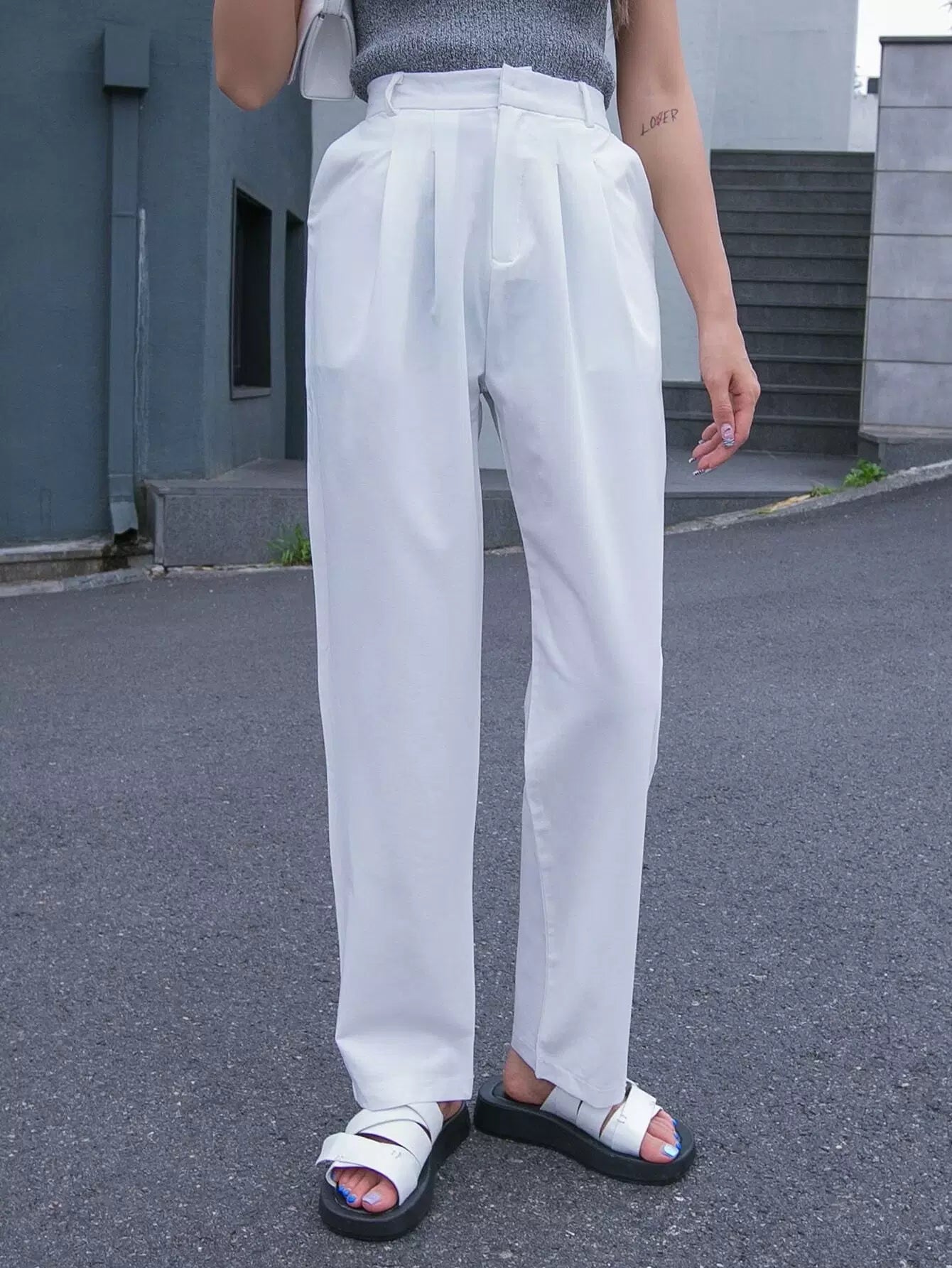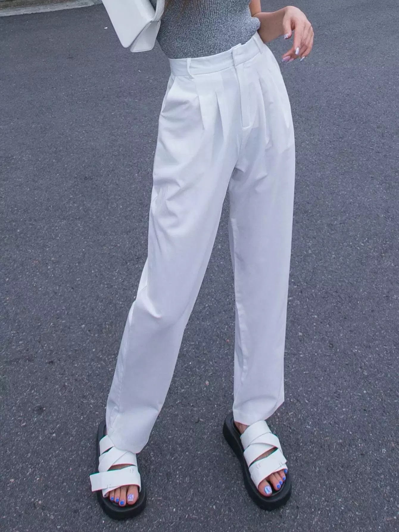 بنطلون مستقيم بسحّاب بسحّاب