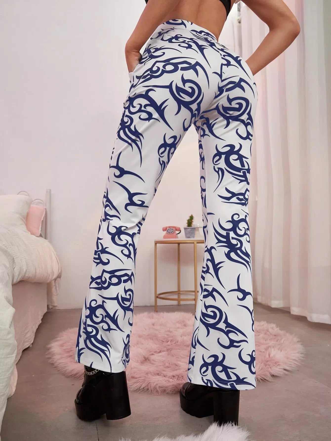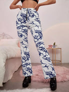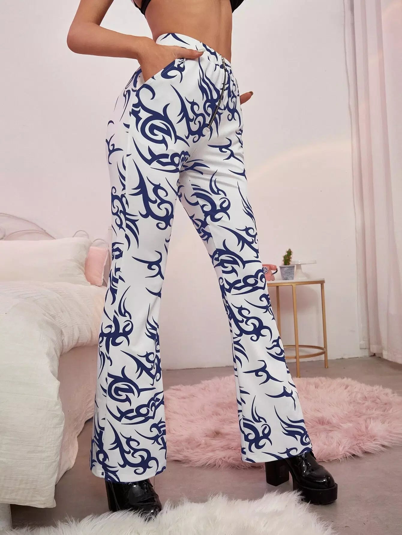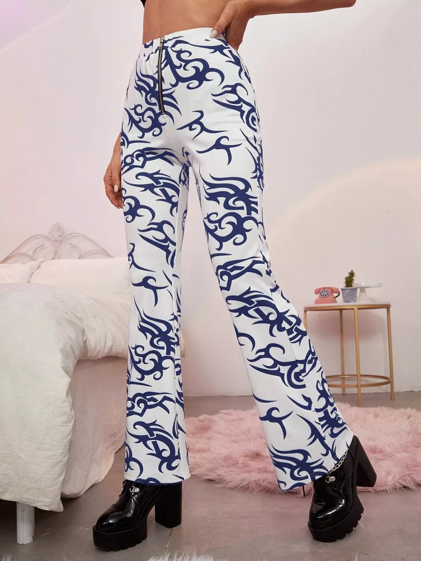 بنطلون بسحاب مطبوع عليه رسومات بسحاب واسع الساقين