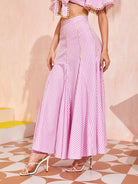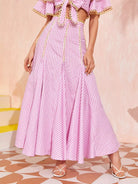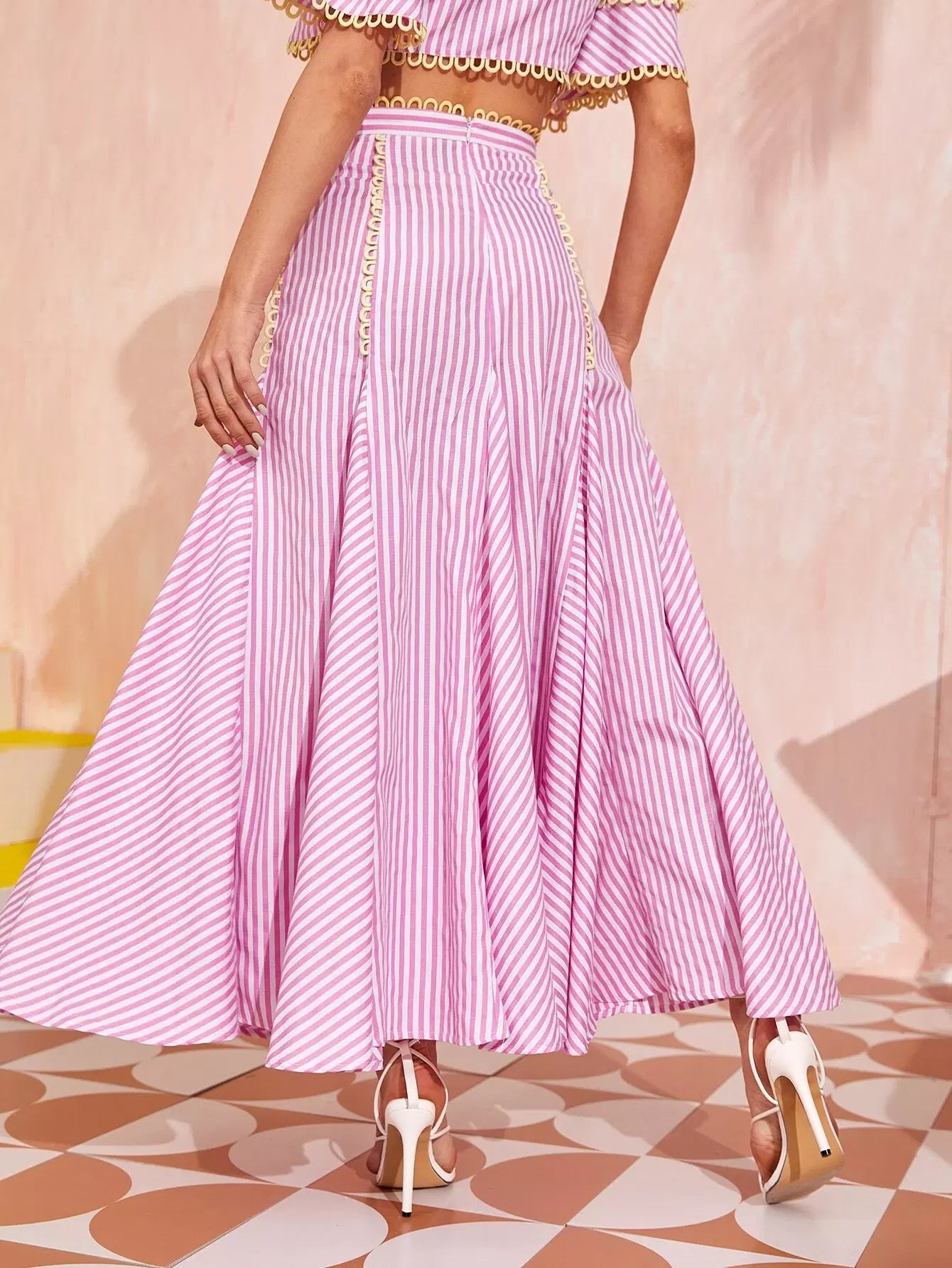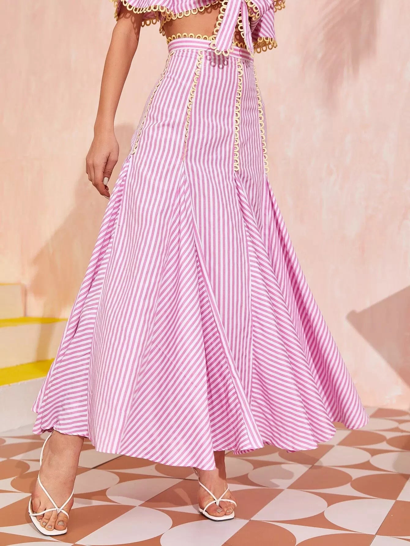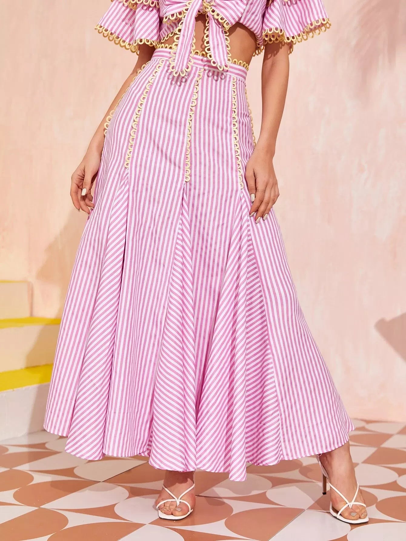 تنورة جوديت مخططة بحواف متباينة وسحاب خلفي