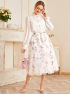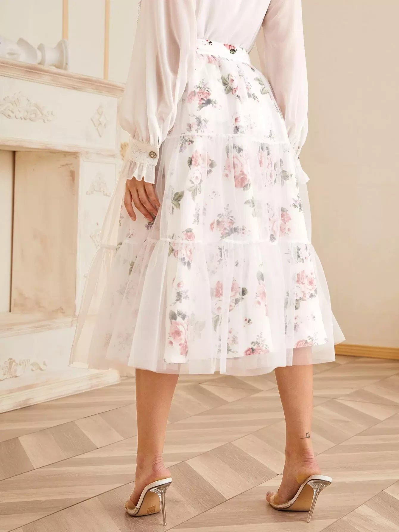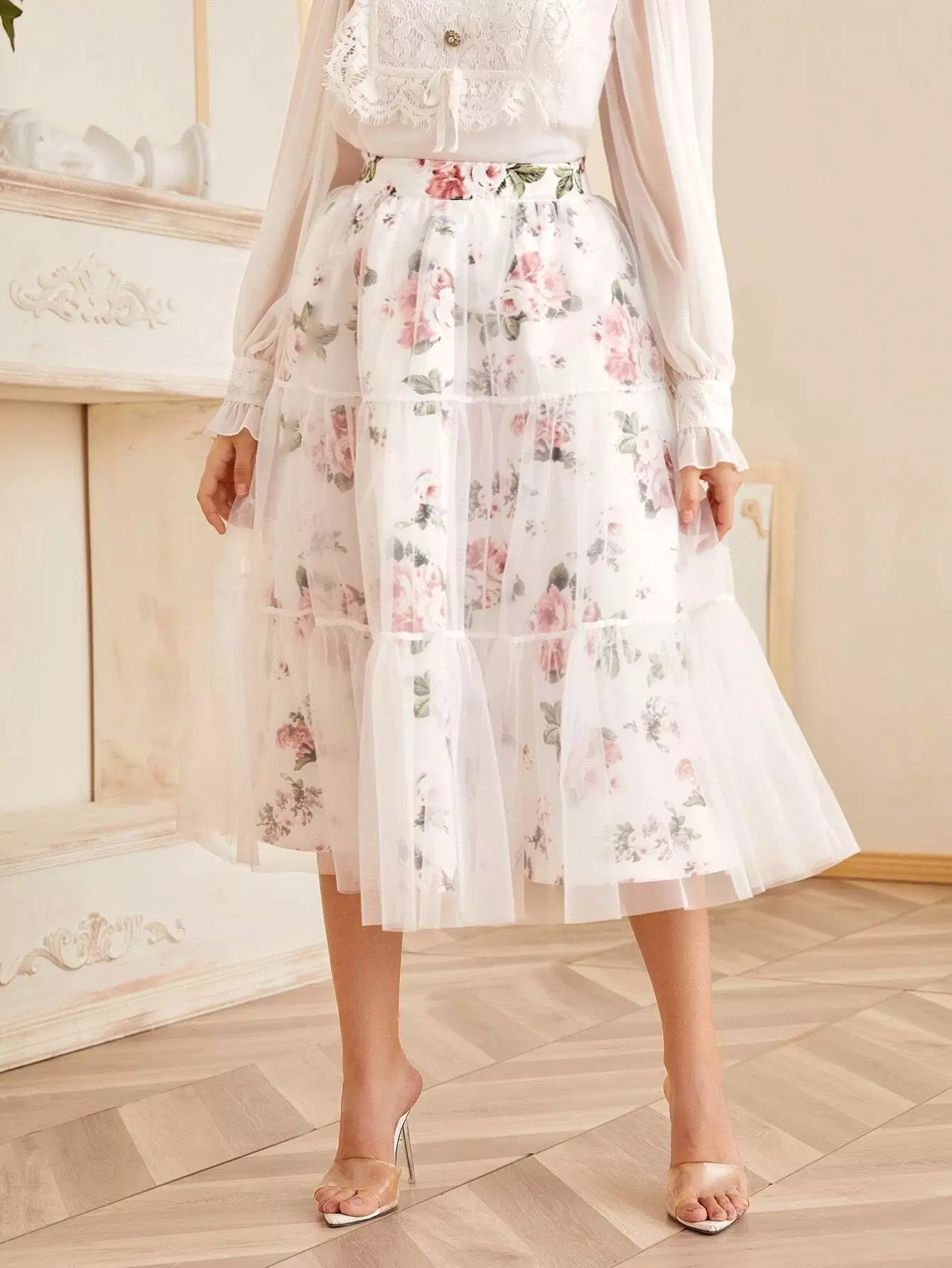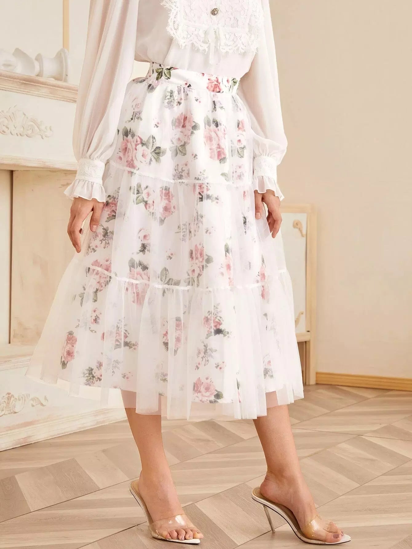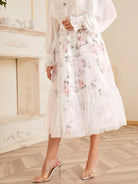 تنورة شبكية مزينة بطباعة زهور بسحاب بسحاب