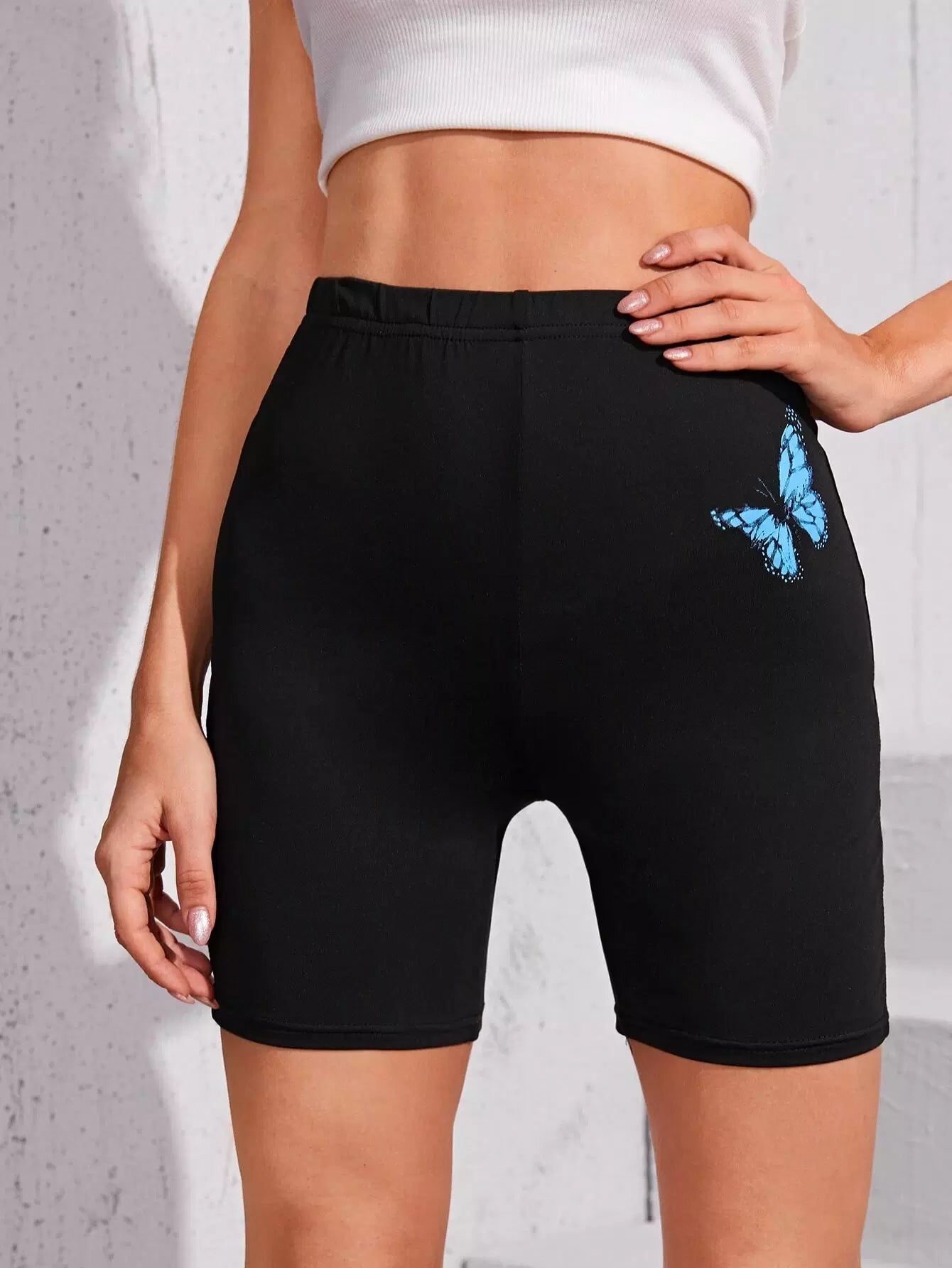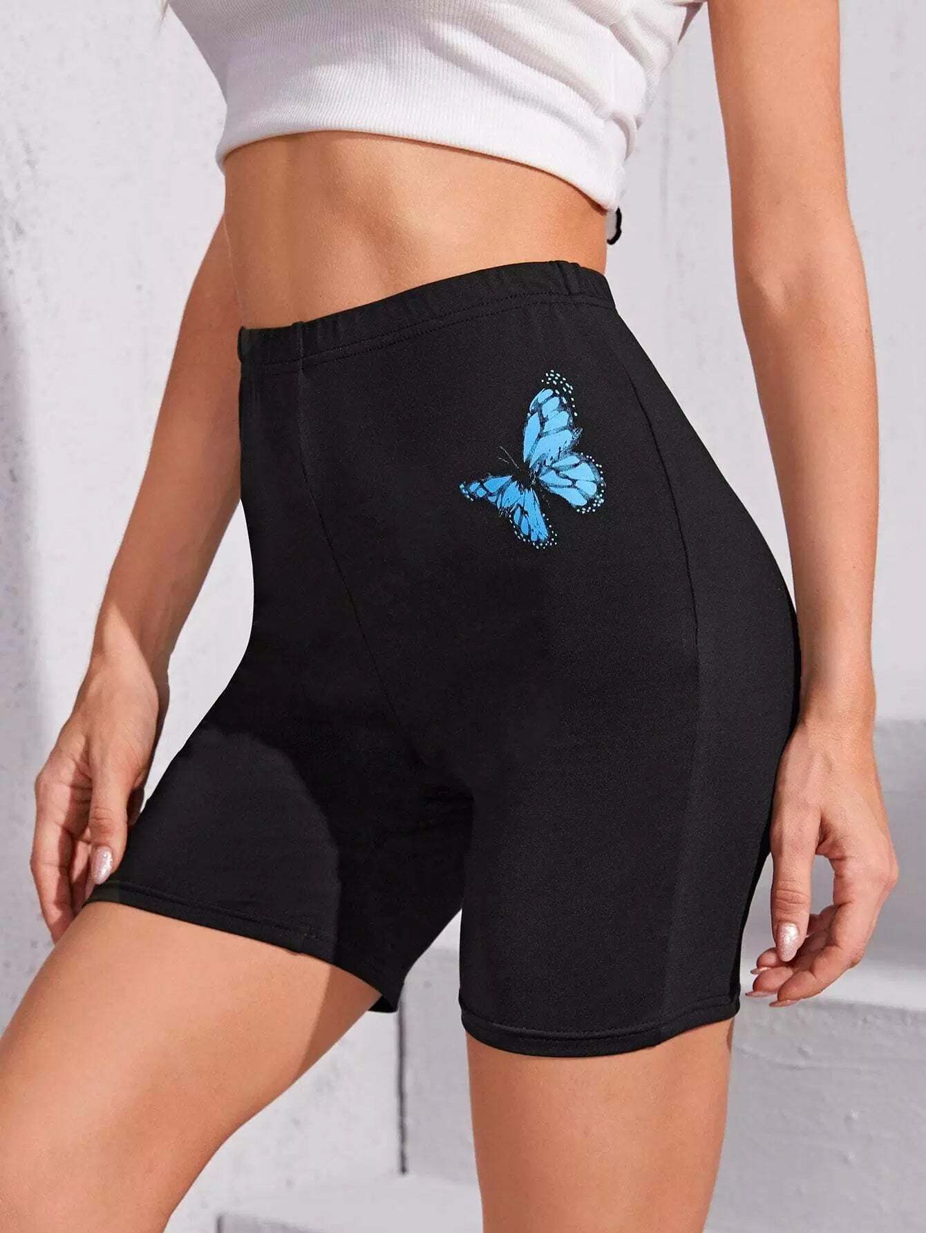 النساء - شورت راكب الدراجة النارية بطبعة الفراشة