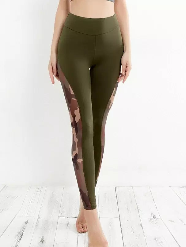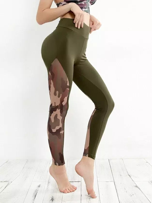 سروال ضيق ضيق شبكي مموه بلون مغاير