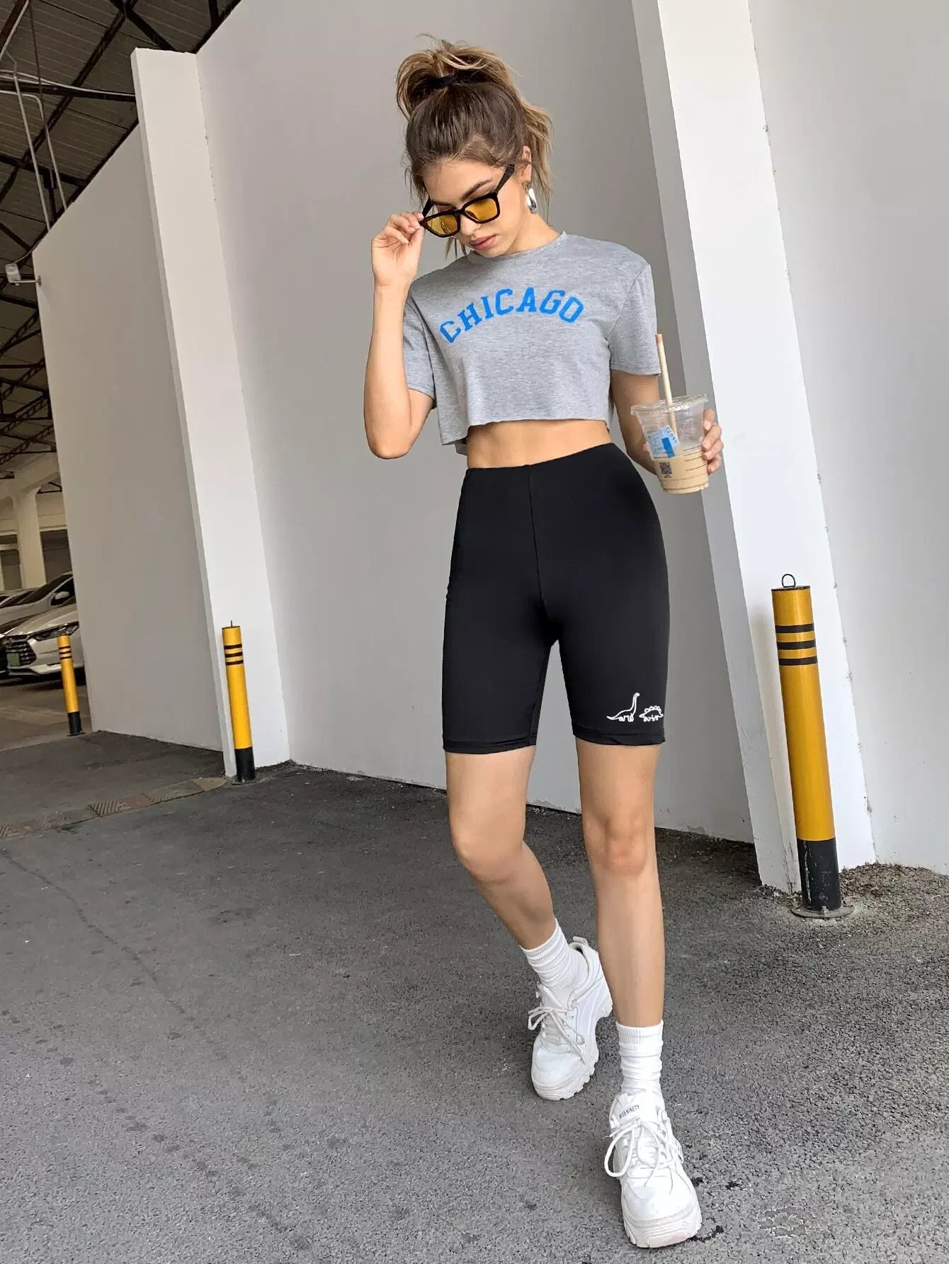 شورت قصير بطبعة ديناصور كرتوني لراكبي الدراجات النارية