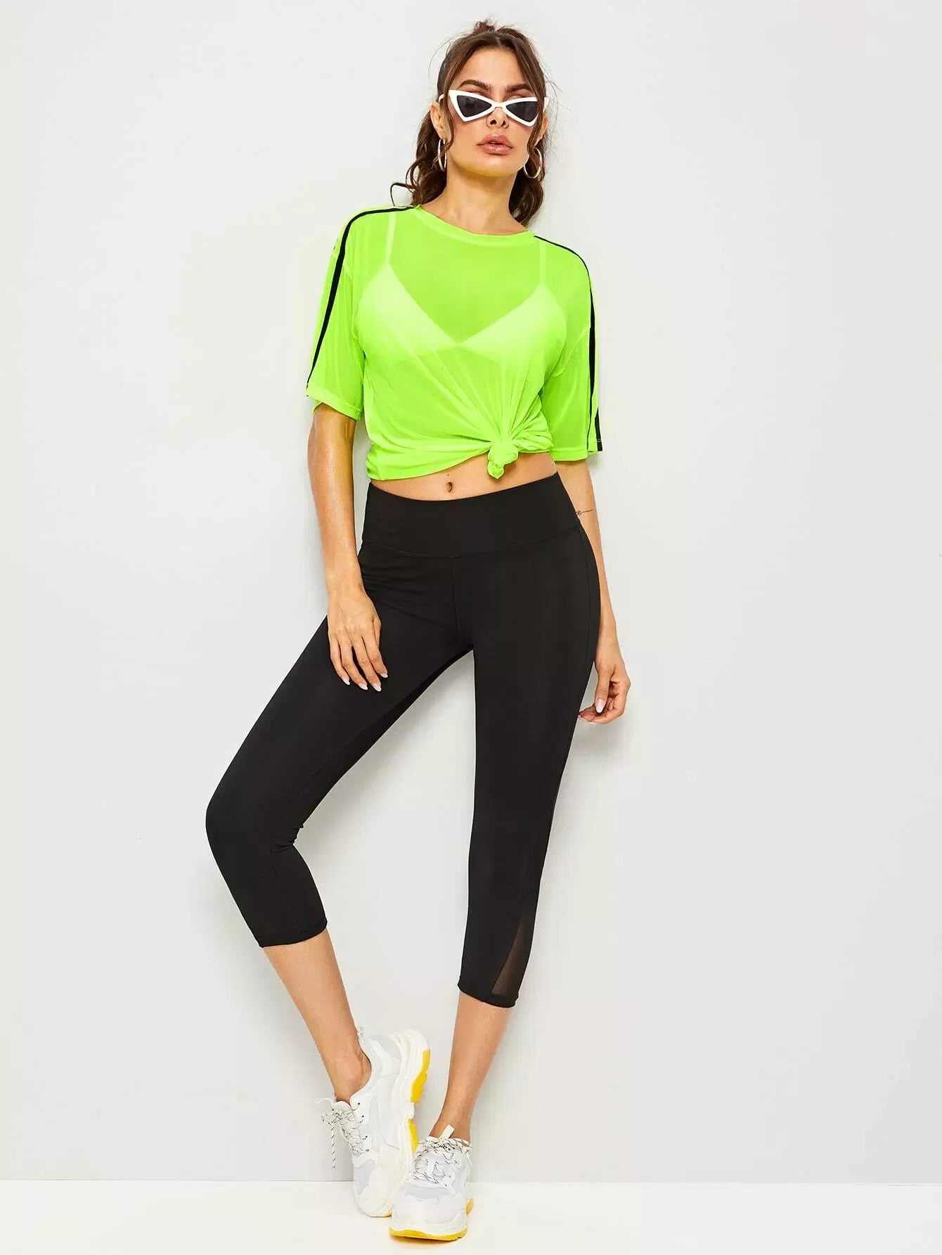بنطلون ضيق ضيق شبكي ضيق بلون مغاير