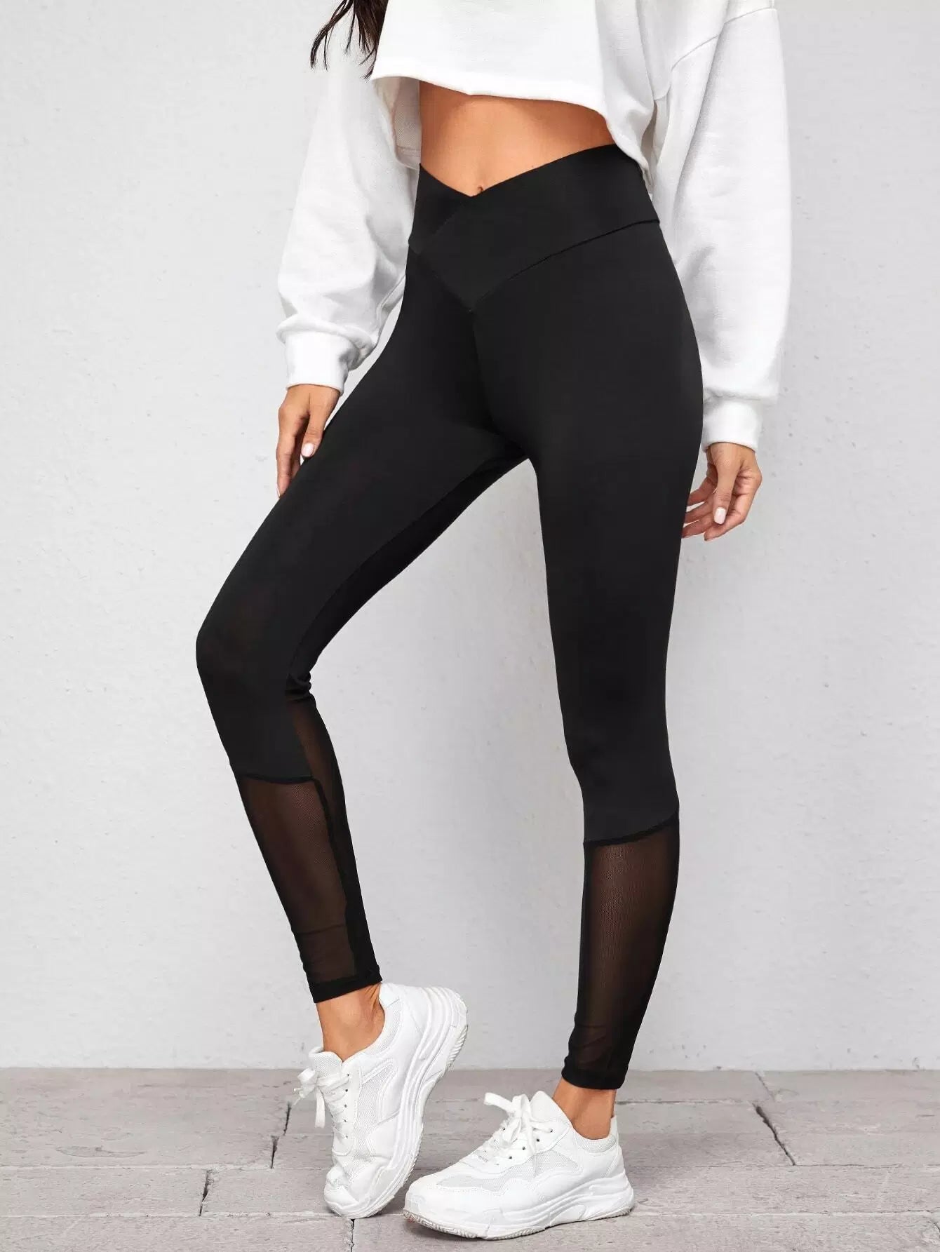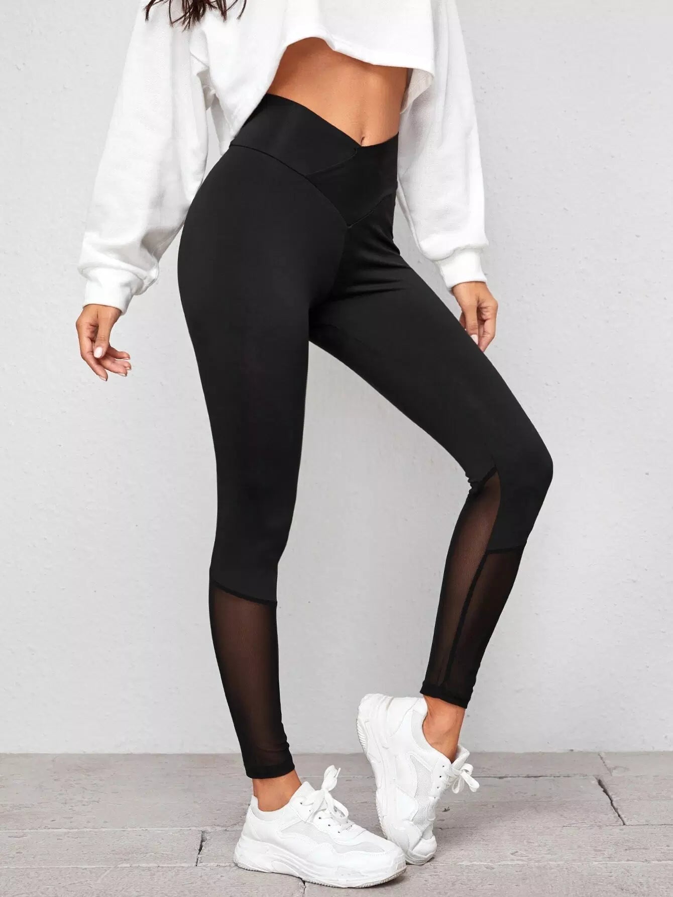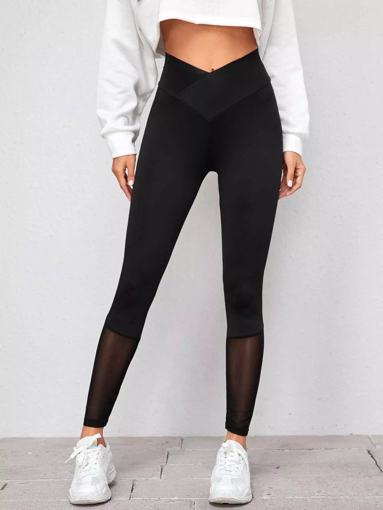 بنطلون ضيق بخصر شبكي عريض الخصر بلون مغاير