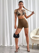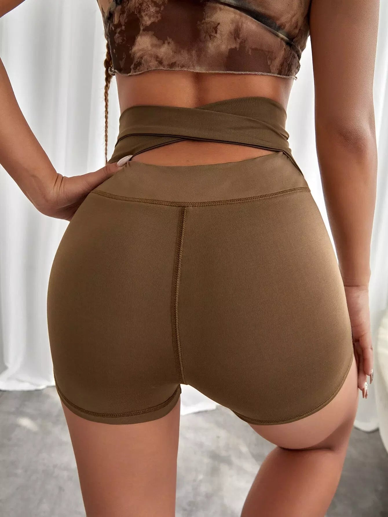 شورت قصير بخصر عالٍ متقاطع لراكب الدراجة النارية