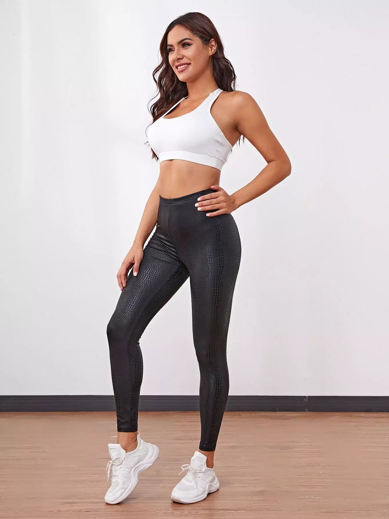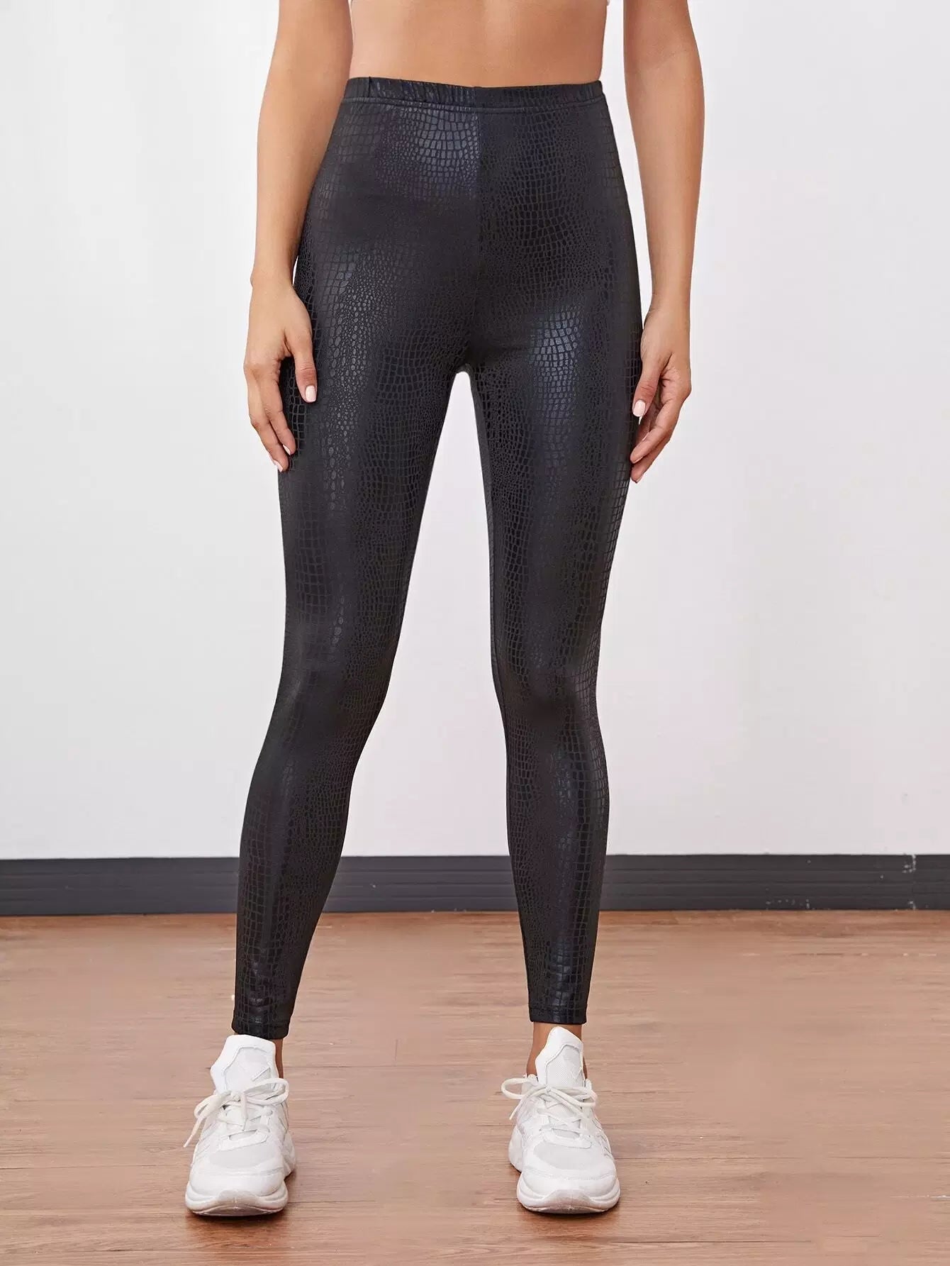 بنطلون ضيق بخصر عالٍ بخصر تمساح