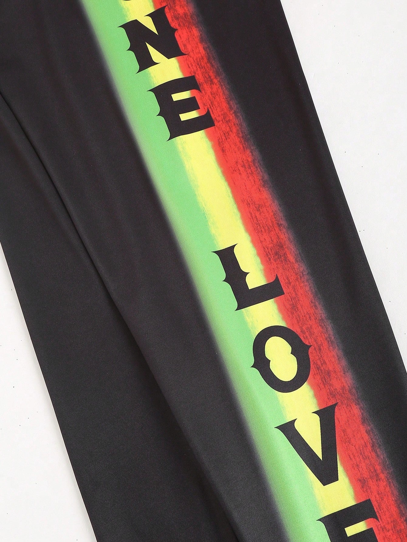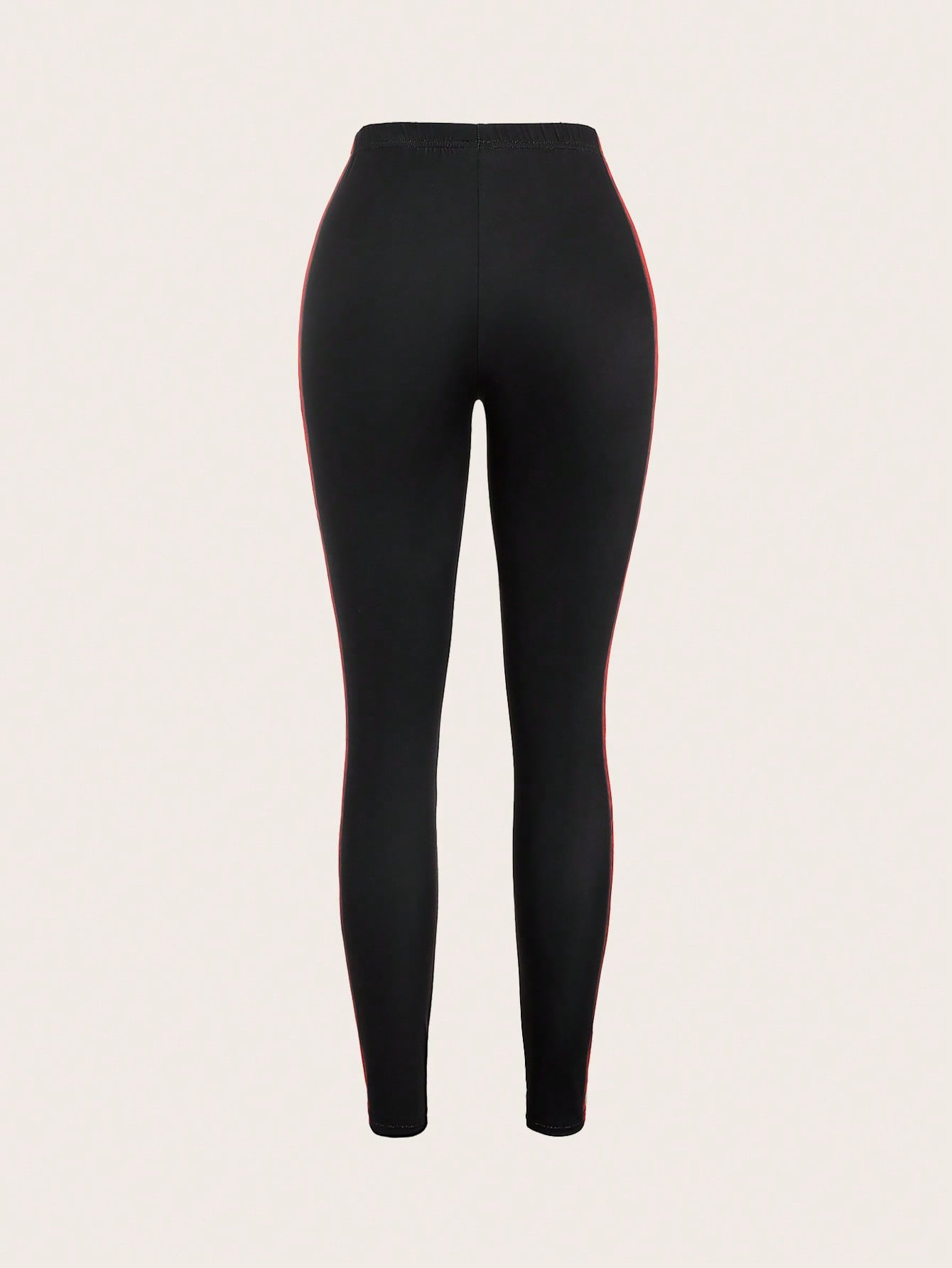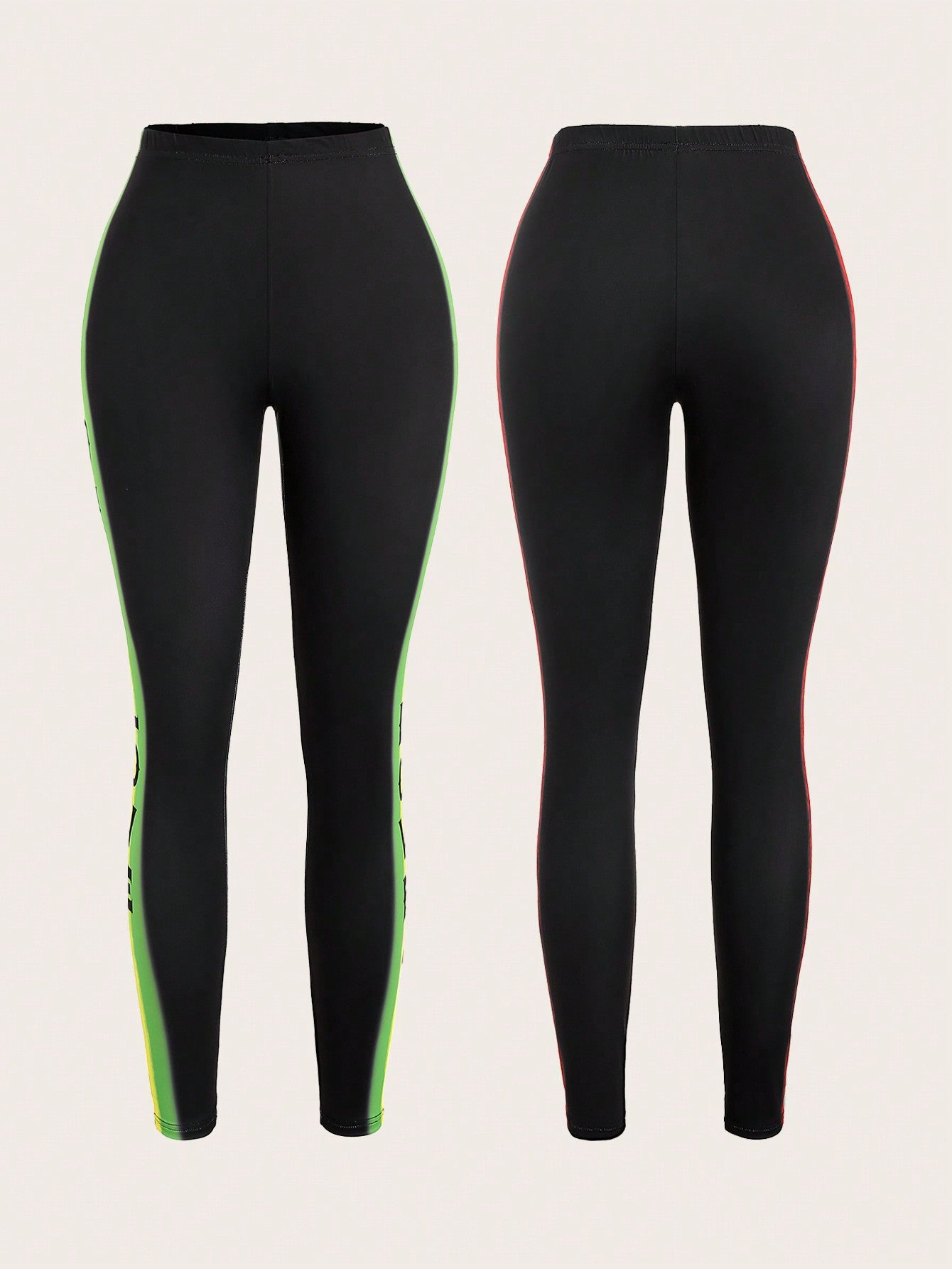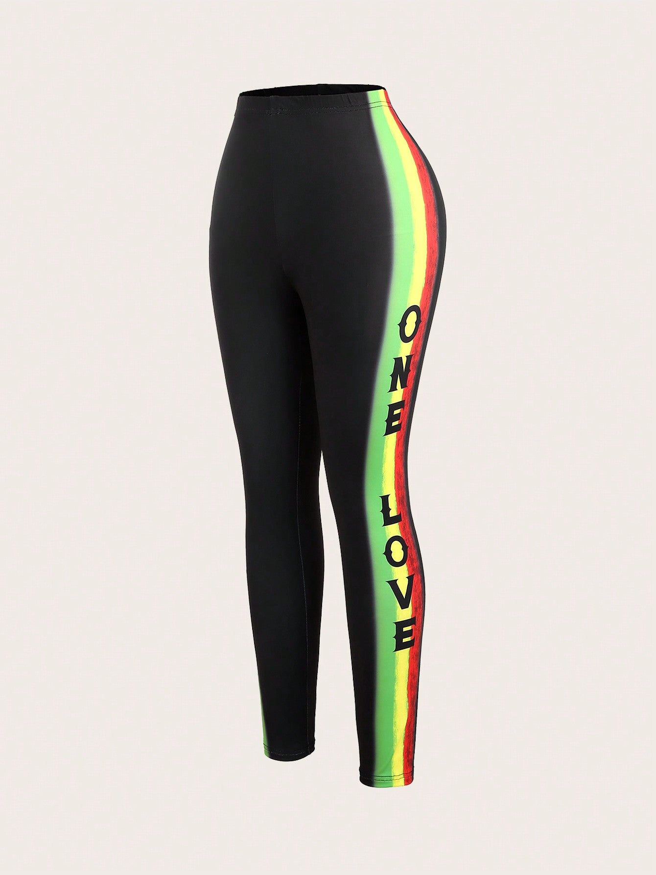 بنطال ضيق مخطط بطبعة حروف من Flirla للنساء