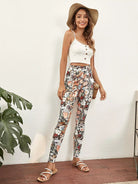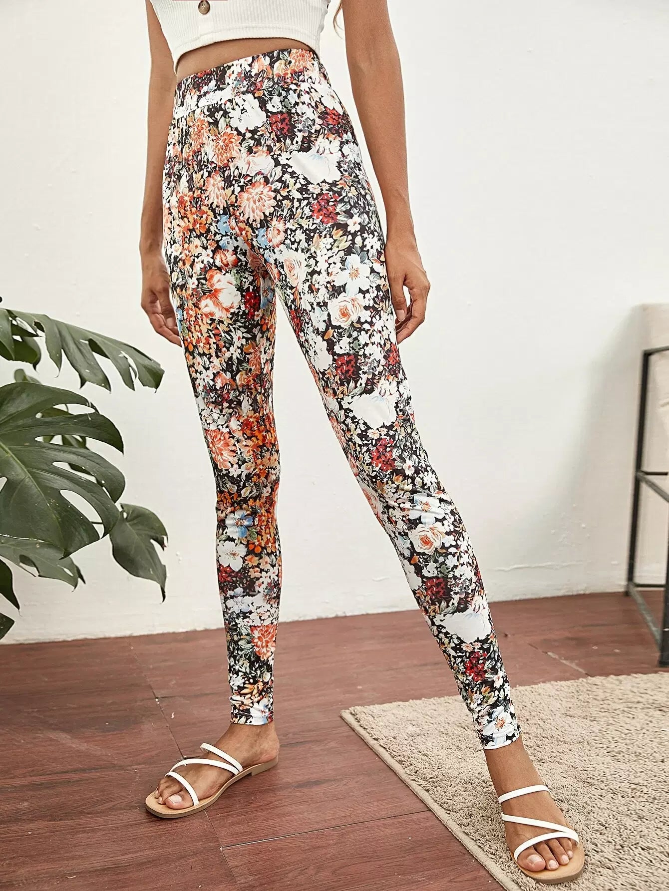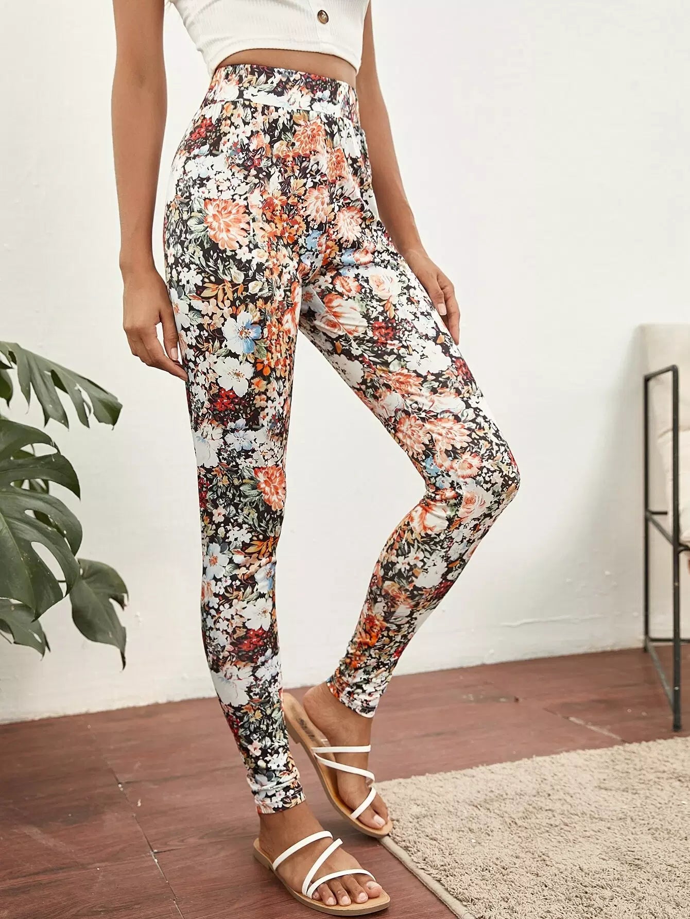 ليقنز بخصر عالي الخصر مزين بالأزهار بالكامل