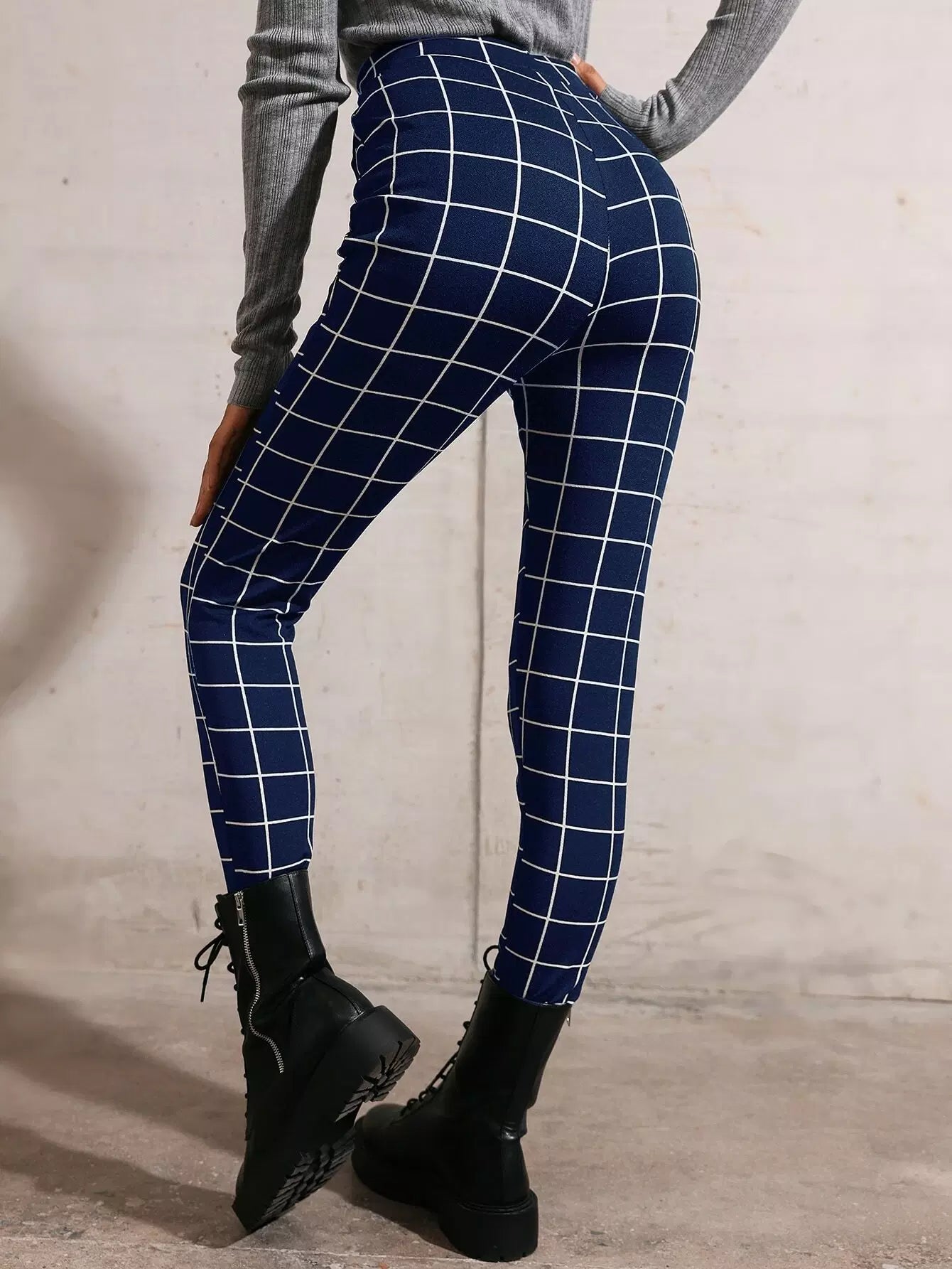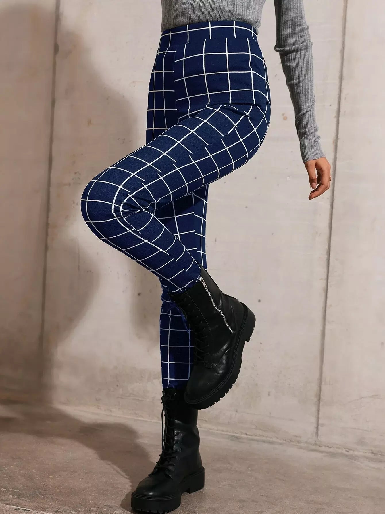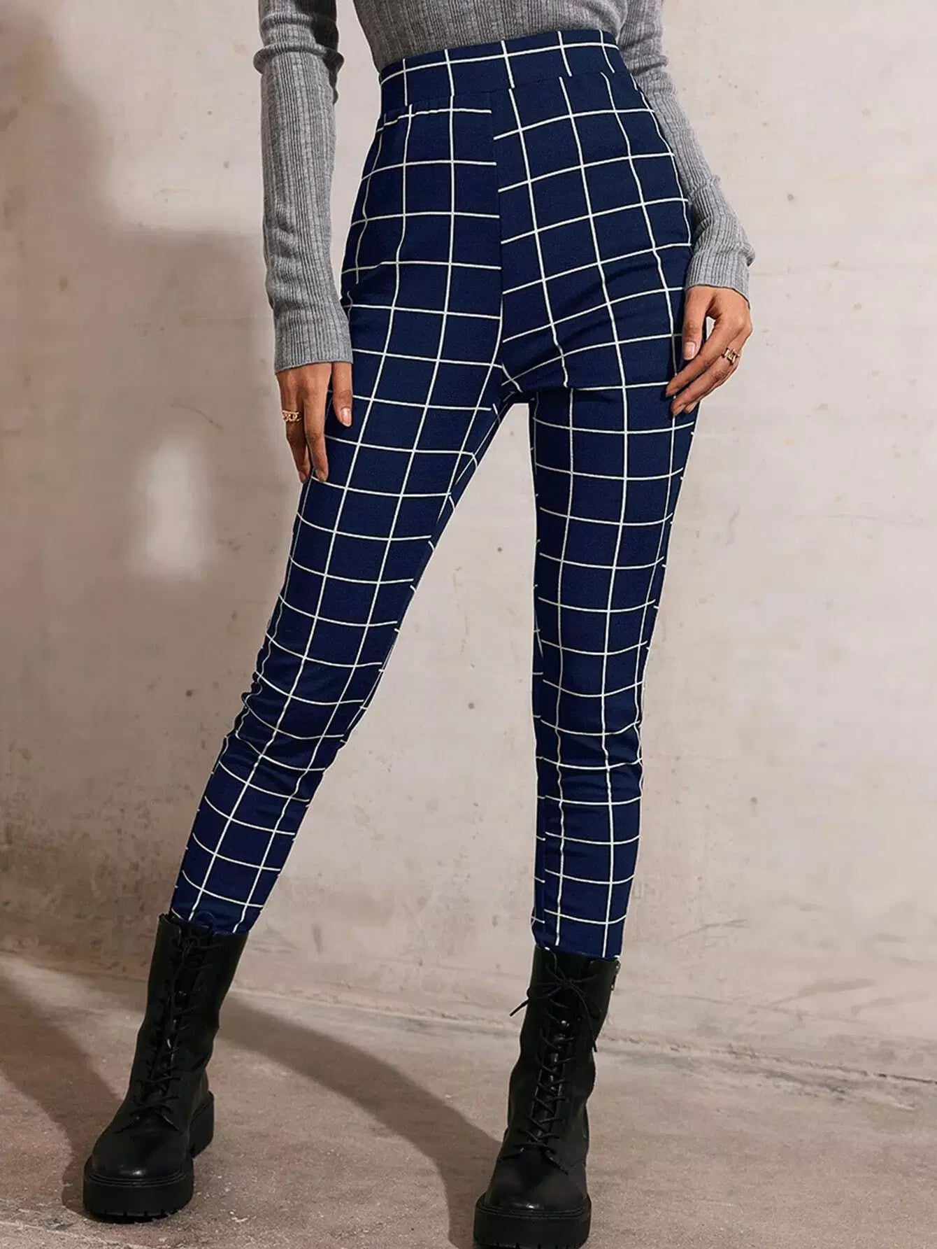 بنطال ضيق بطبعة شبكية عالية الخصر