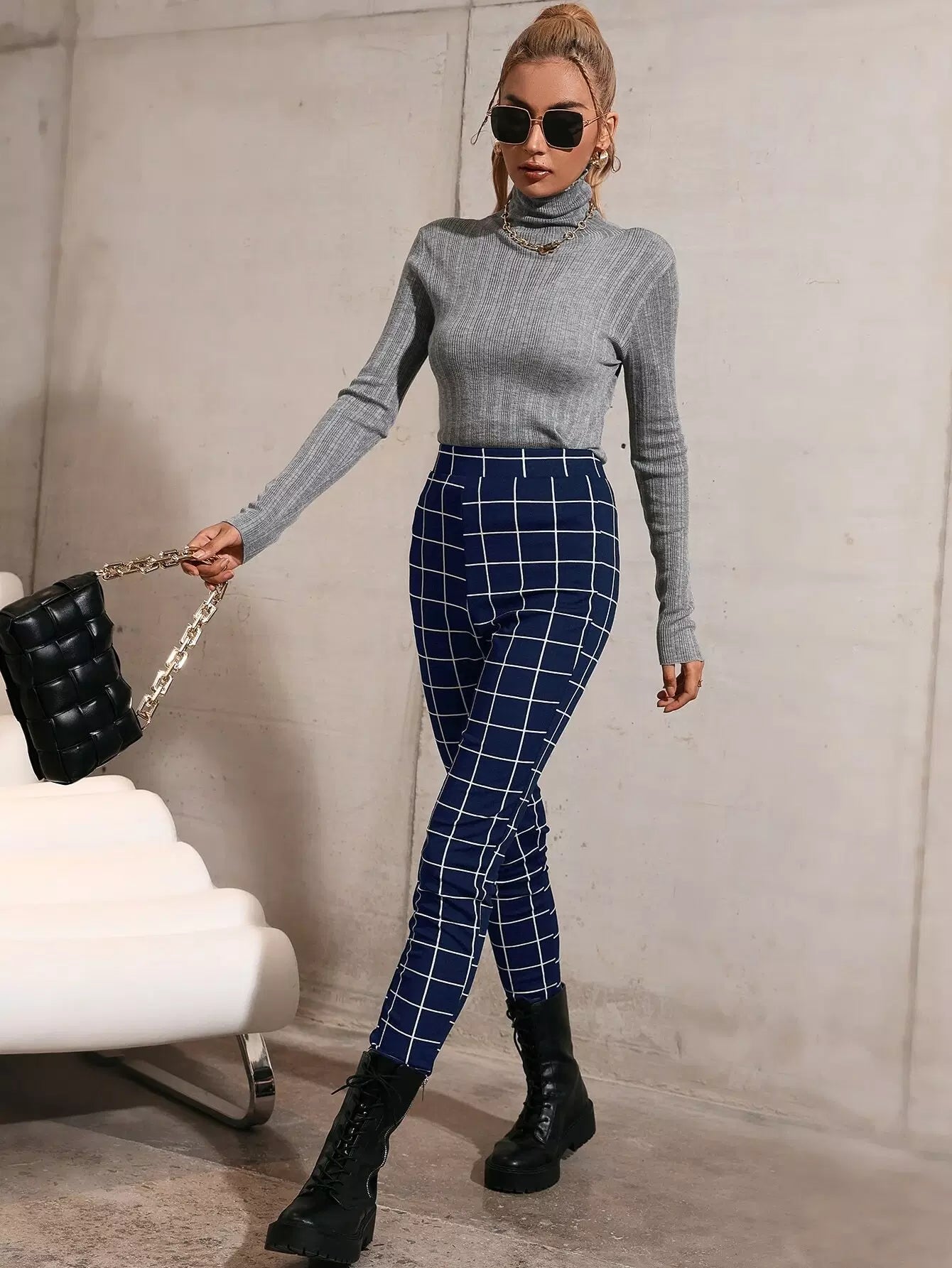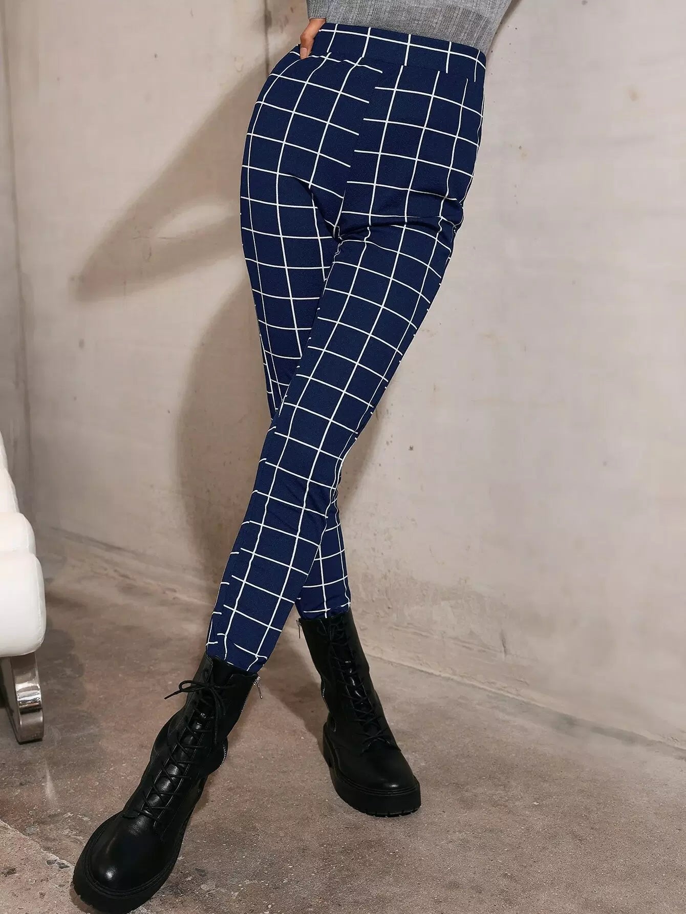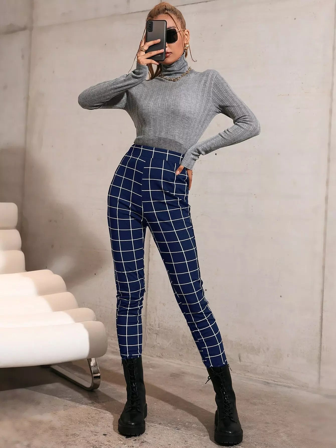 بنطال ضيق بطبعة شبكية عالية الخصر