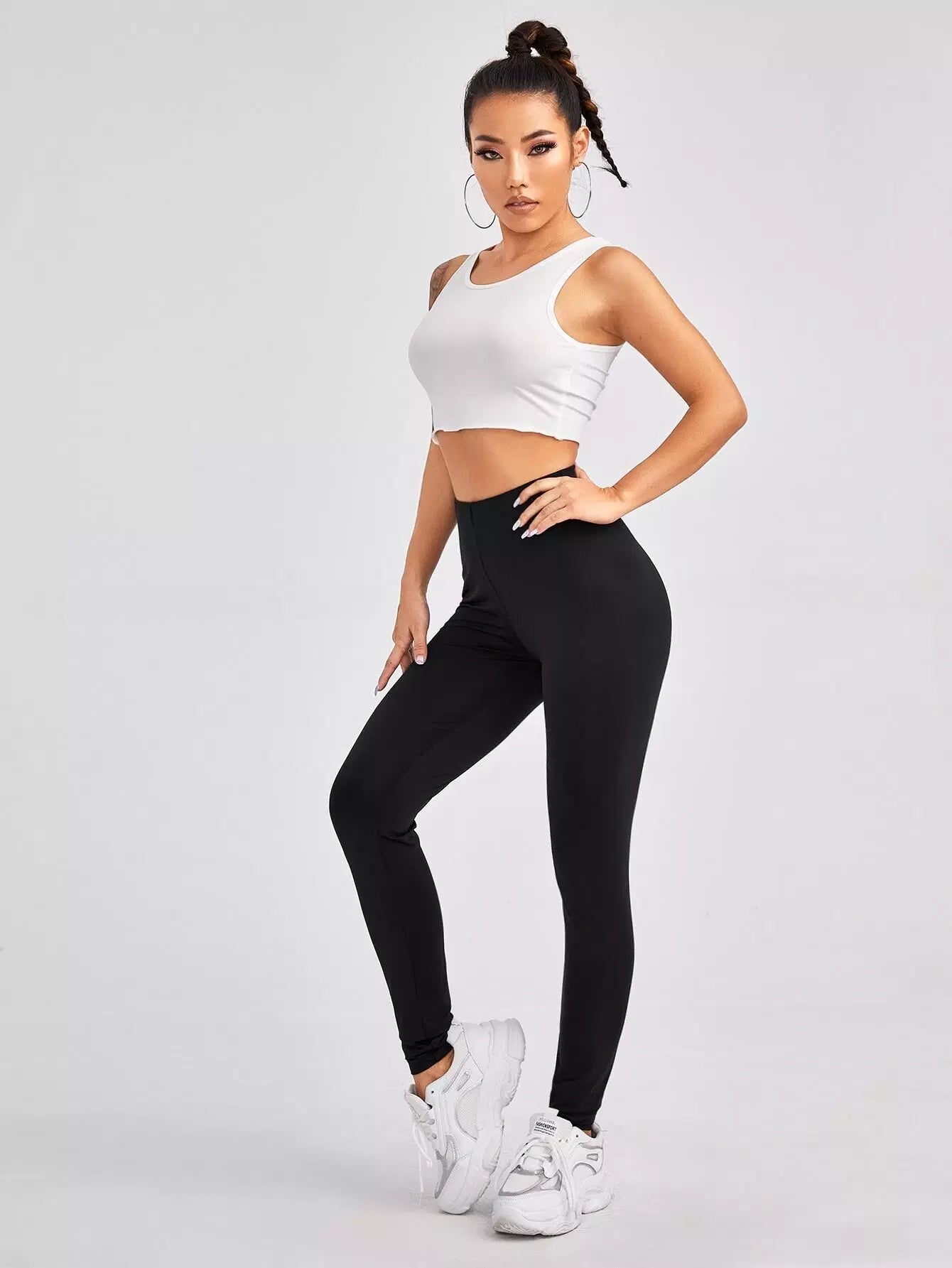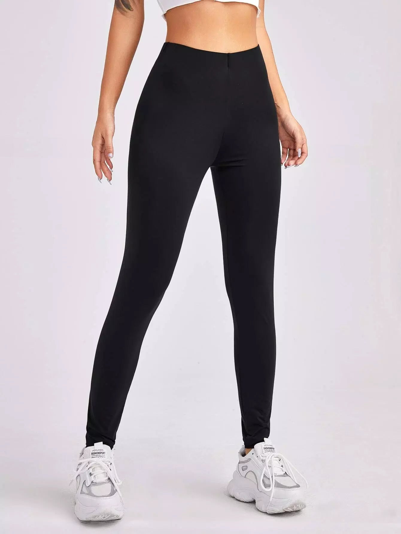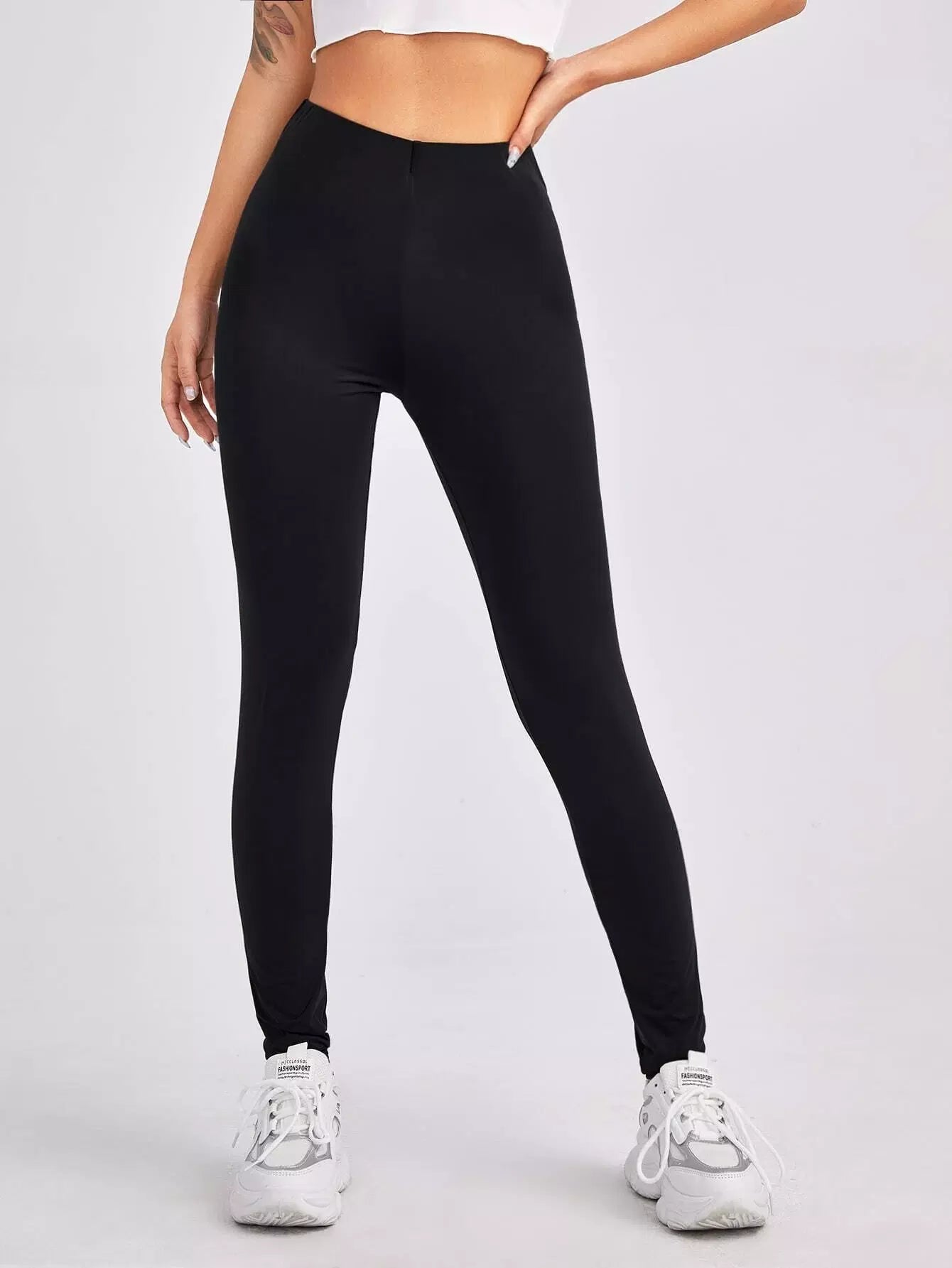 بنطلون ضيق ضيق ضيق سادة عالي الخصر