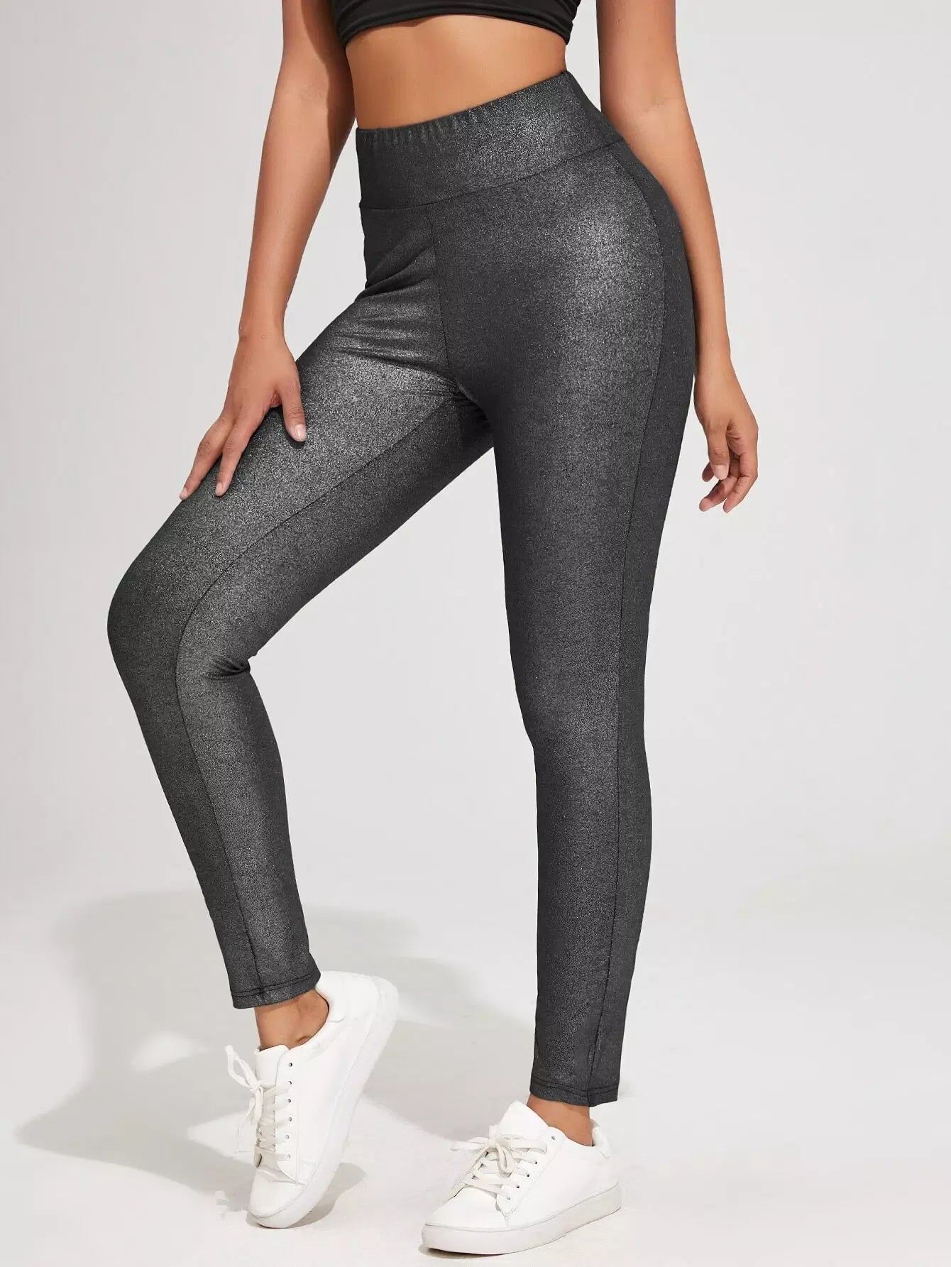 بنطلون ضيق ضيق ضيق سادة عالي الخصر
