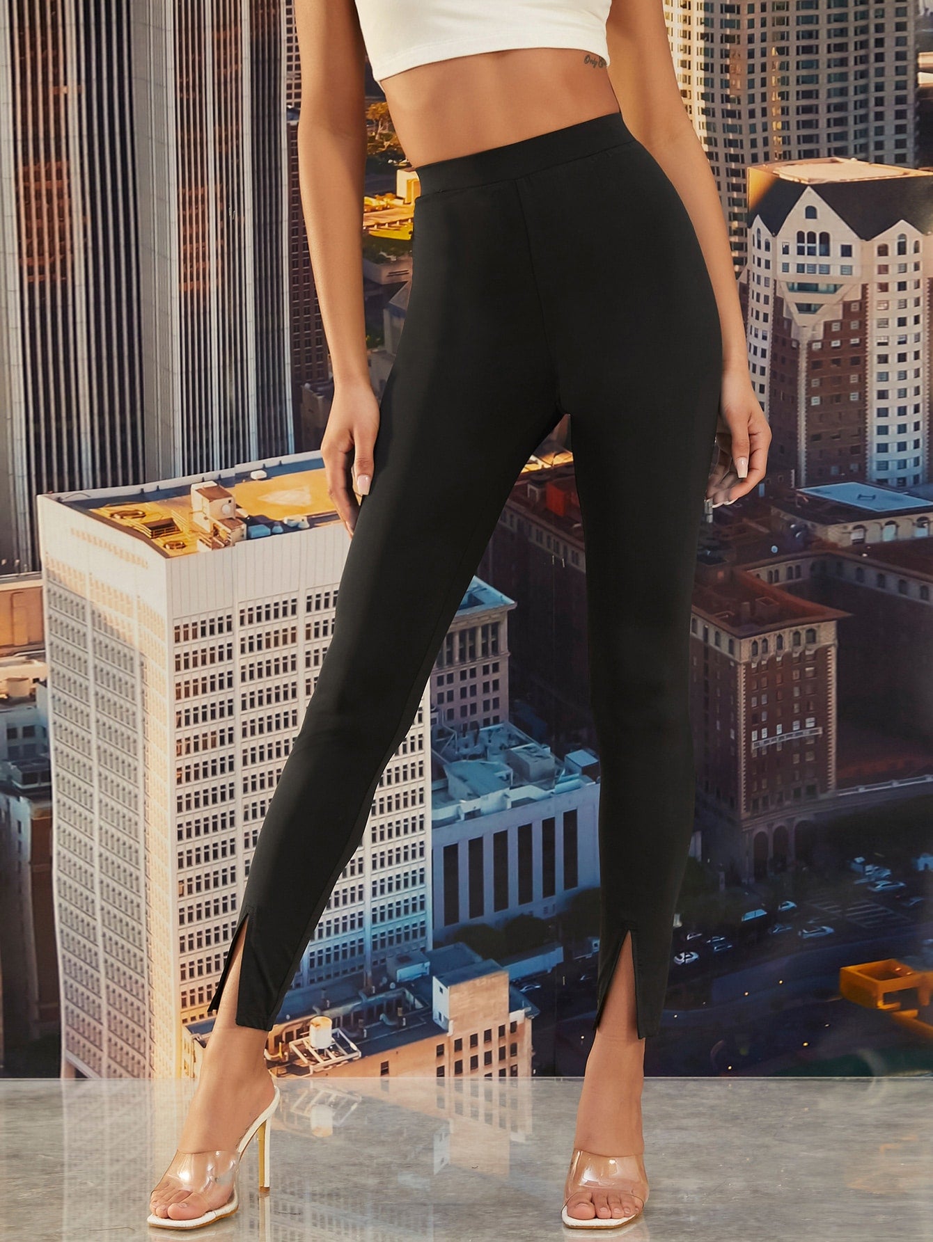 High Waisted Slit Hem Skinny Pants