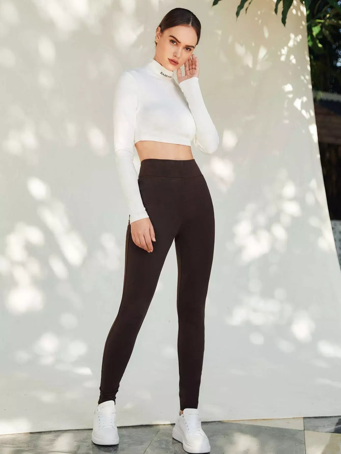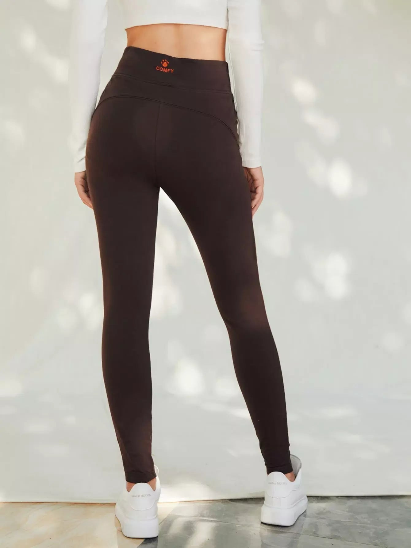 بنطال ضيق بحزام خصر عريض مطرز بحروف ورسوم كرتونية