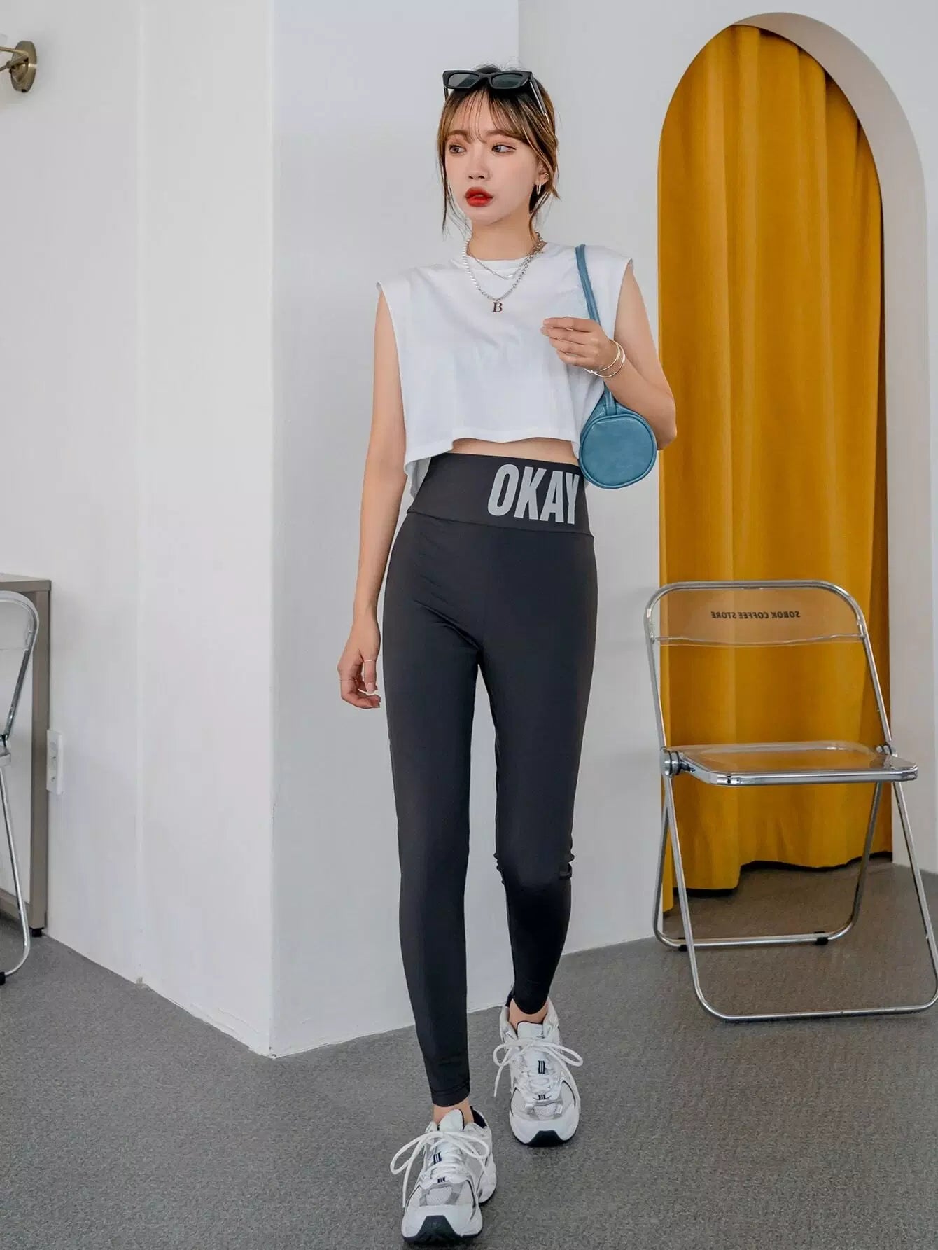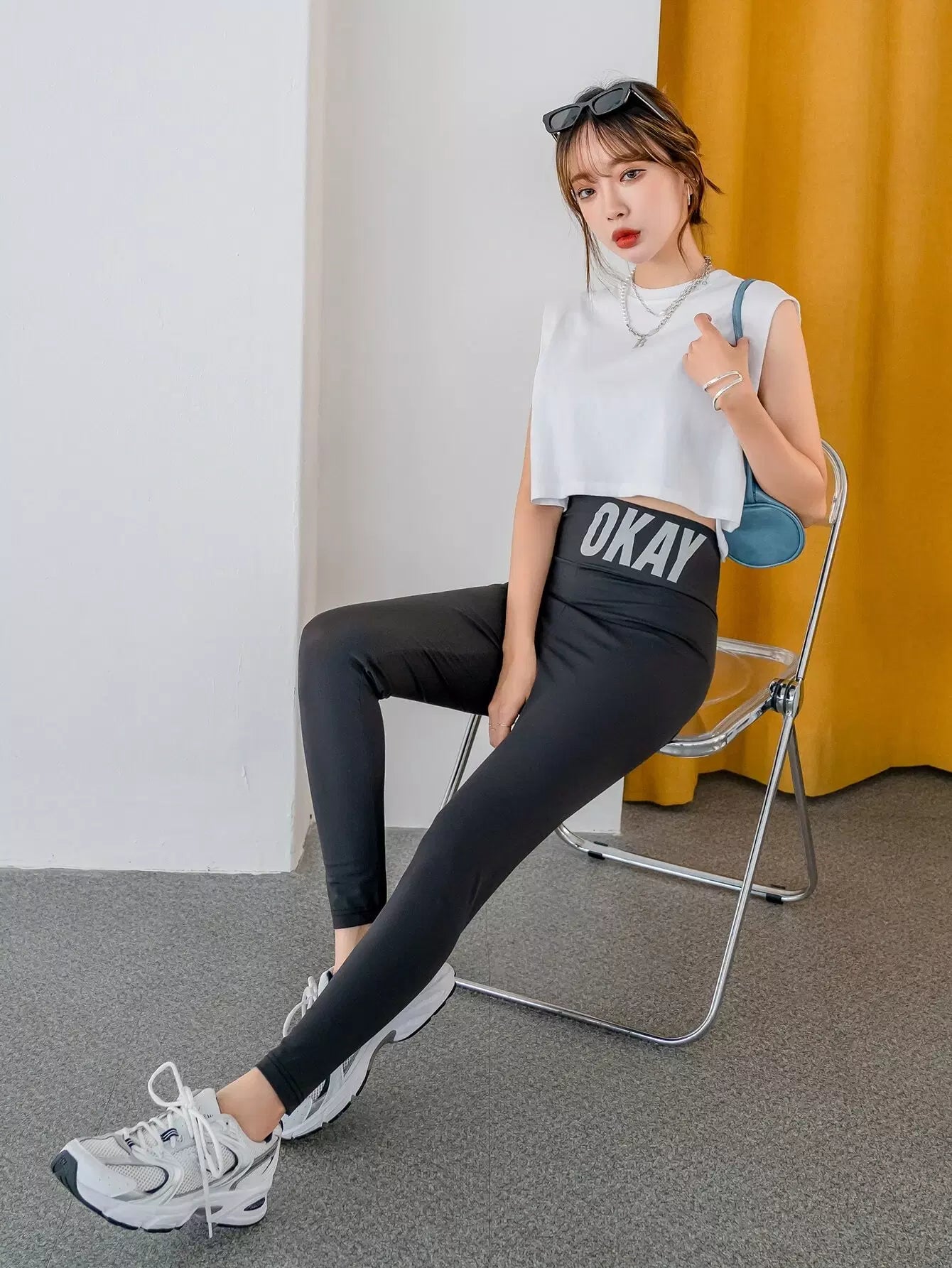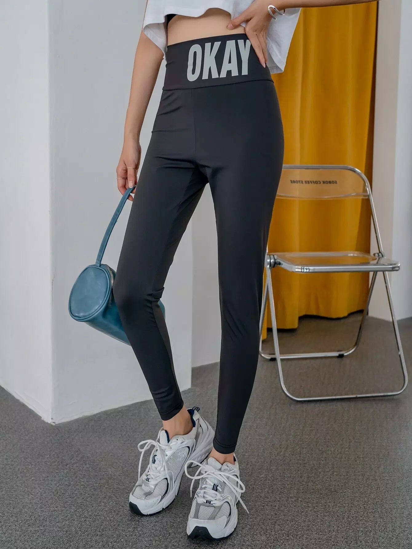 بنطلون ضيق بخصر عريض برسومات حروف على شكل حرف