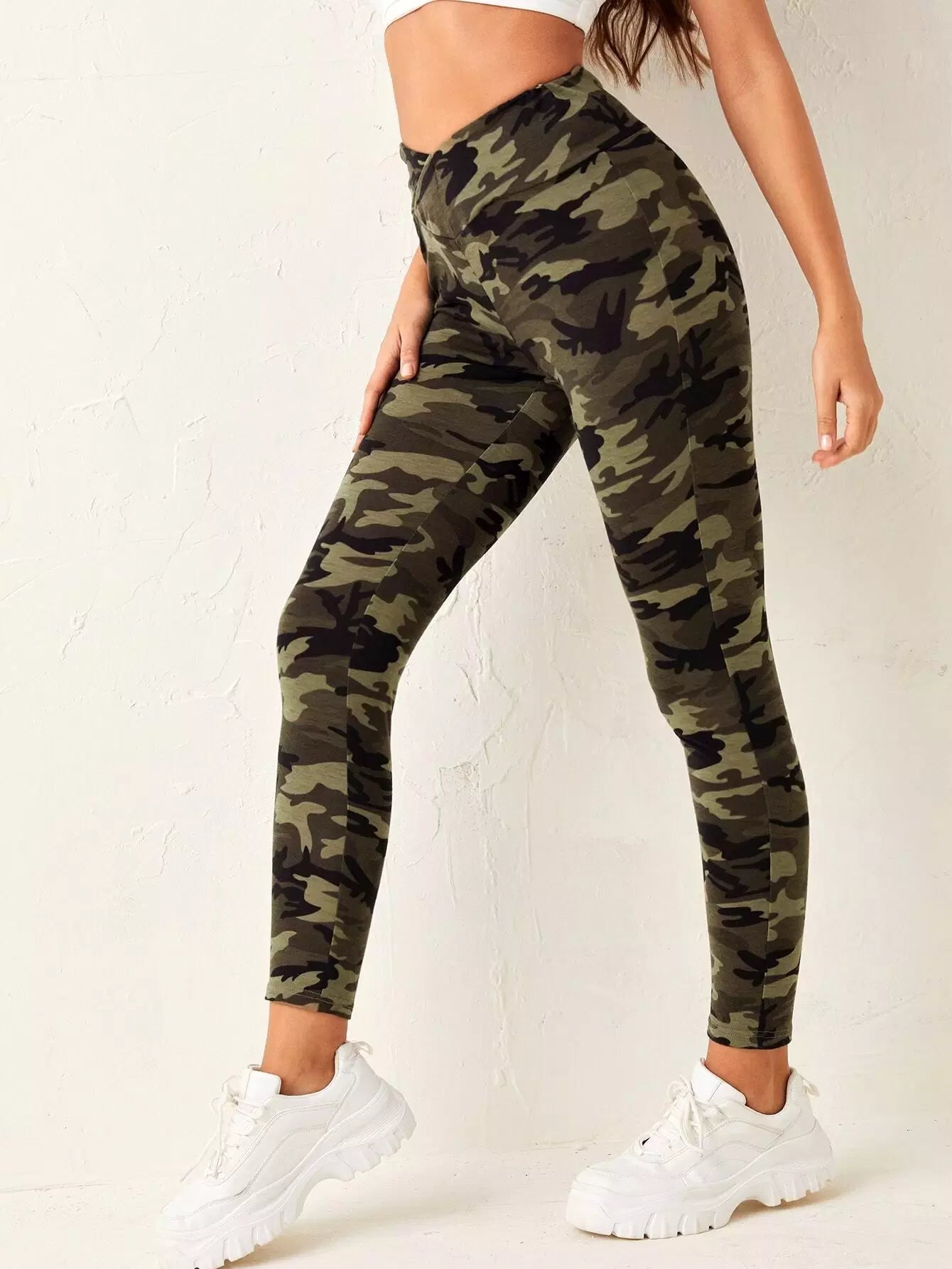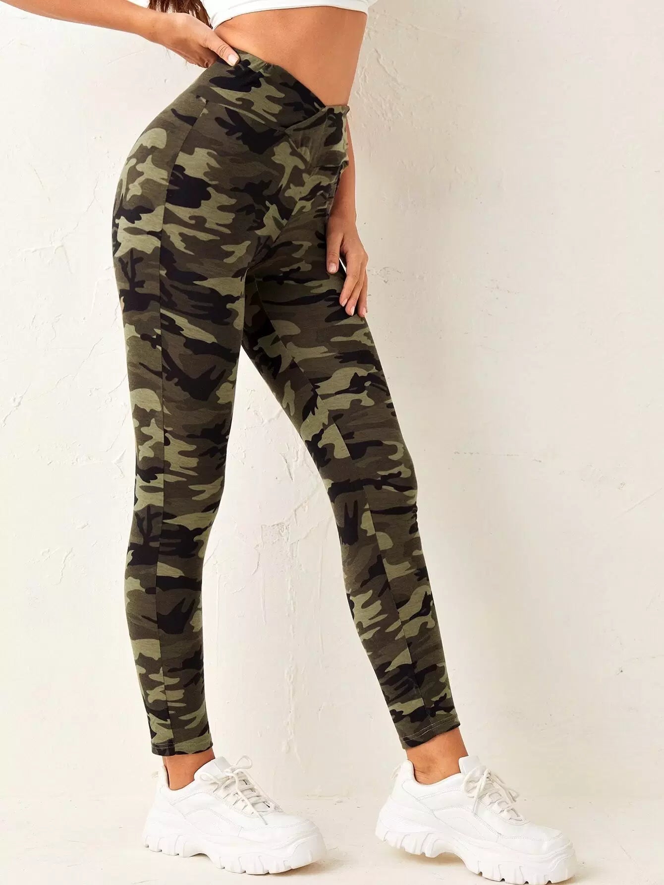 بنطال ليجنز مموه بحزام خصر عريض متداخل
