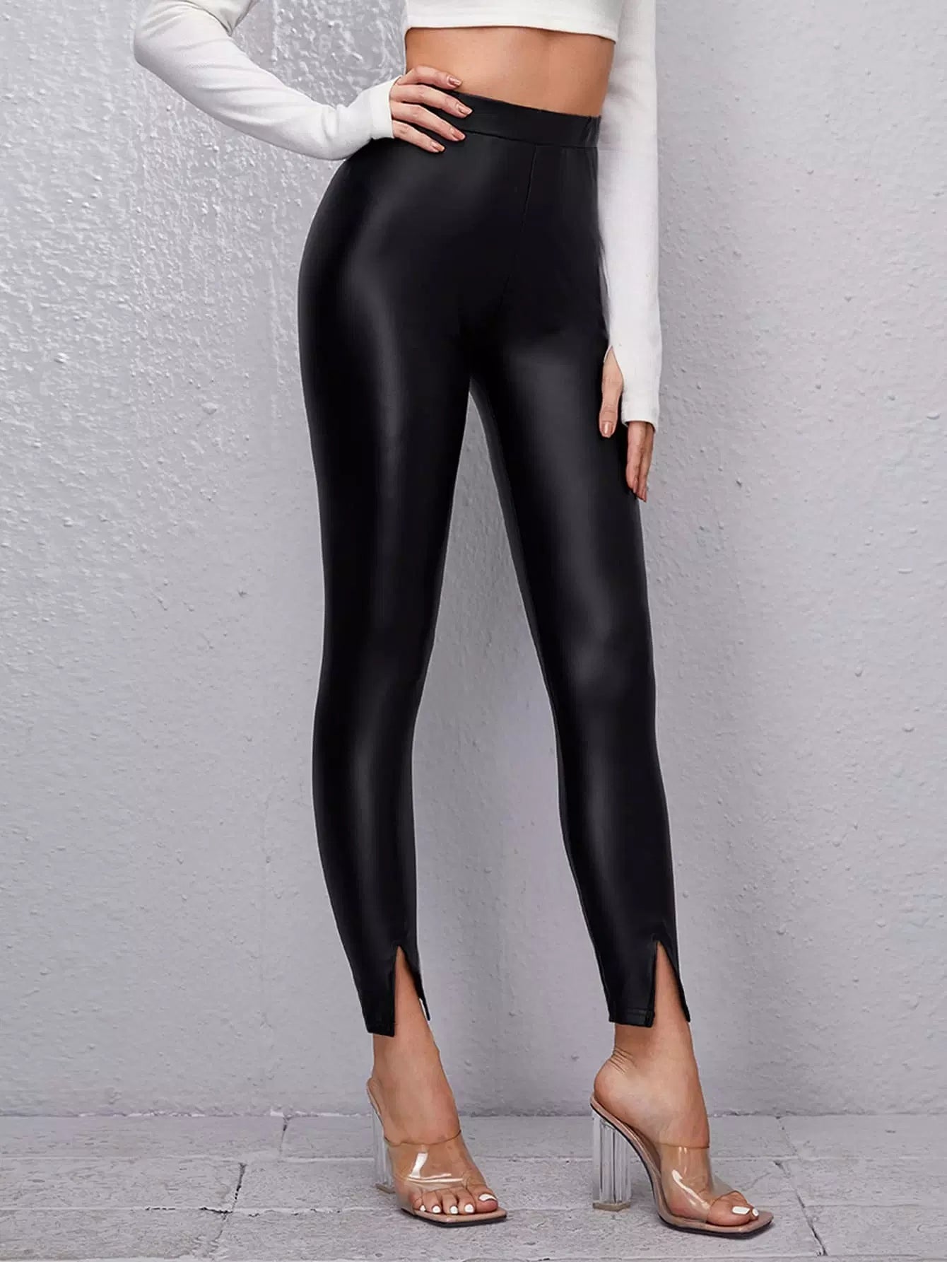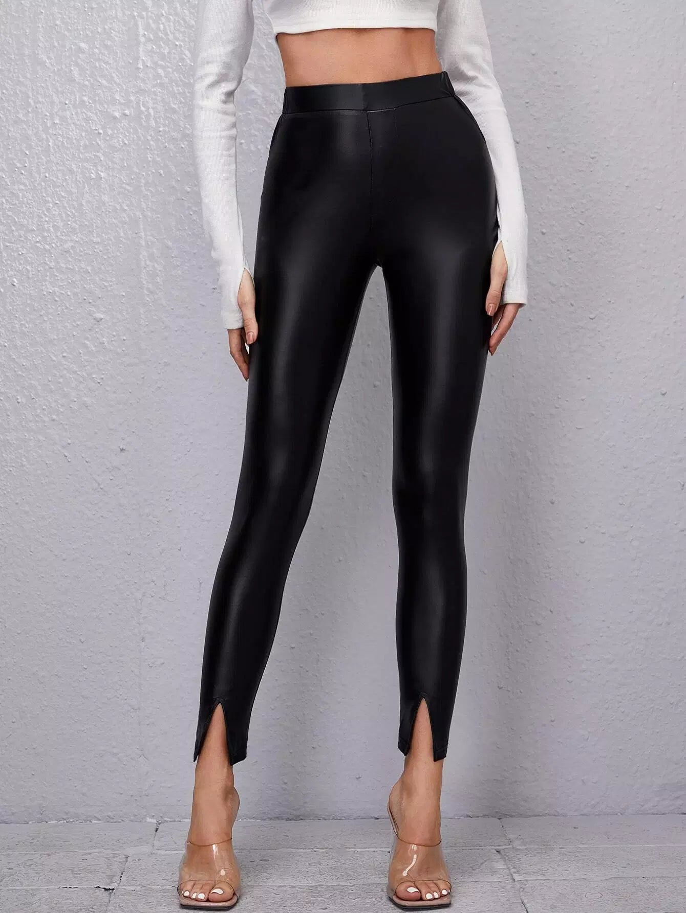 بنطلون ضيق ضيق ضيق من جلد البولي يوريثان مقسم الأكمام من البولي يوريثان