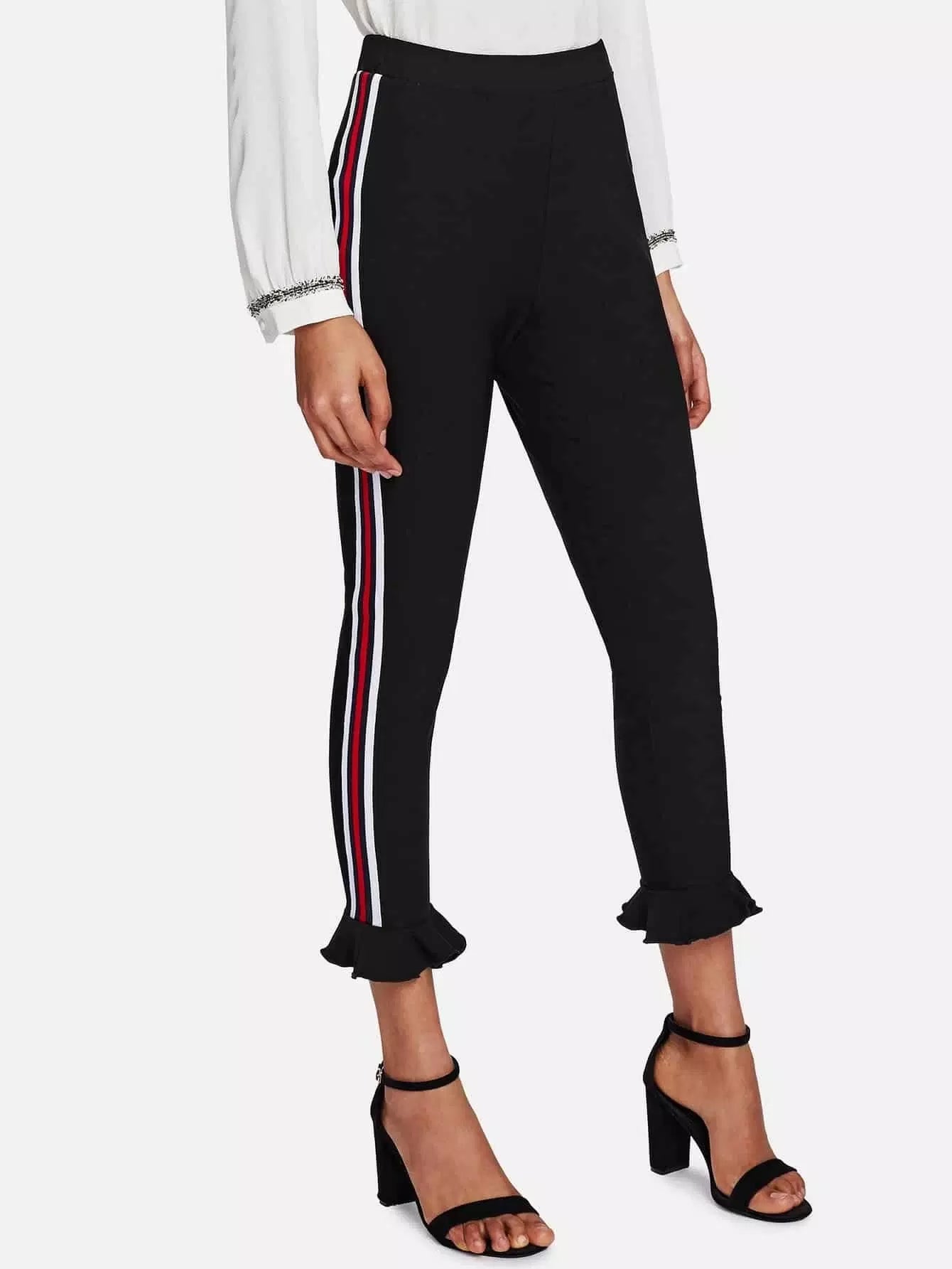 بنطلون ضيق بحاشية مكشكشة مخططة من الجانبين