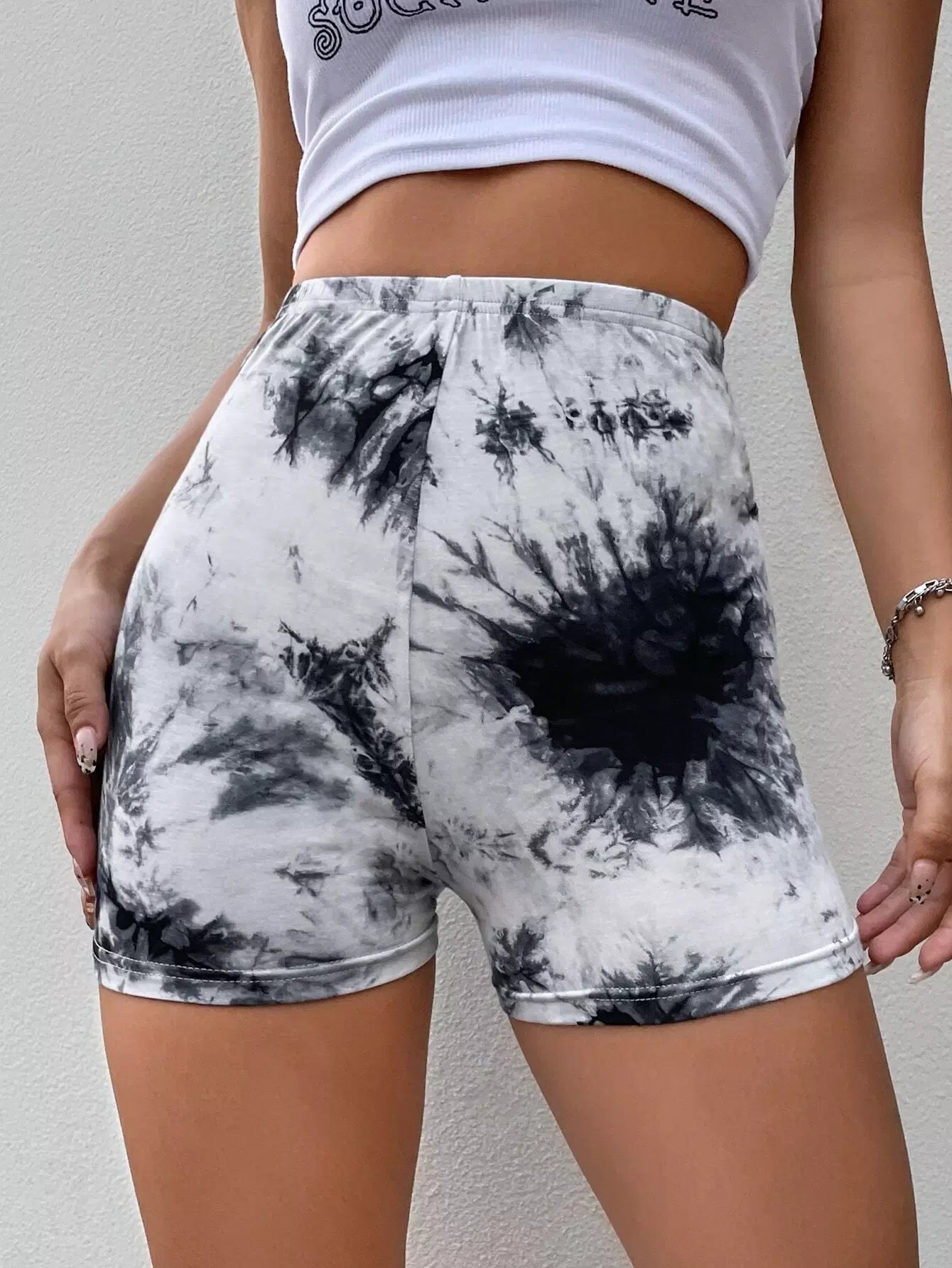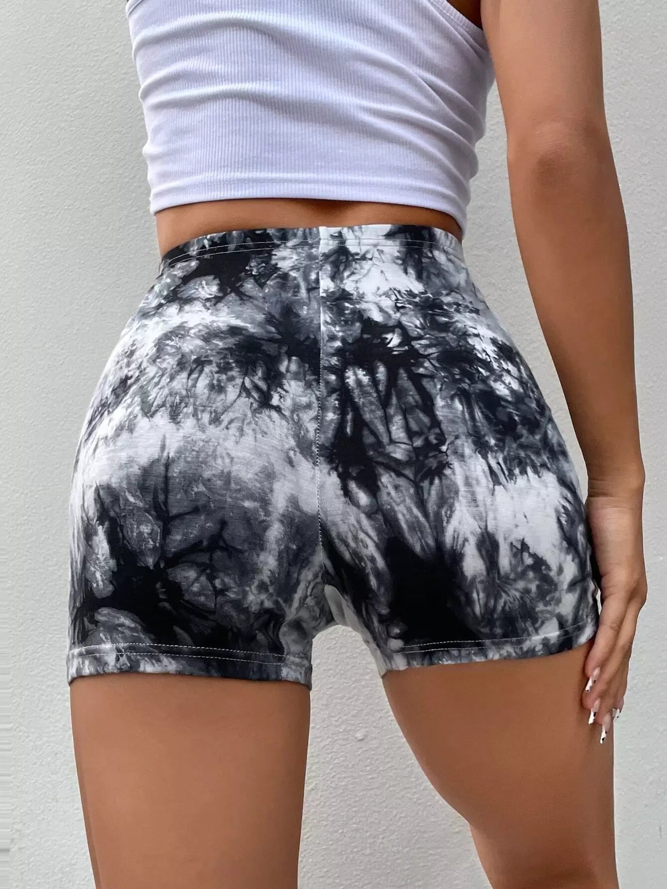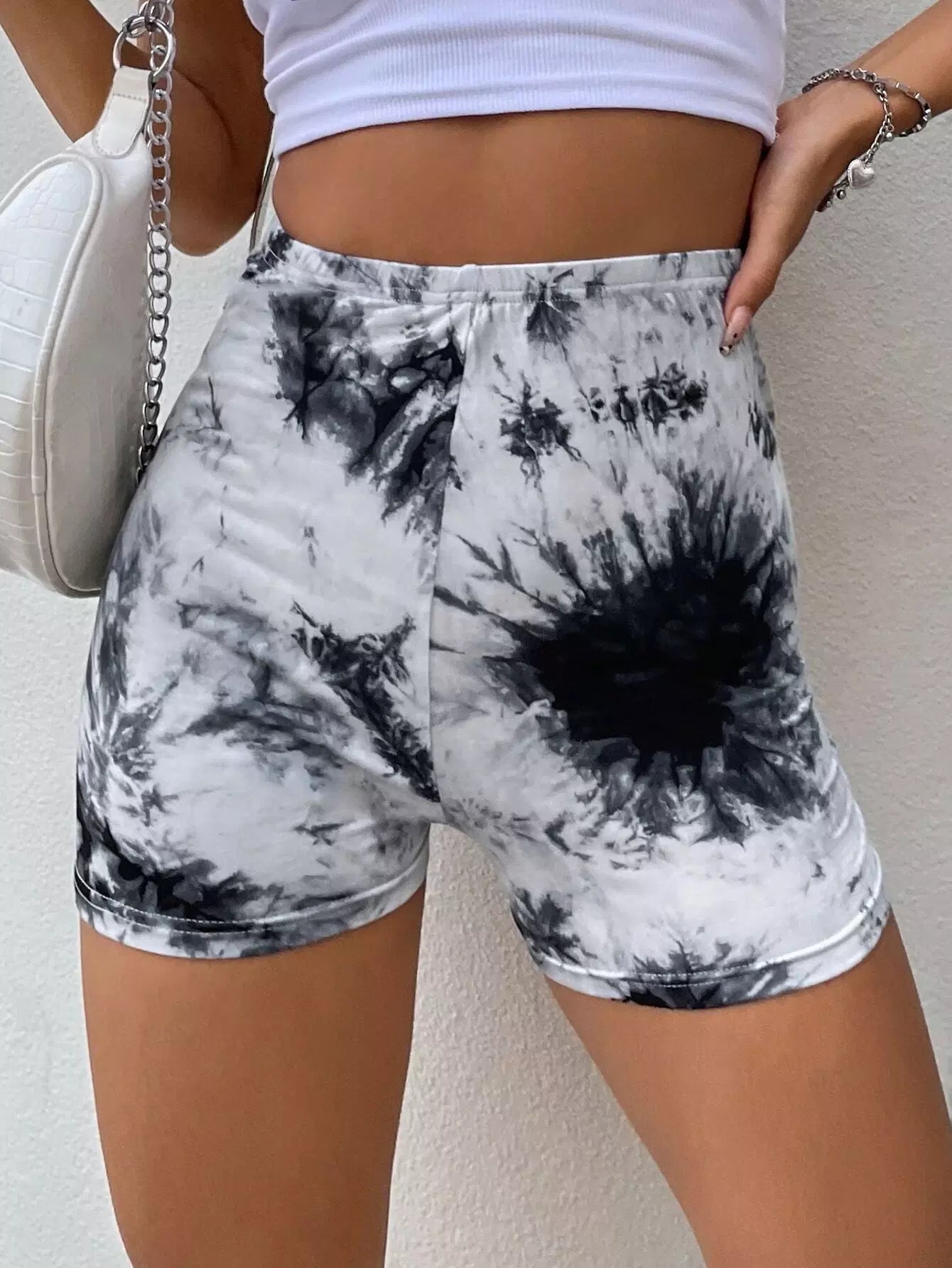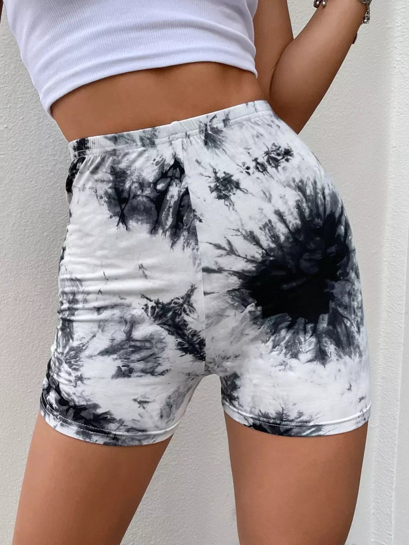 شورت عالي الخصر مصبوغ بربطة عنق عالية الخصر لراكبي الدراجات النارية
