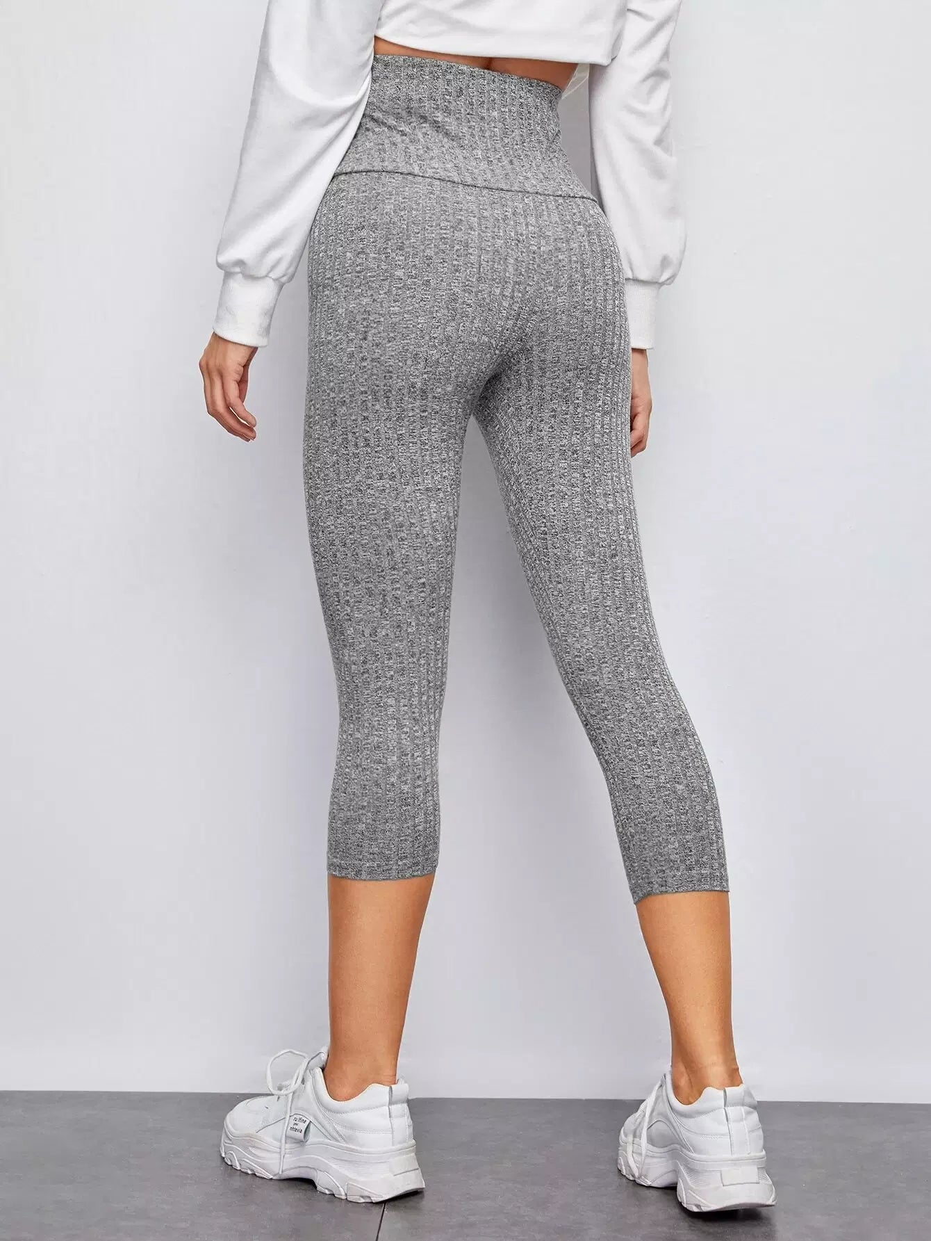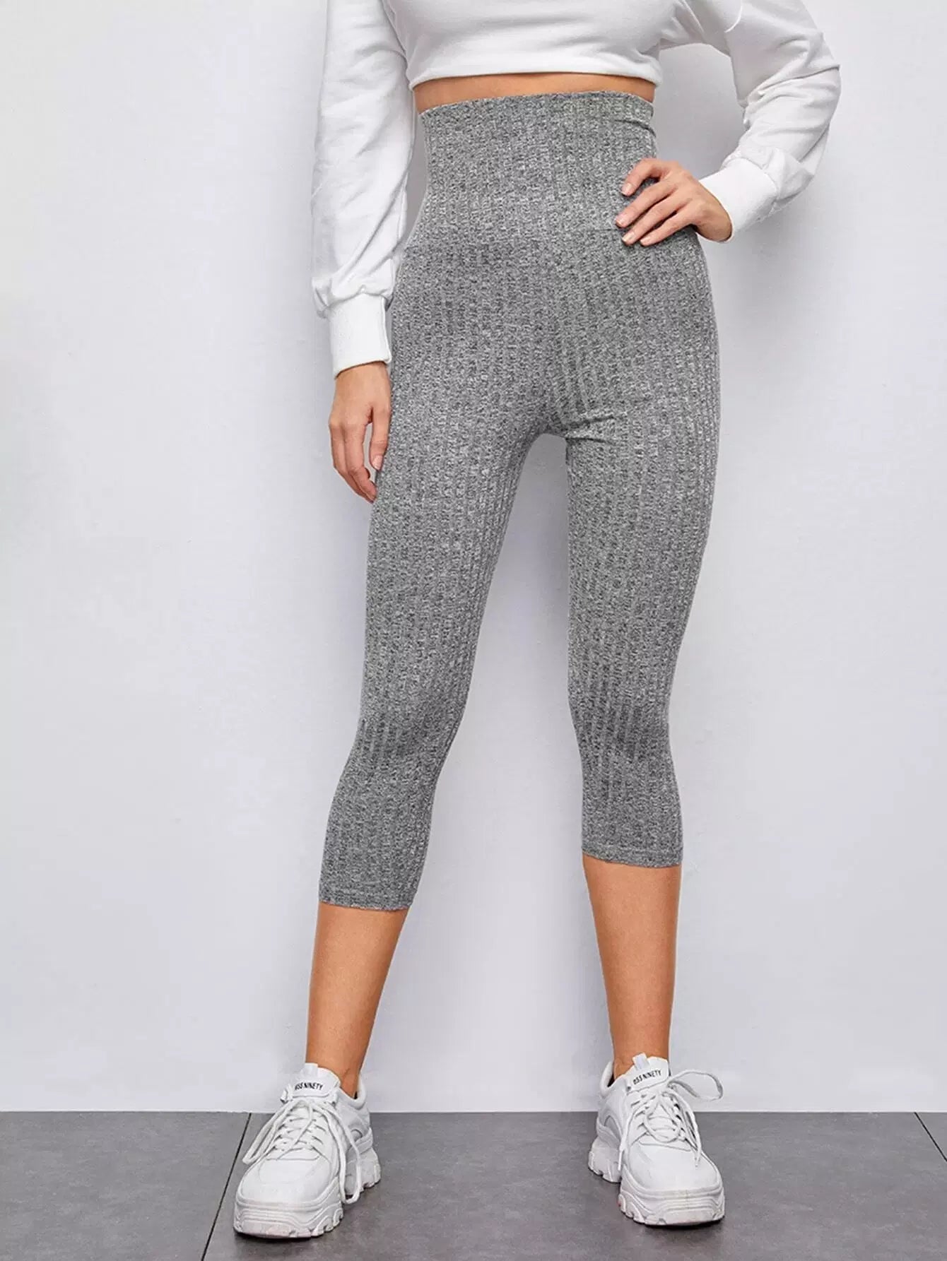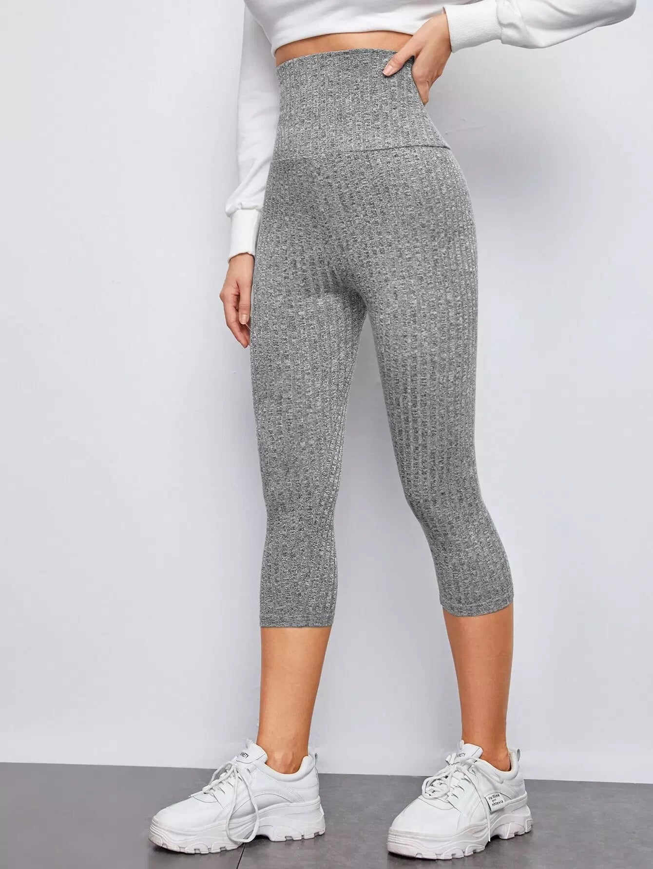 بنطال كابري ضيق من نسيج مضلع بحزام خصر عريض