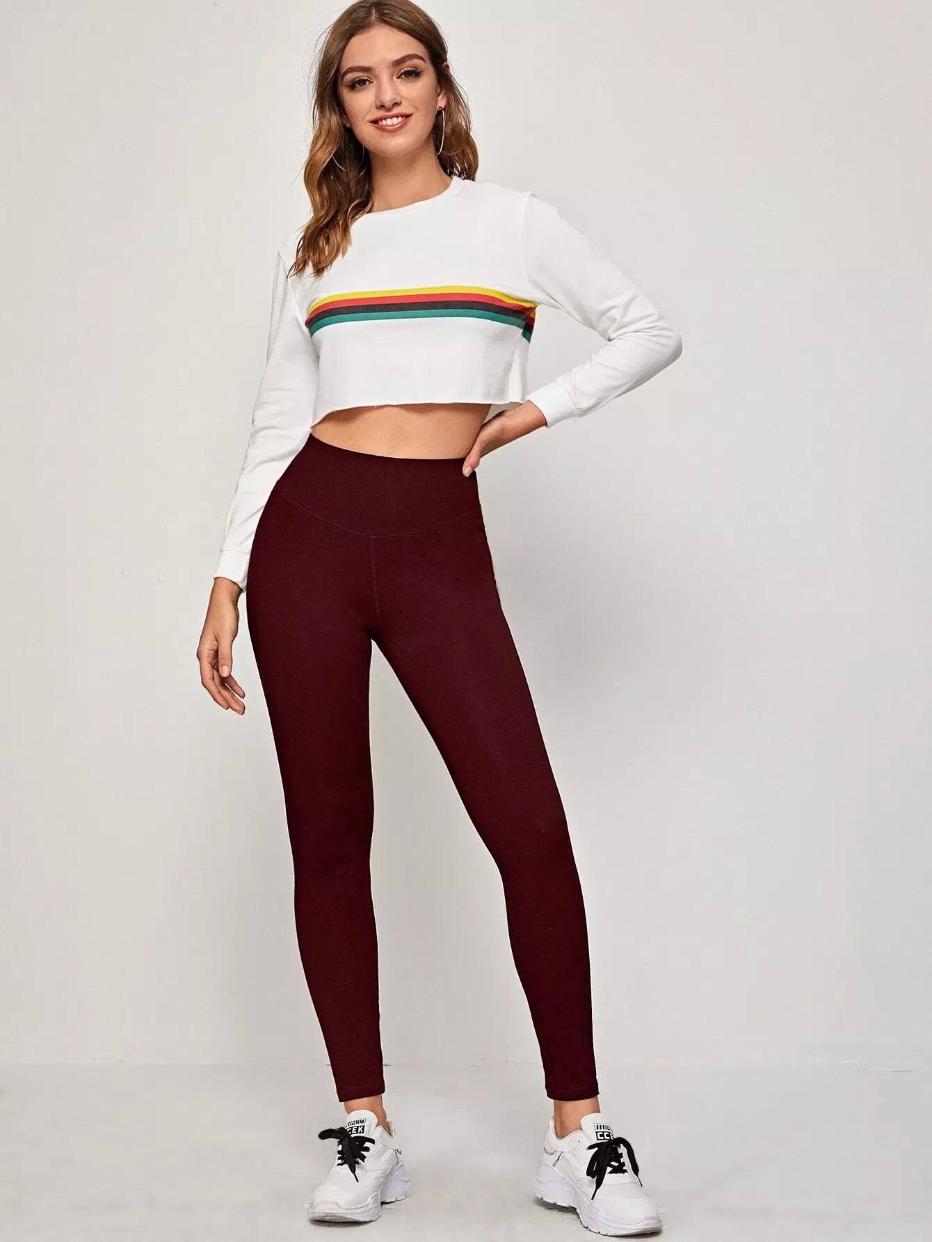 بنطال ضيق سادة بحزام خصر عريض
