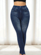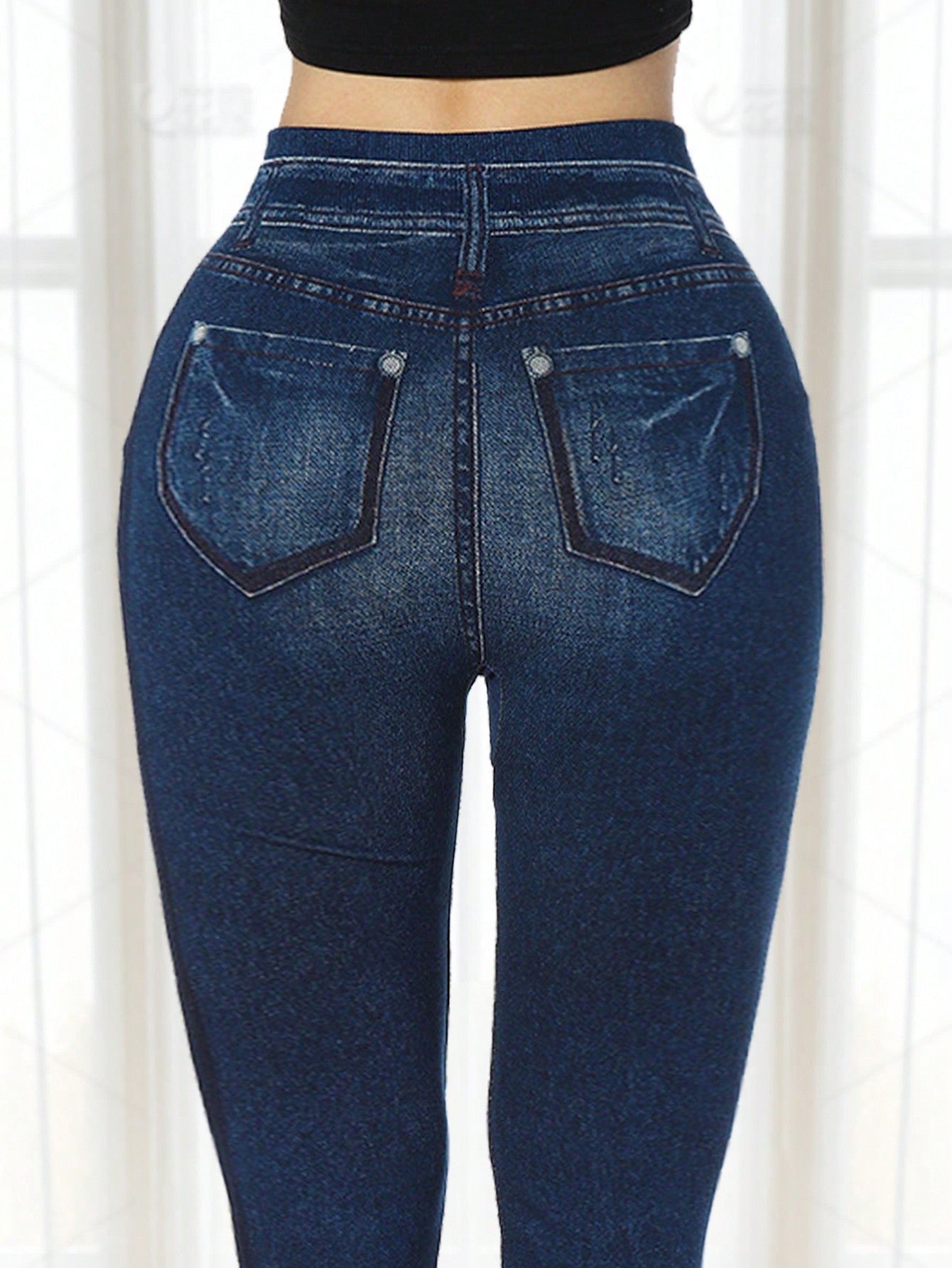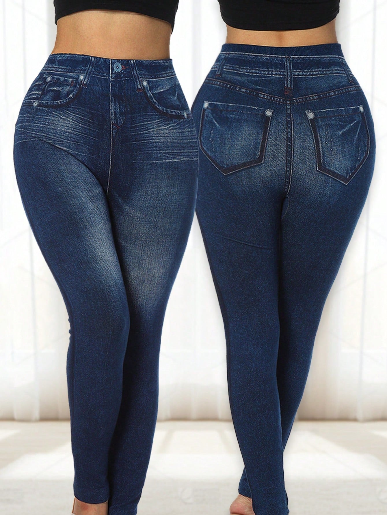 Women Leggings Seamless High Elastic Pants Denim Effect Tight Gym Running Slim Pants High Waist Casual