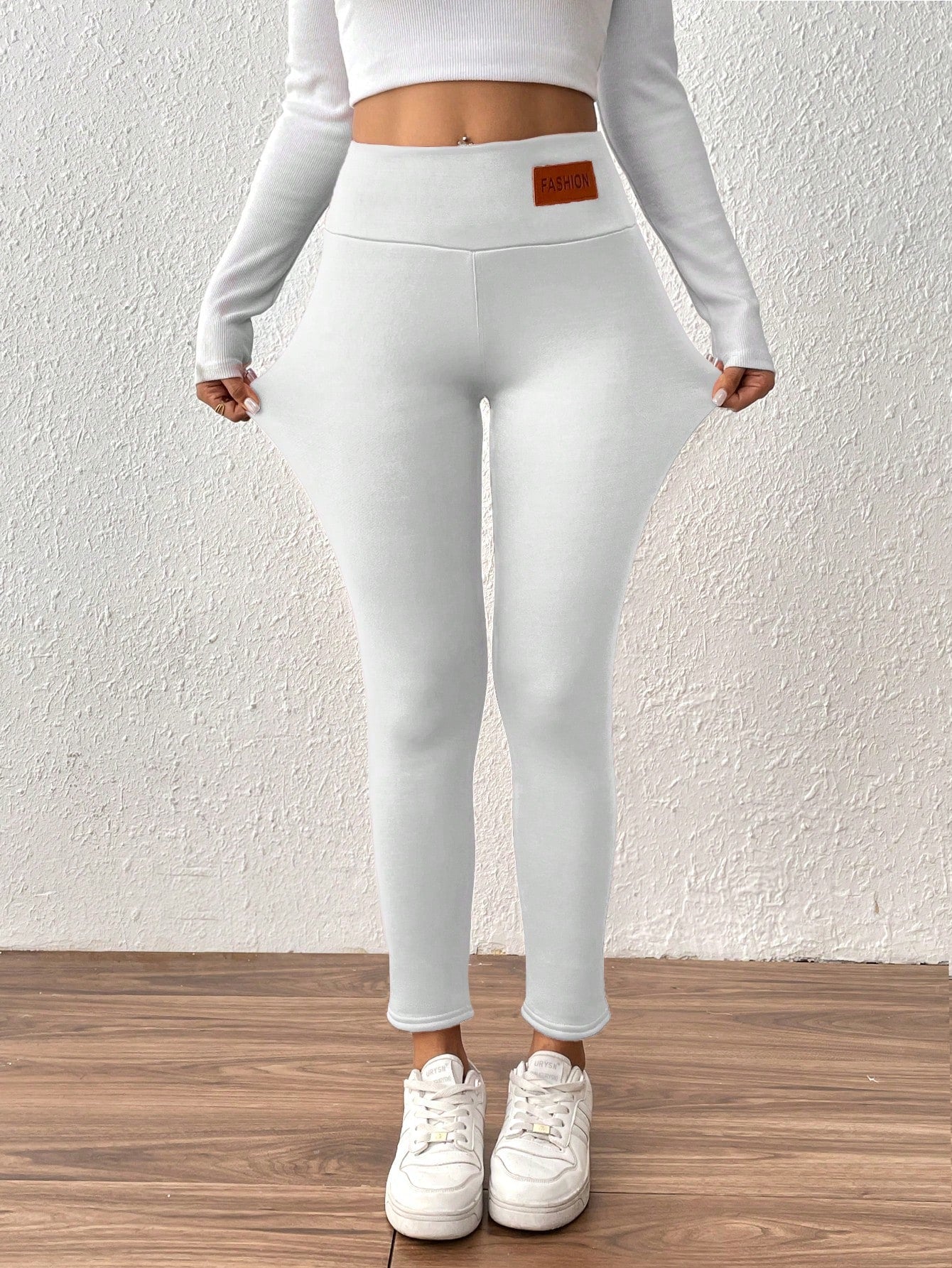 بنطلون نسائي مبطن عالي الخصر سميك حراري - بنطلون دافئ ضيق مطاطي