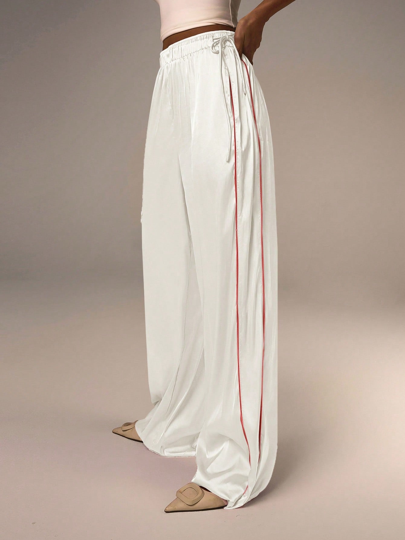 بنطلون نسائي كاجوال واسع الساق برباط جانبي، متعدد الاستخدامات