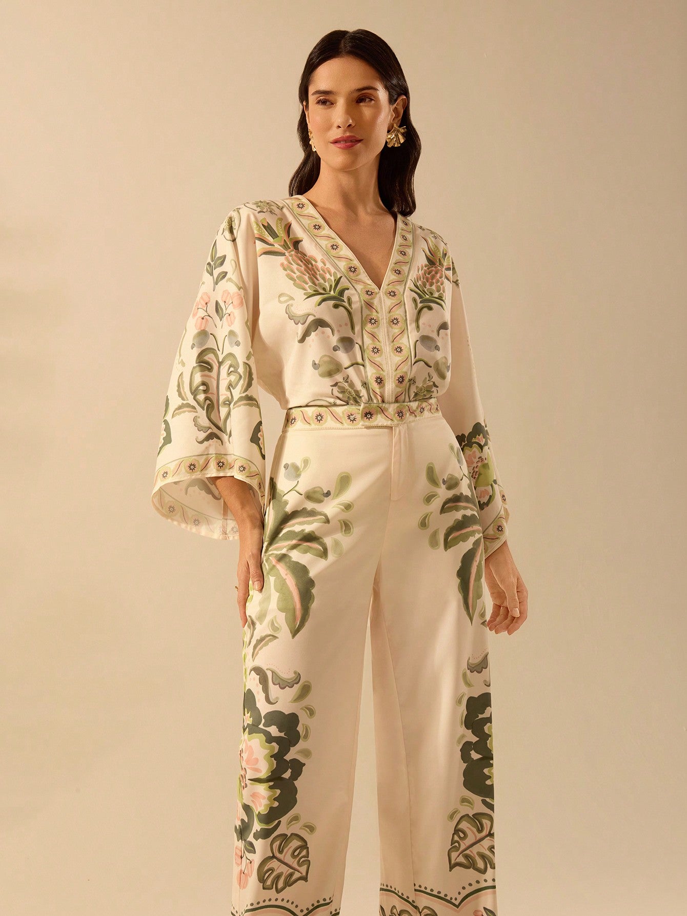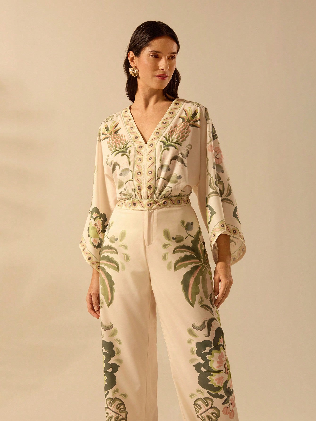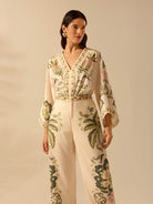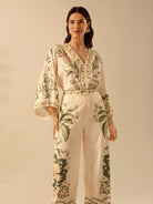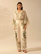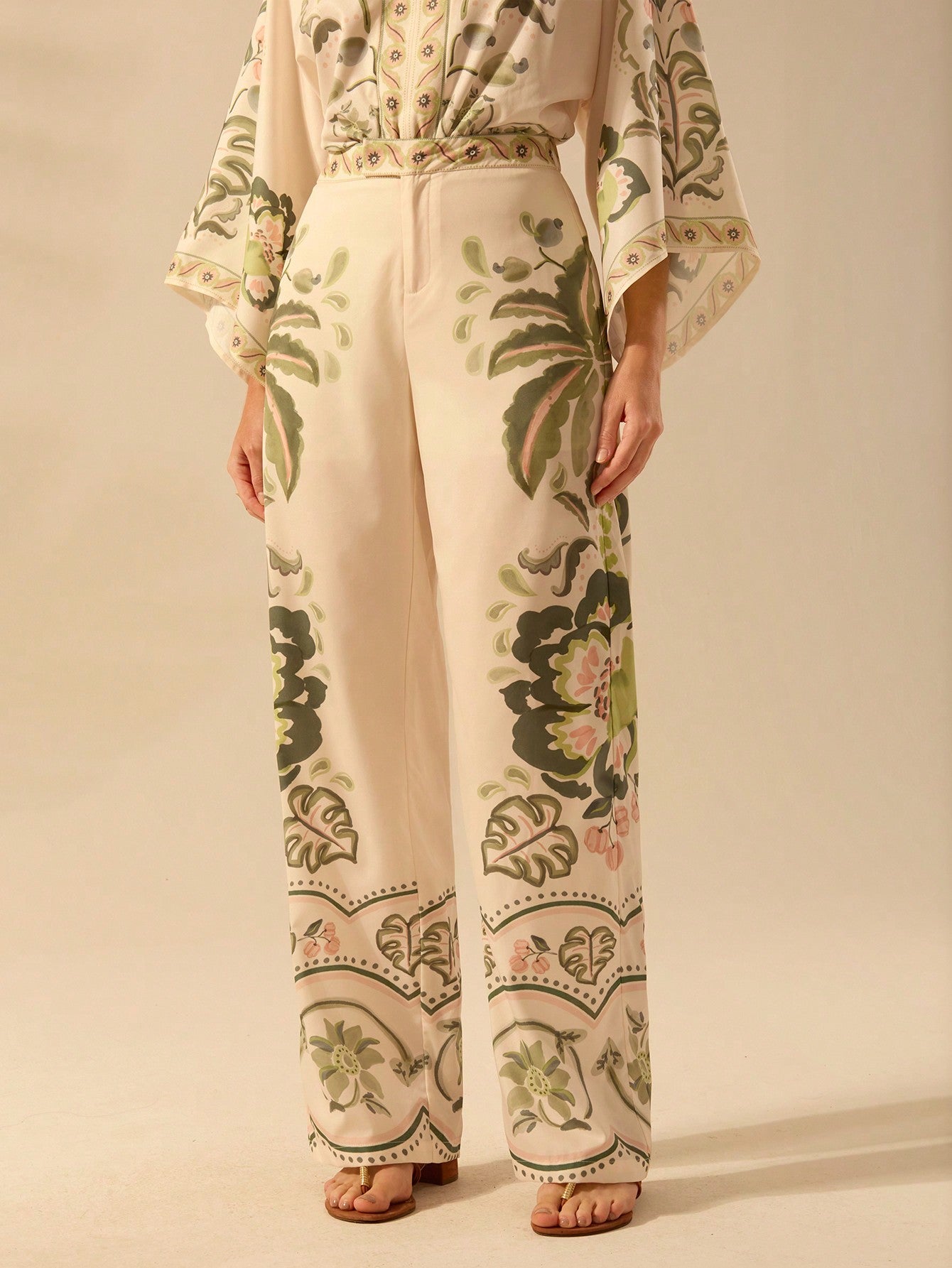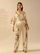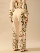 بنطلون نسائي كاجوال بقصة مستقيمة من CAJUNI مطبوع عليه زهور الكركديه الاستوائية وشجرة النخيل ونبات الثعبان للشاطئ
