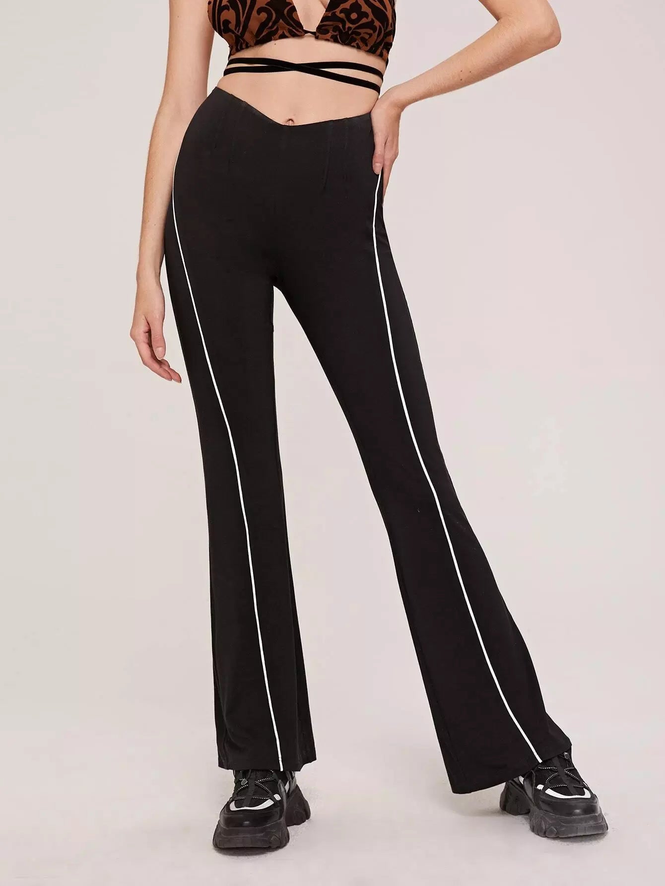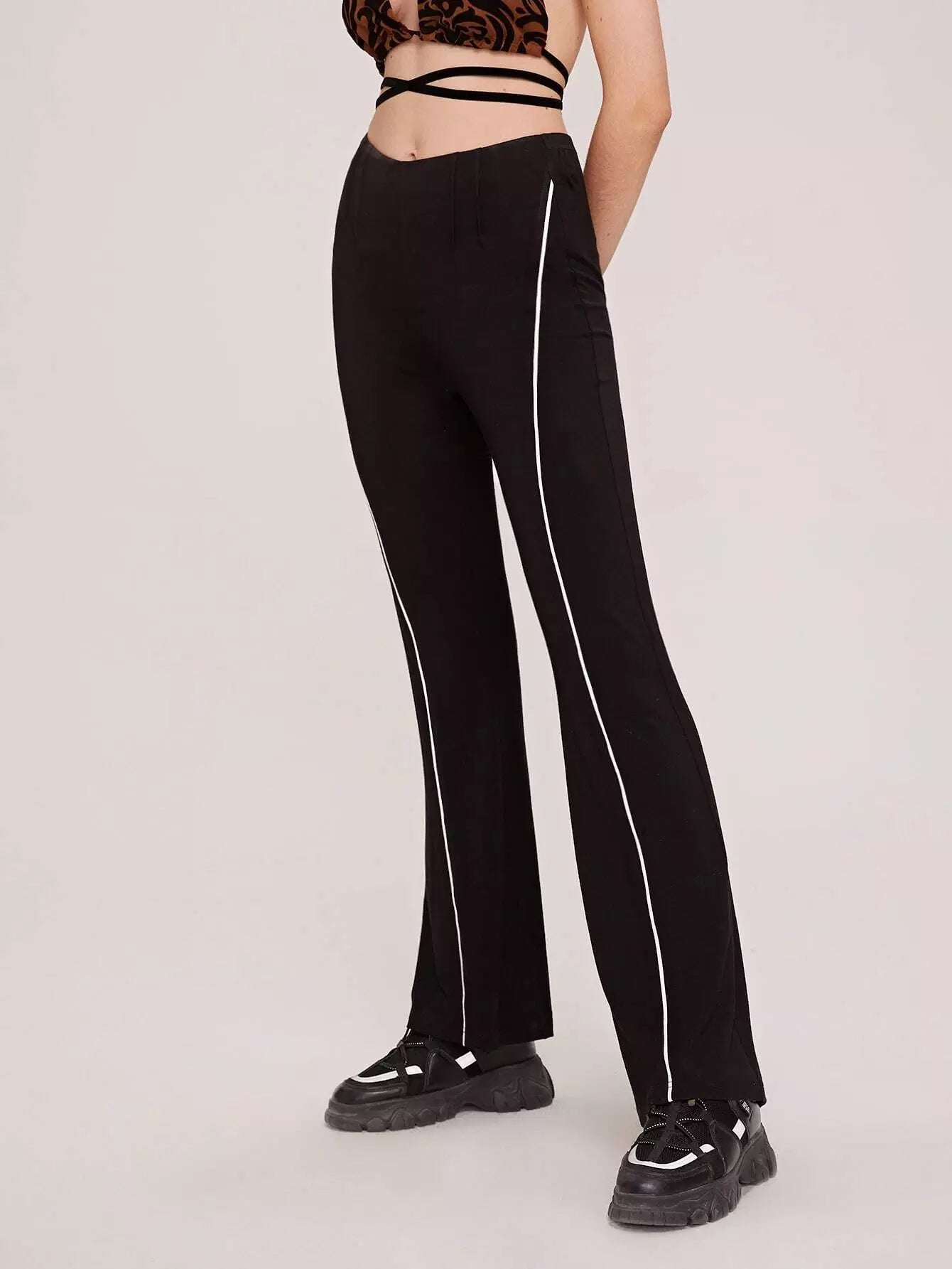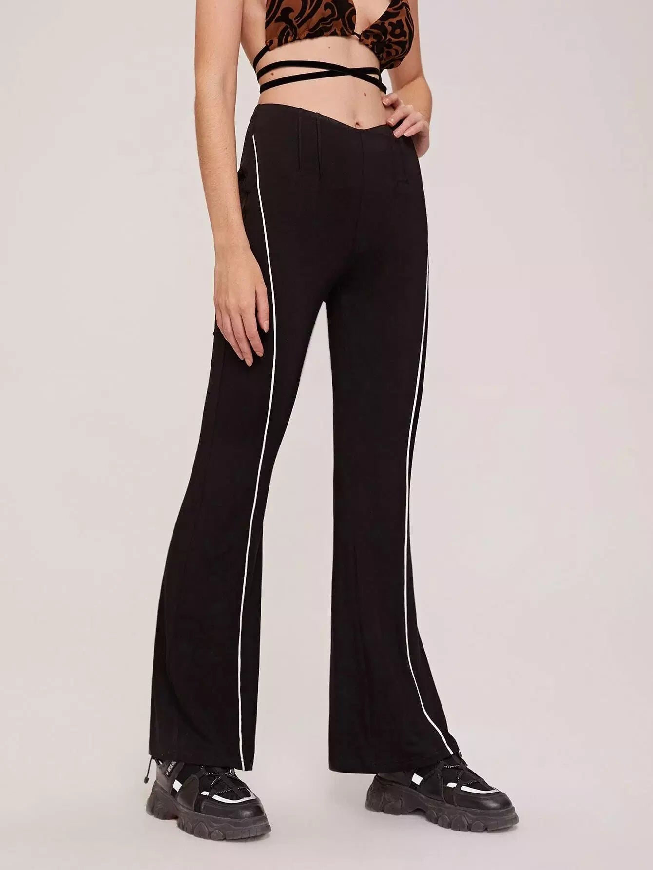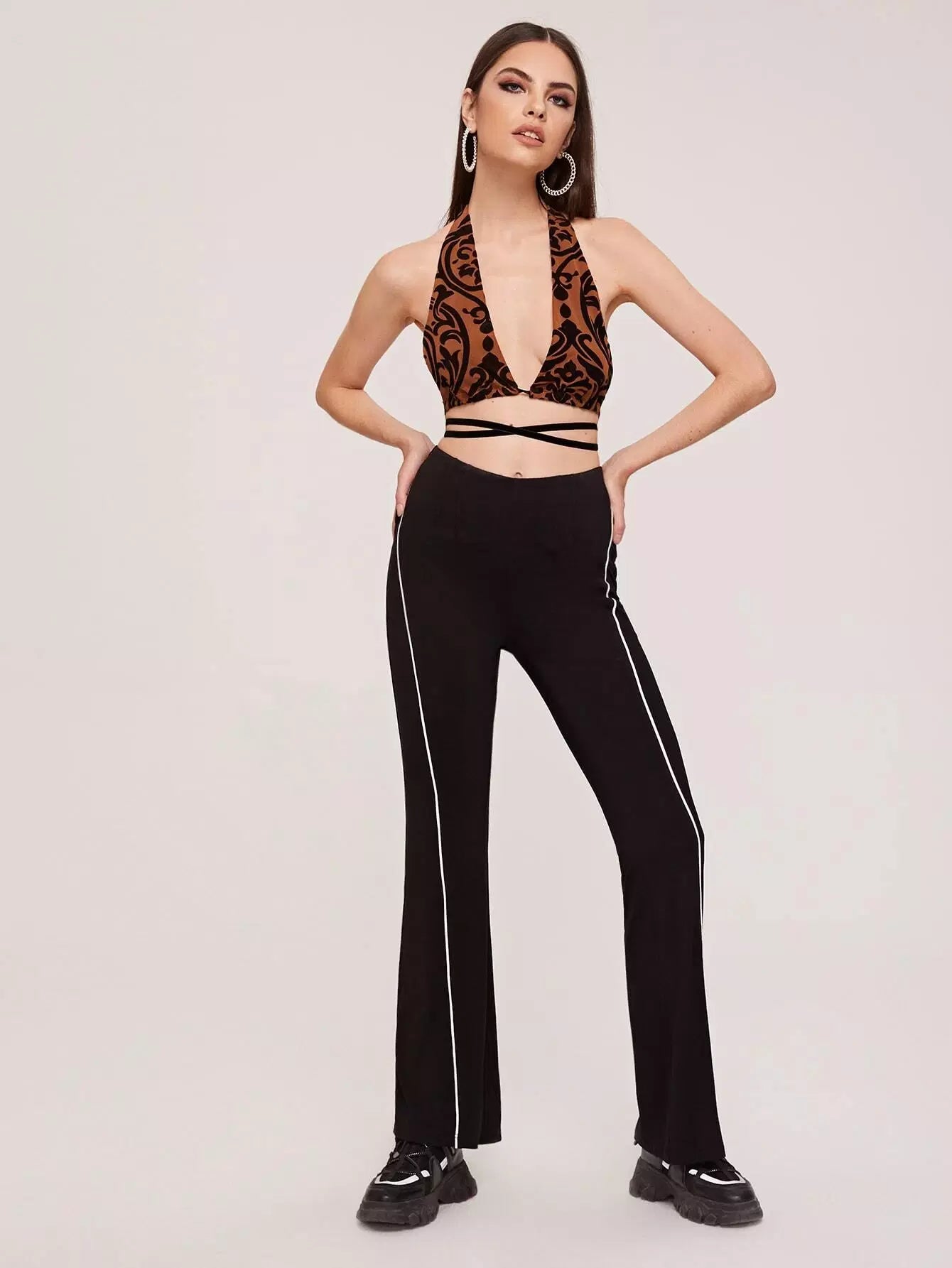 بنطلون برقبة بلون مغاير برقبة واسعة الساقين