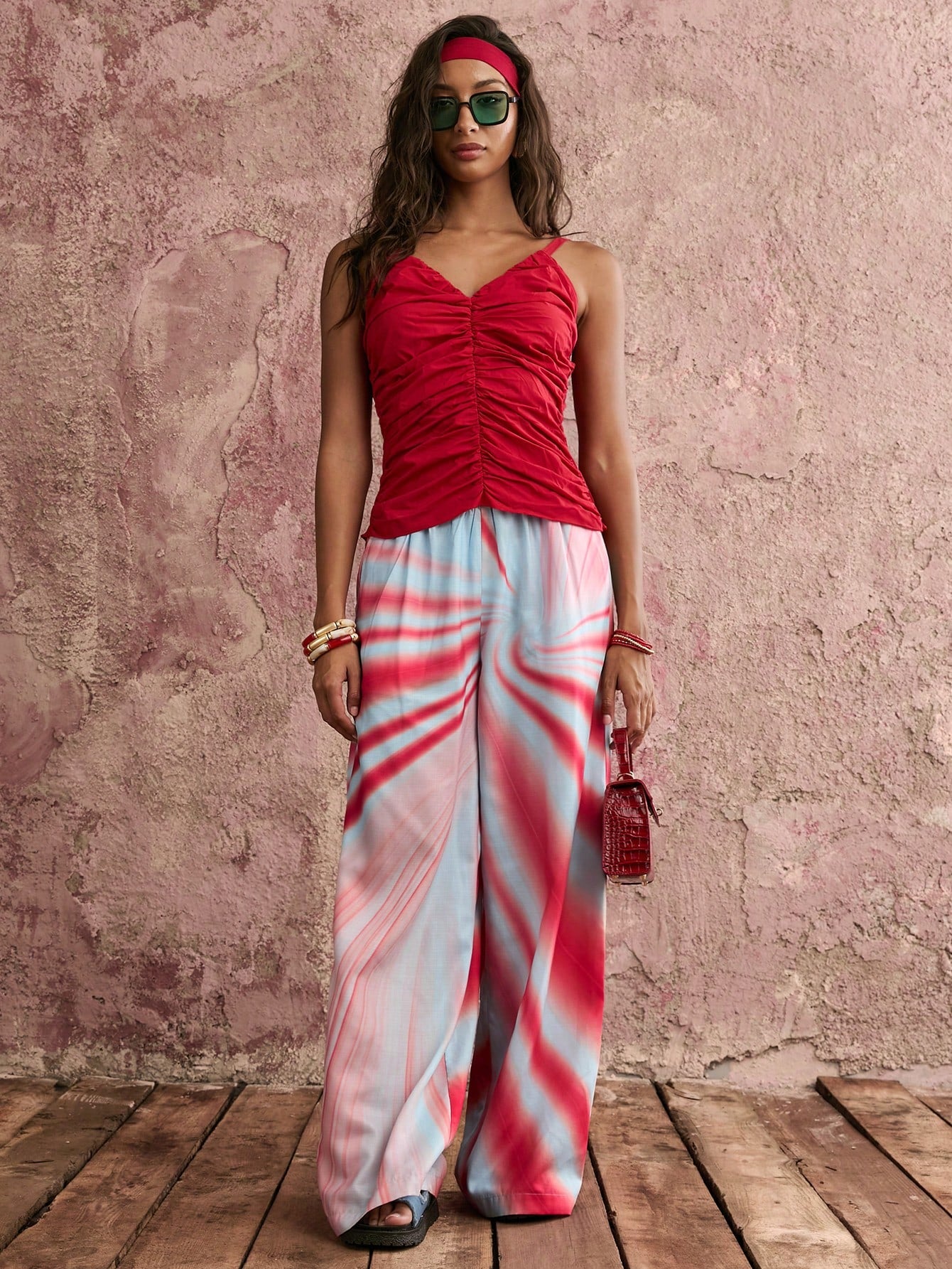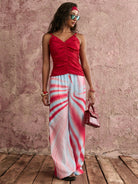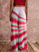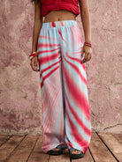 COSMINA Women's Casual Elegant Vacation Style Red Orange Blue Swirl Stripe Print Back Long Casual Wide