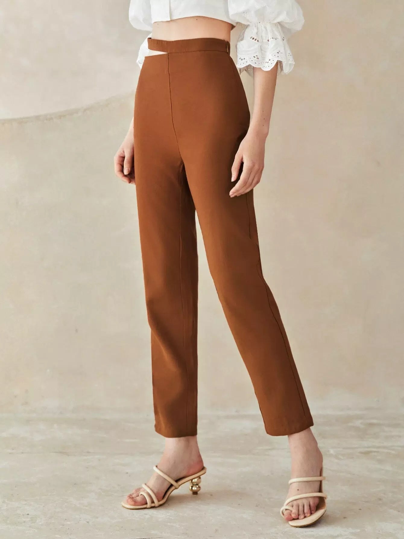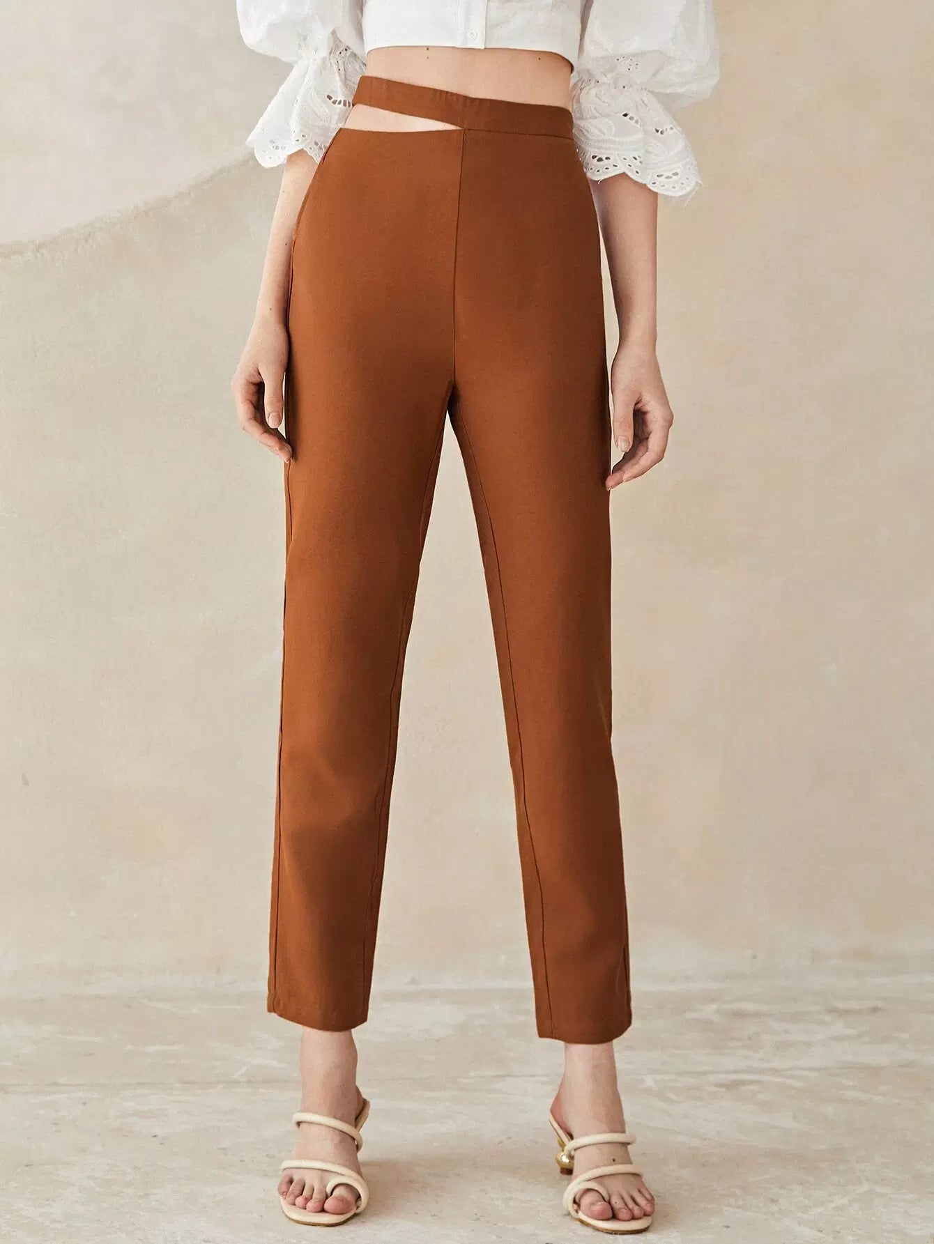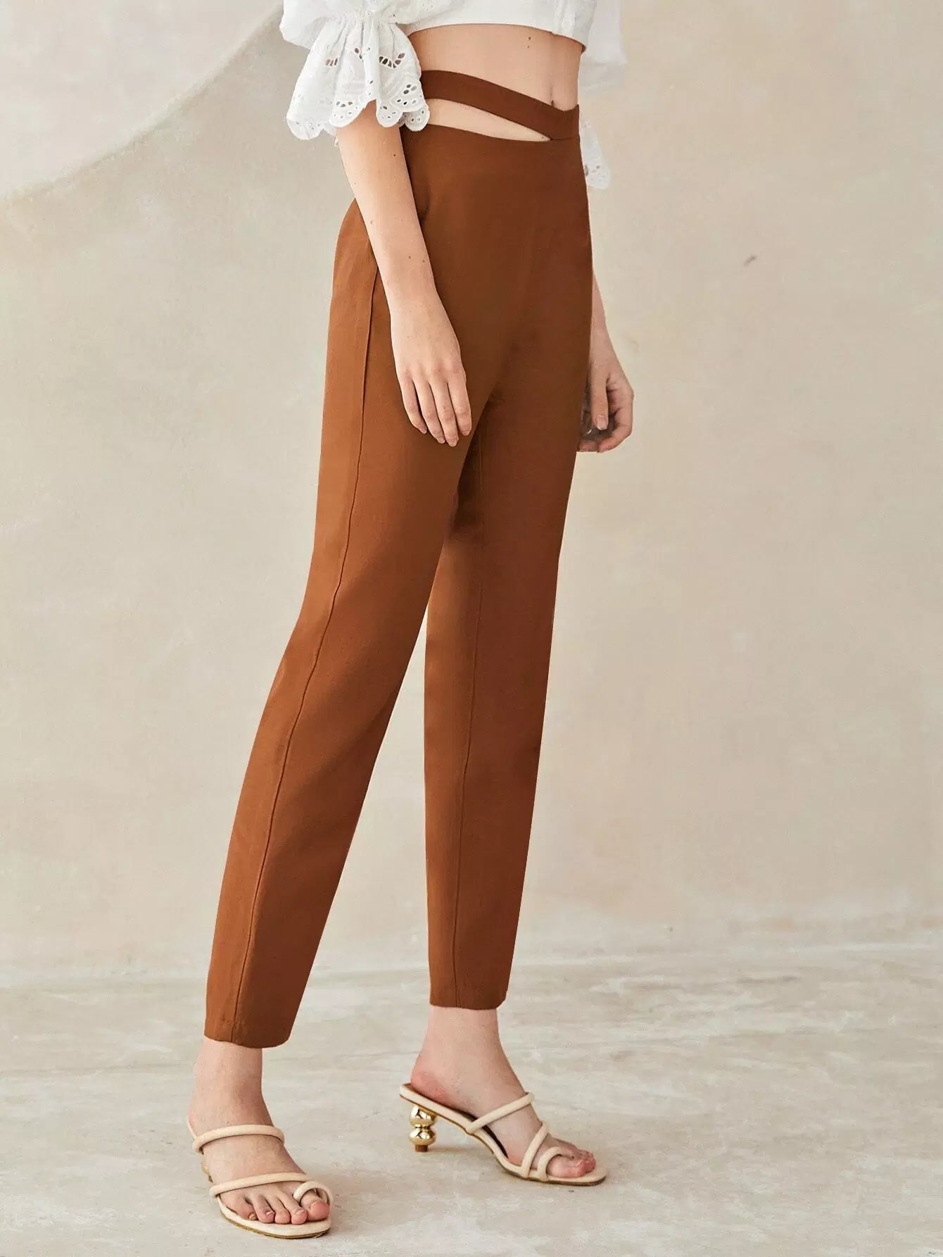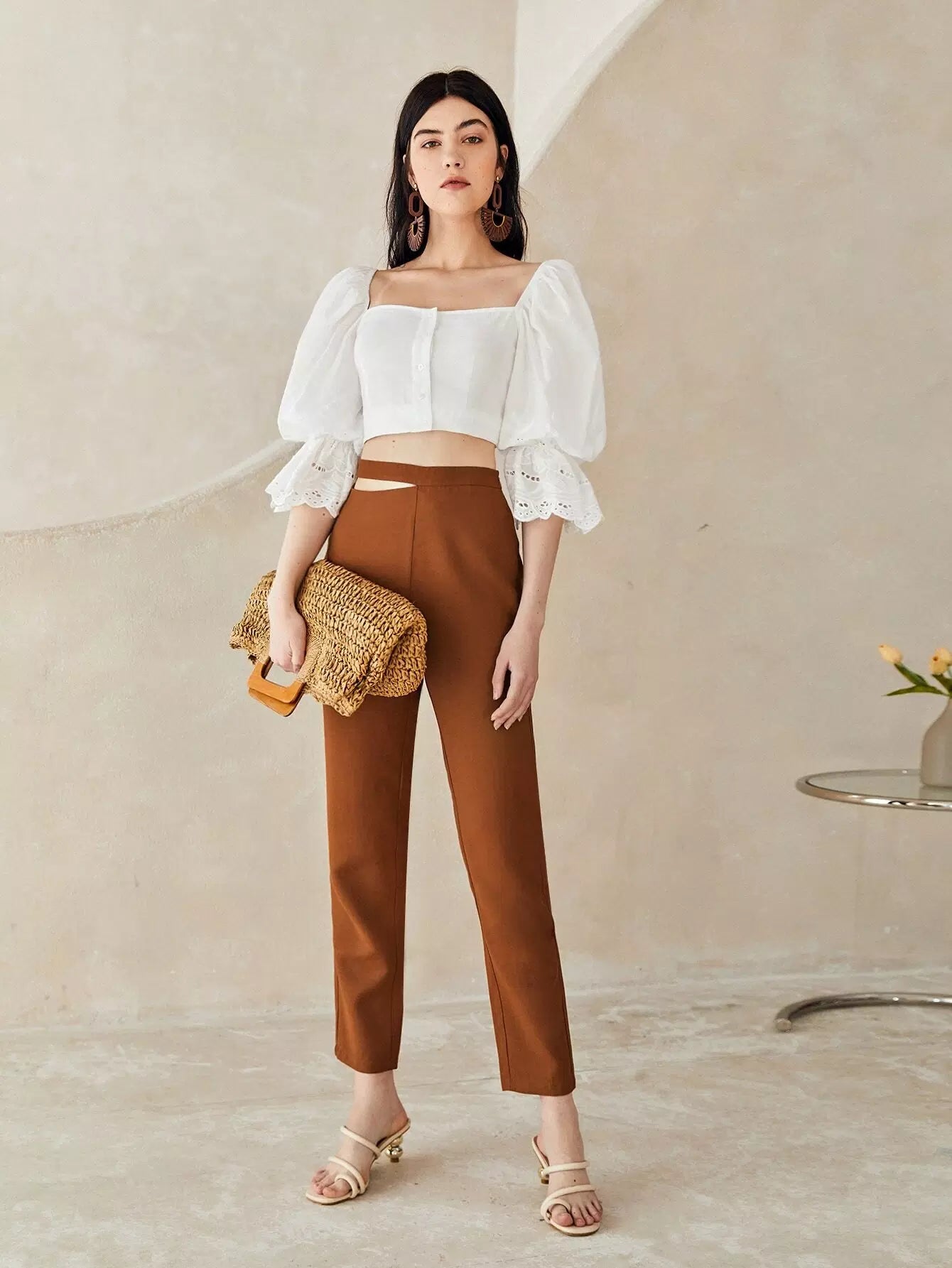 بنطلون سادة بفتحة على الخصر بأزرار مقصوصة