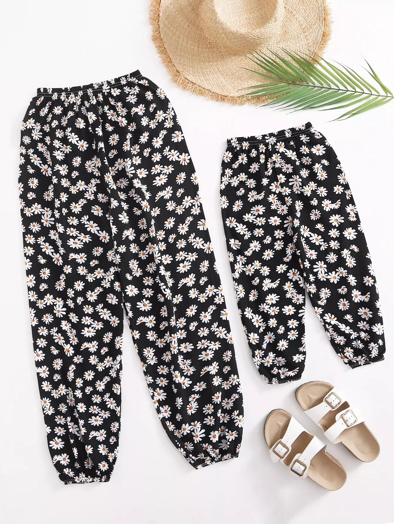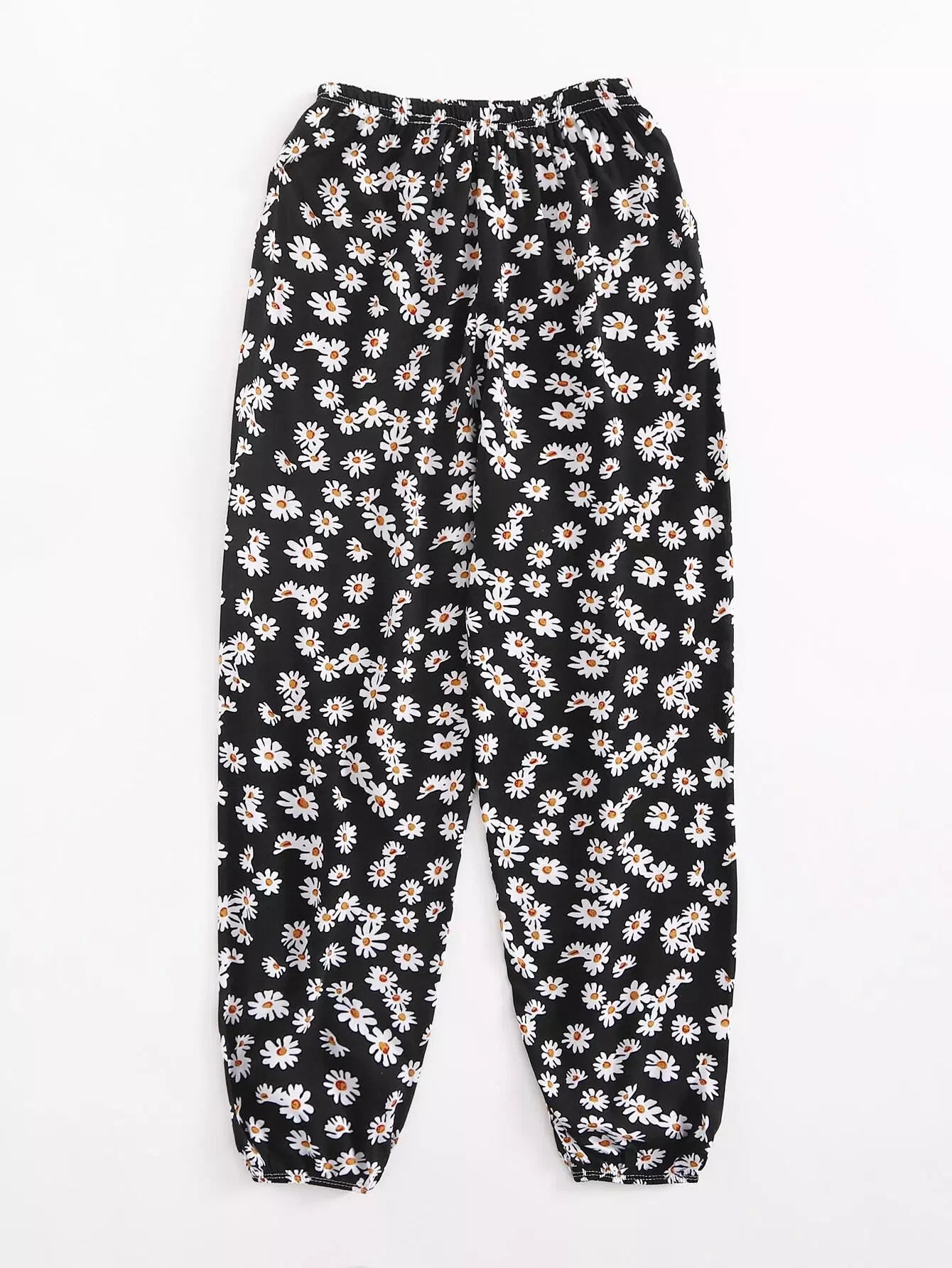 بنطال الجزرة المزين بنقشة زهور الأقحوان