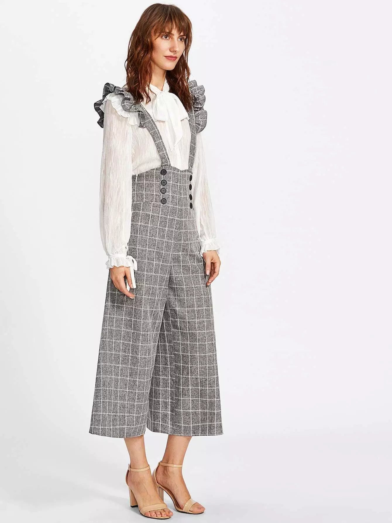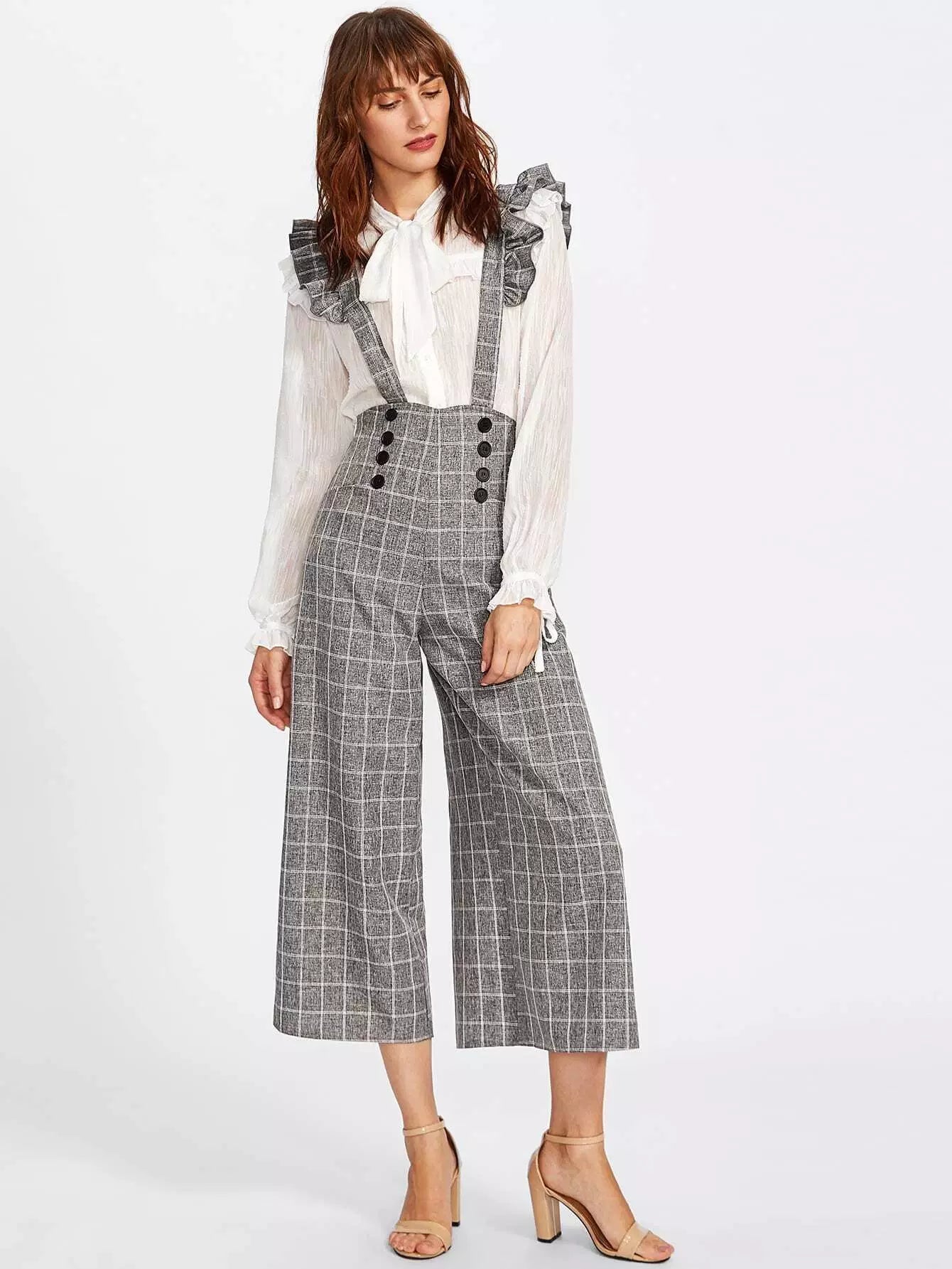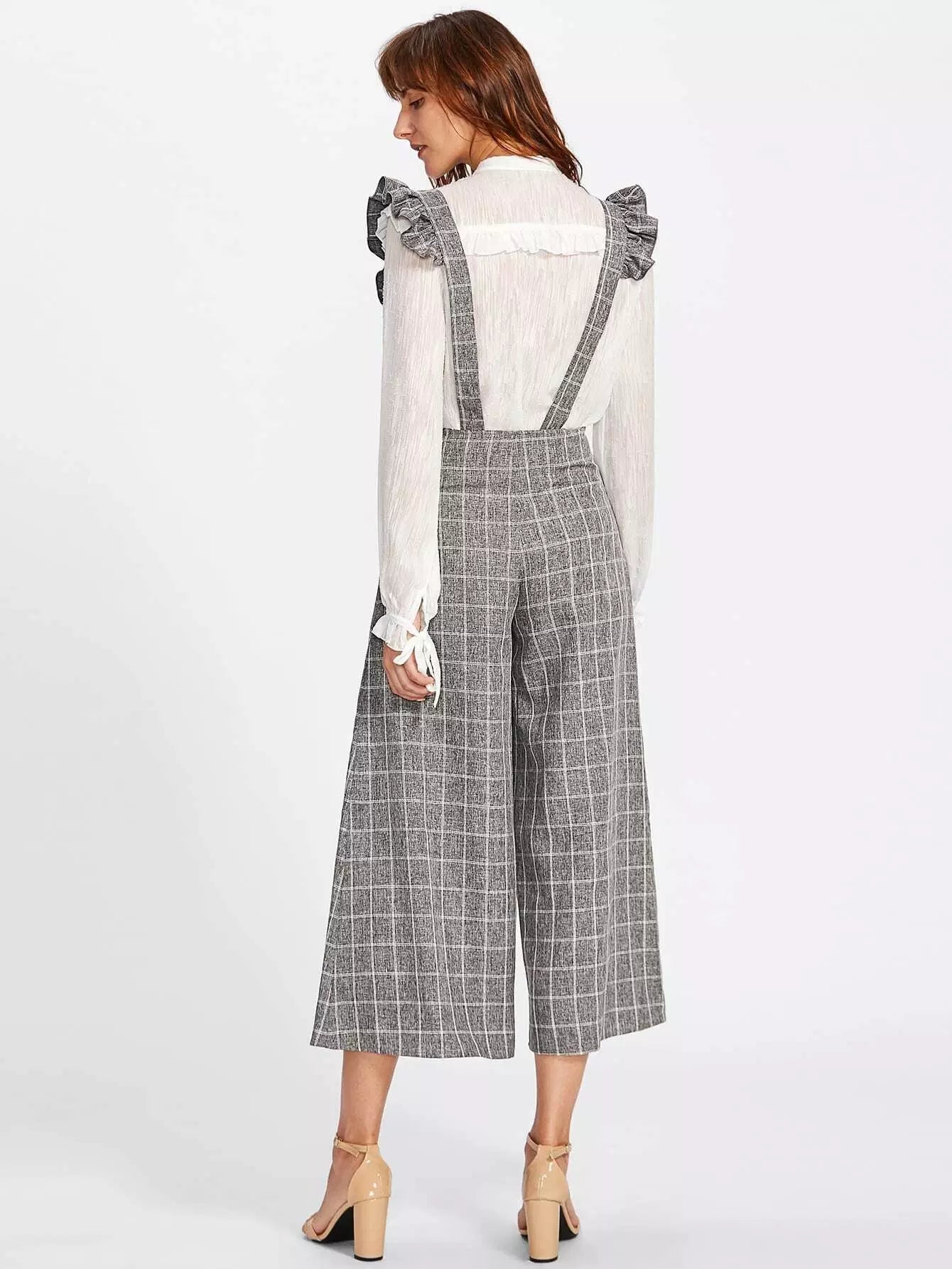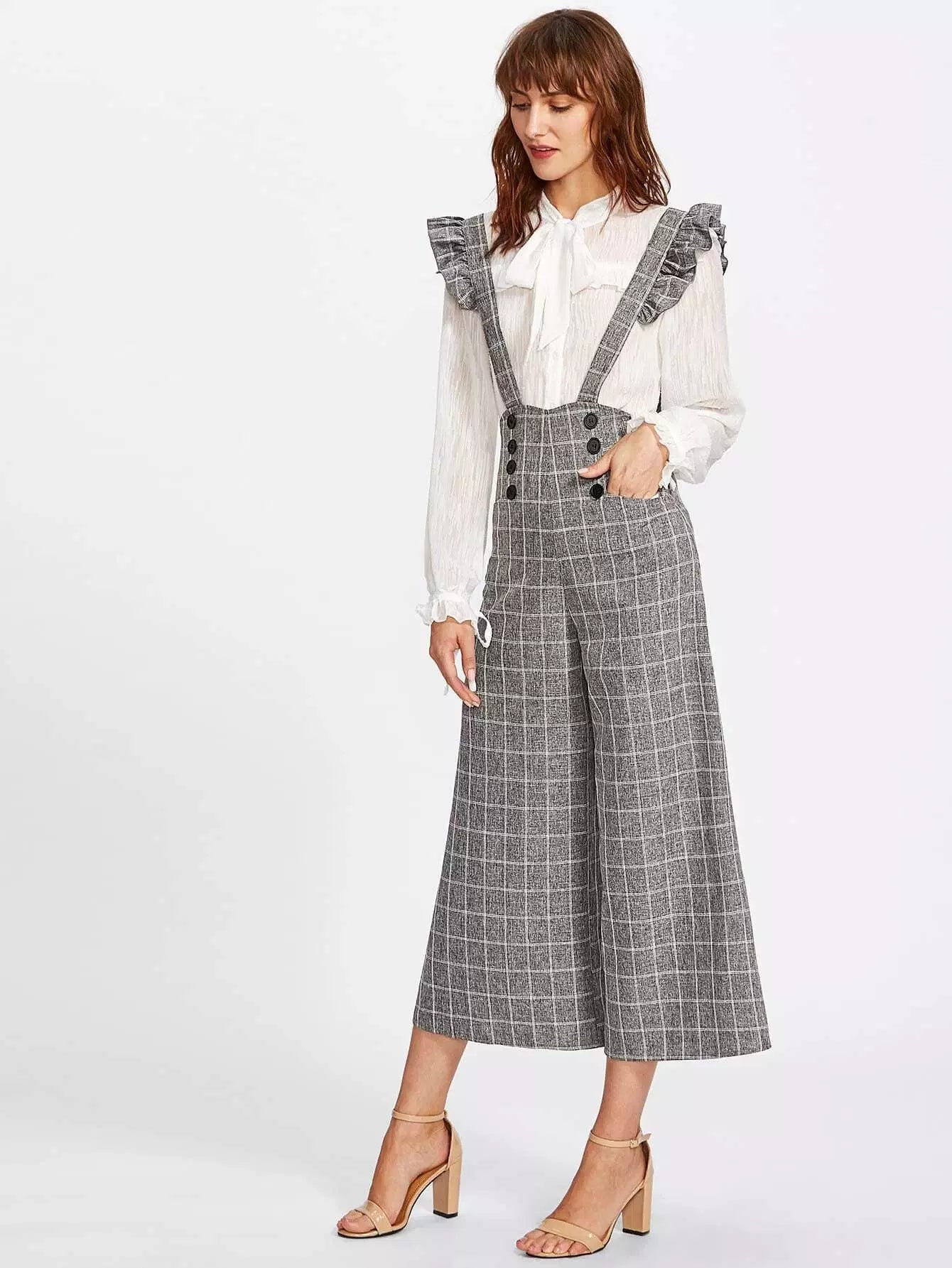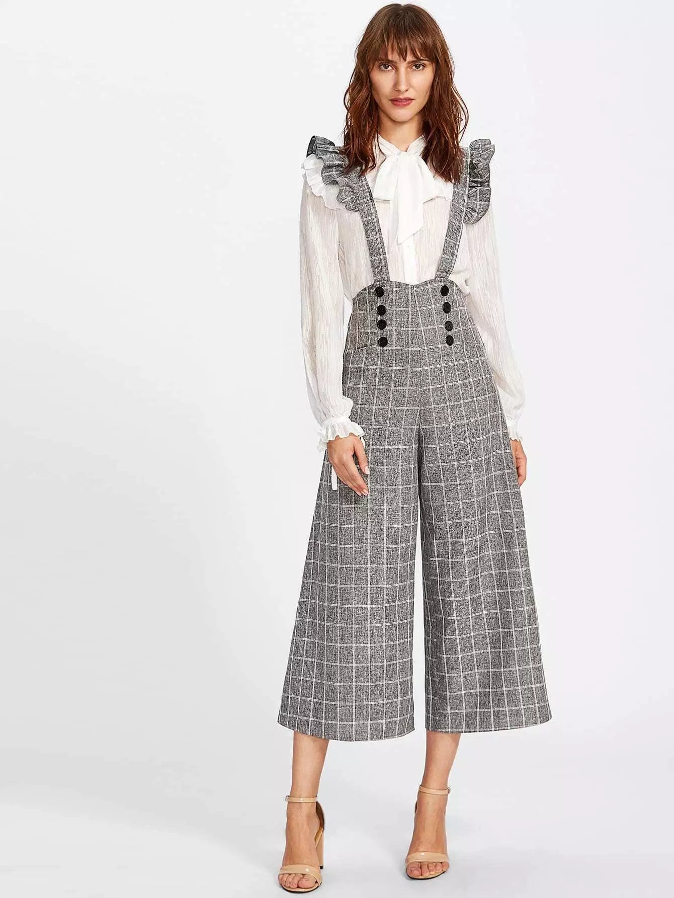 بنطلون كولوت مزدوج الصدر بحزام كشكش