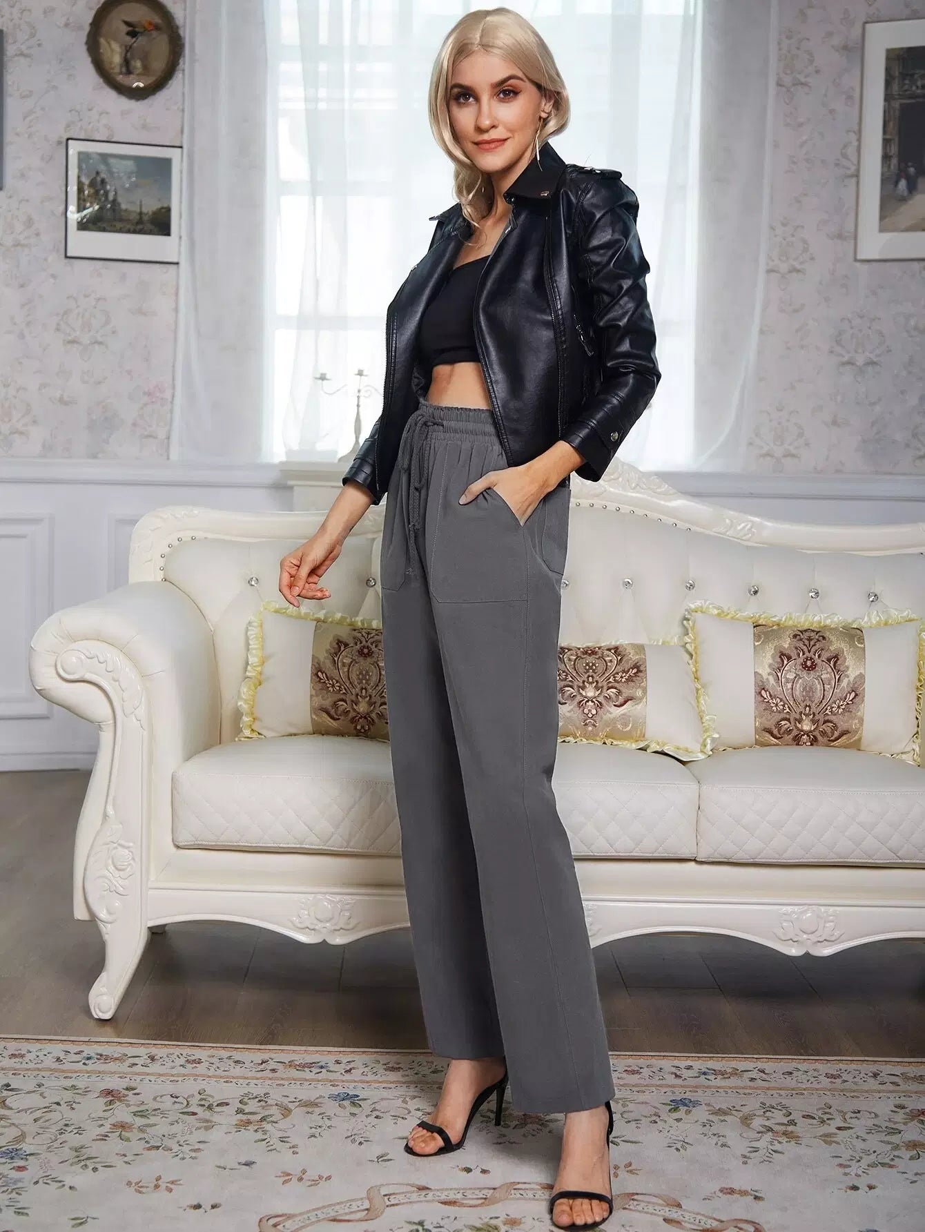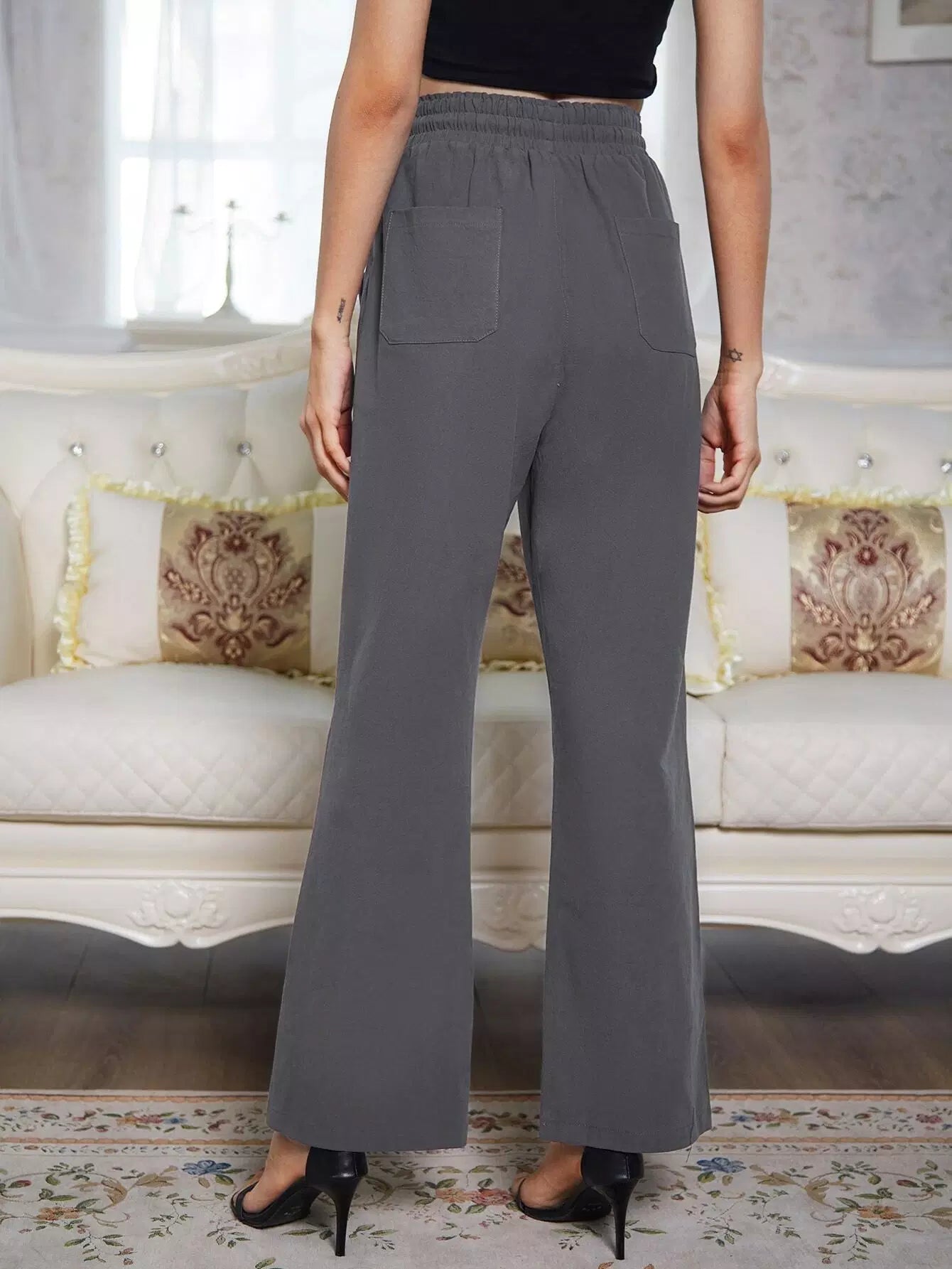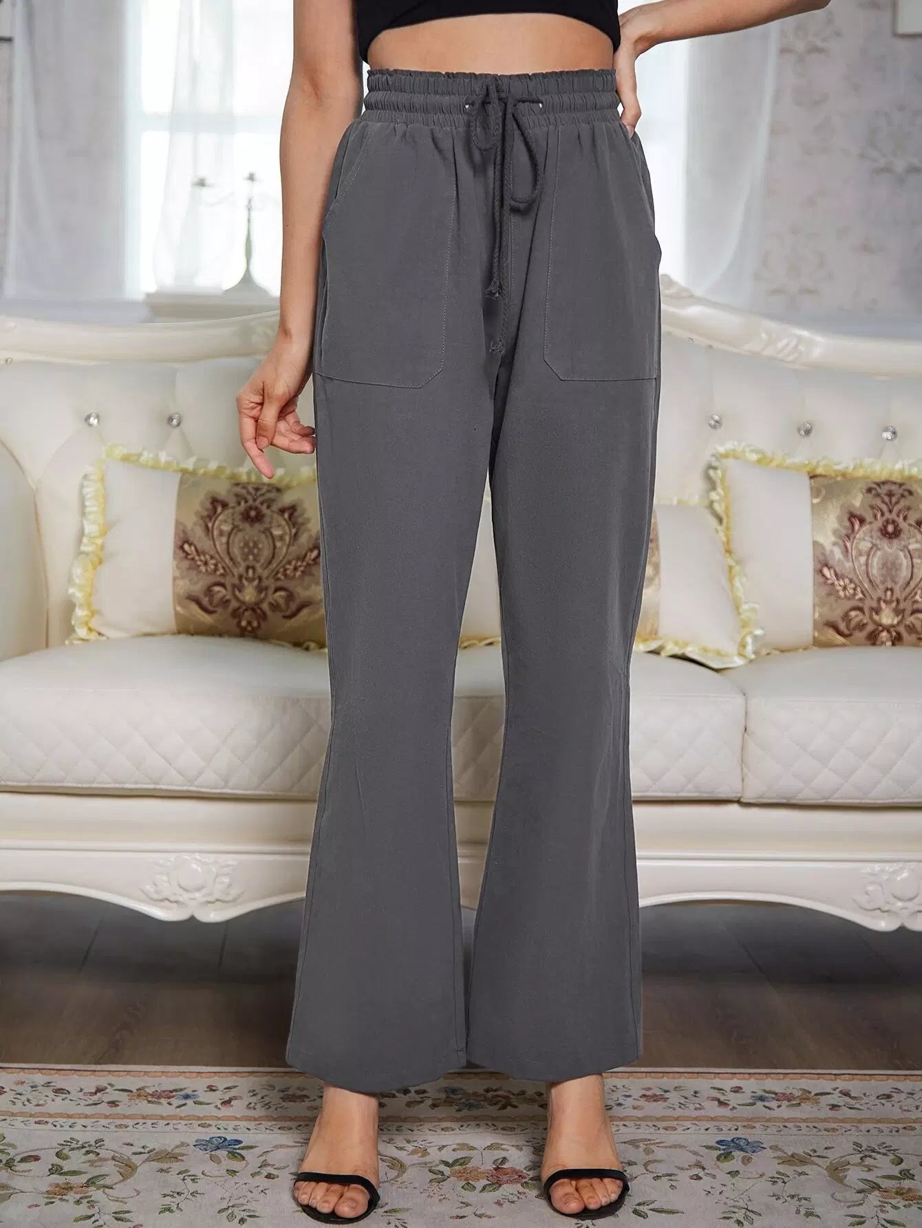 بنطال برباط خصر مائل بجيب مائل واسع الساقين