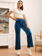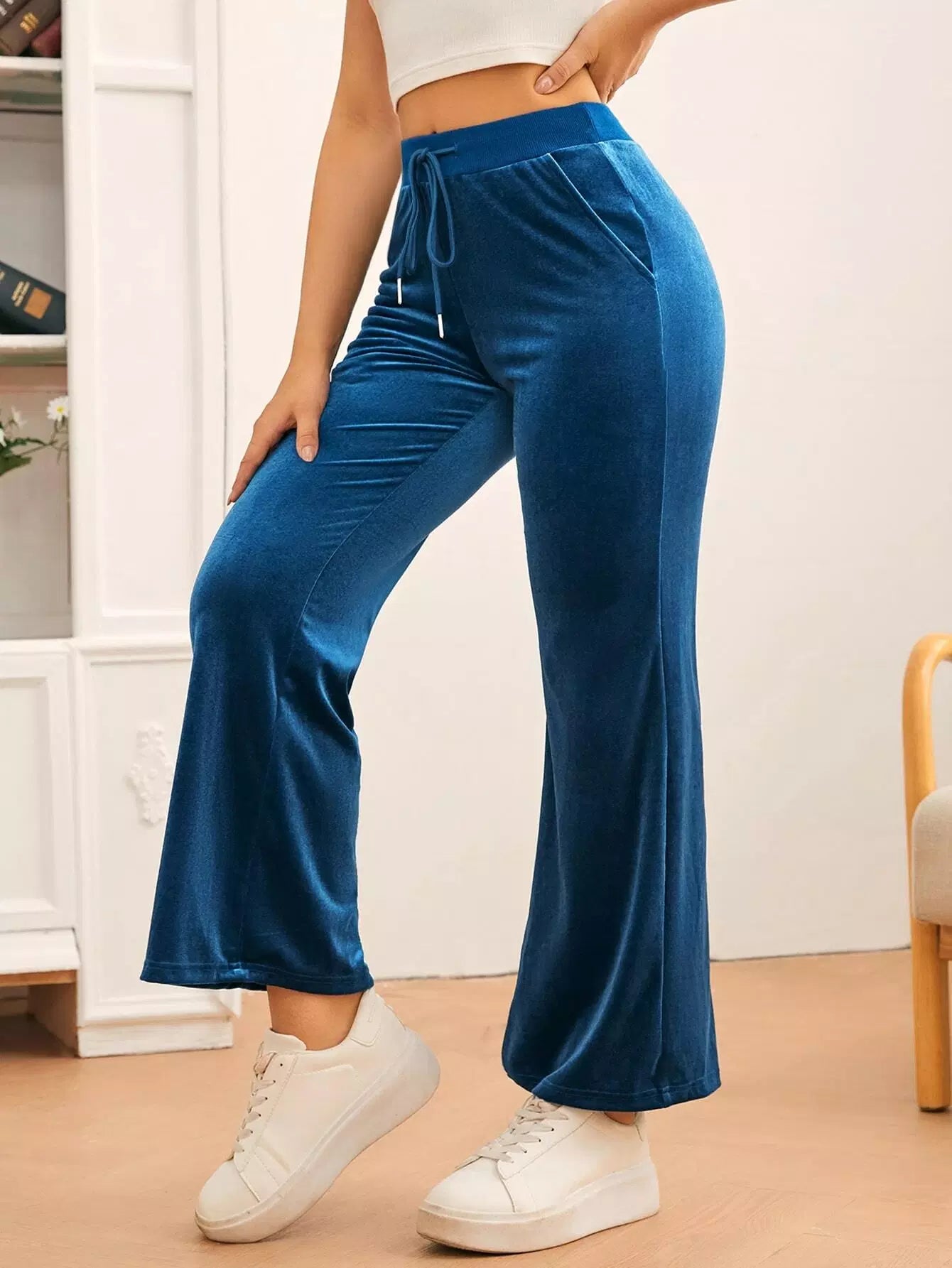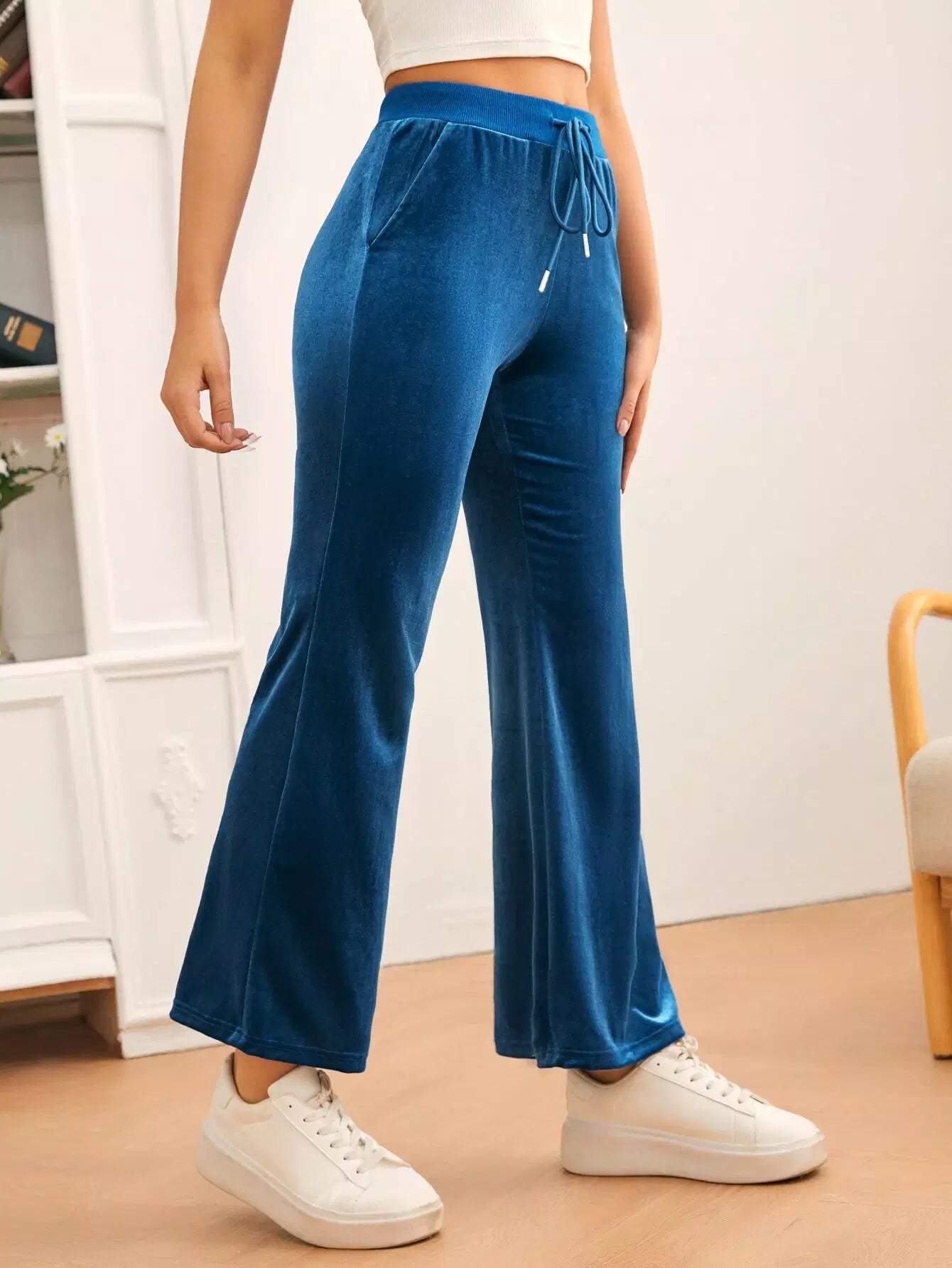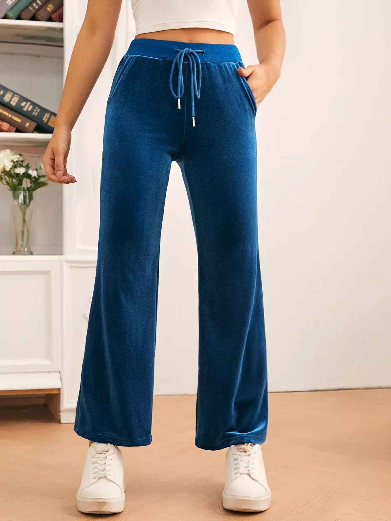 بنطال مخملي بساق مستقيمة ورباط على الخصر