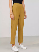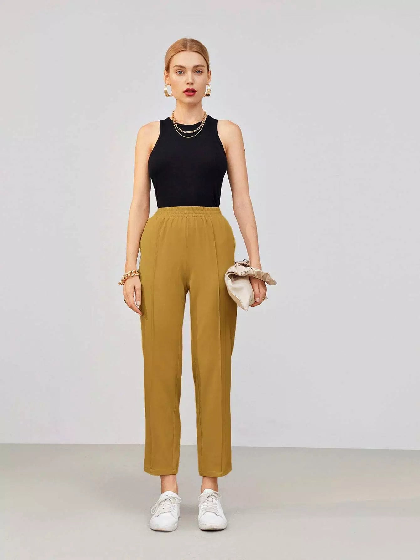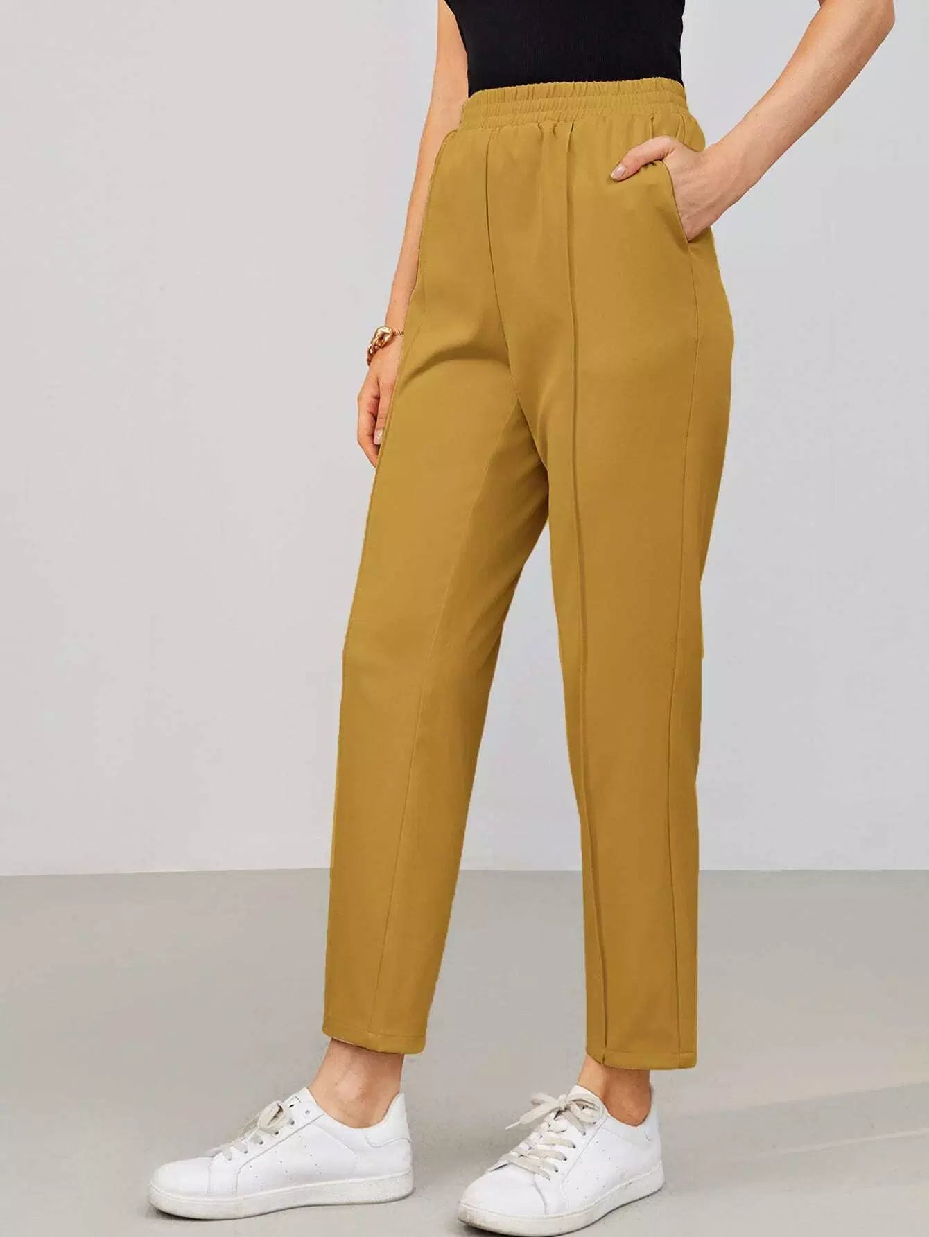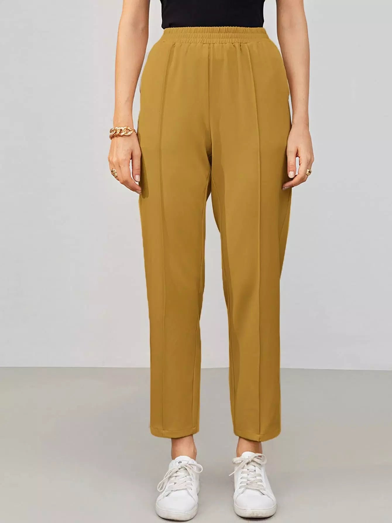 بنطال بخصر مطاطي بخياطة أمامية مرنة من الأمام