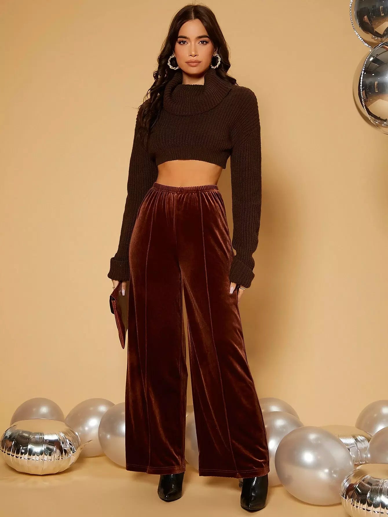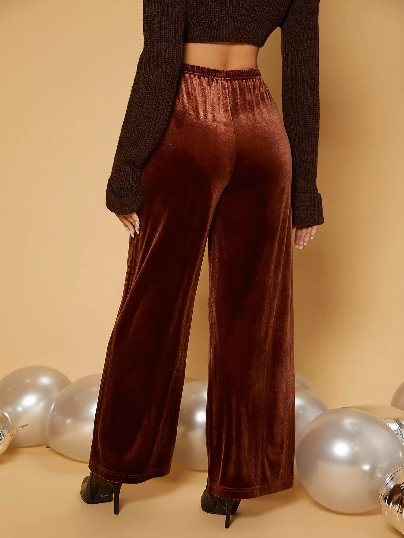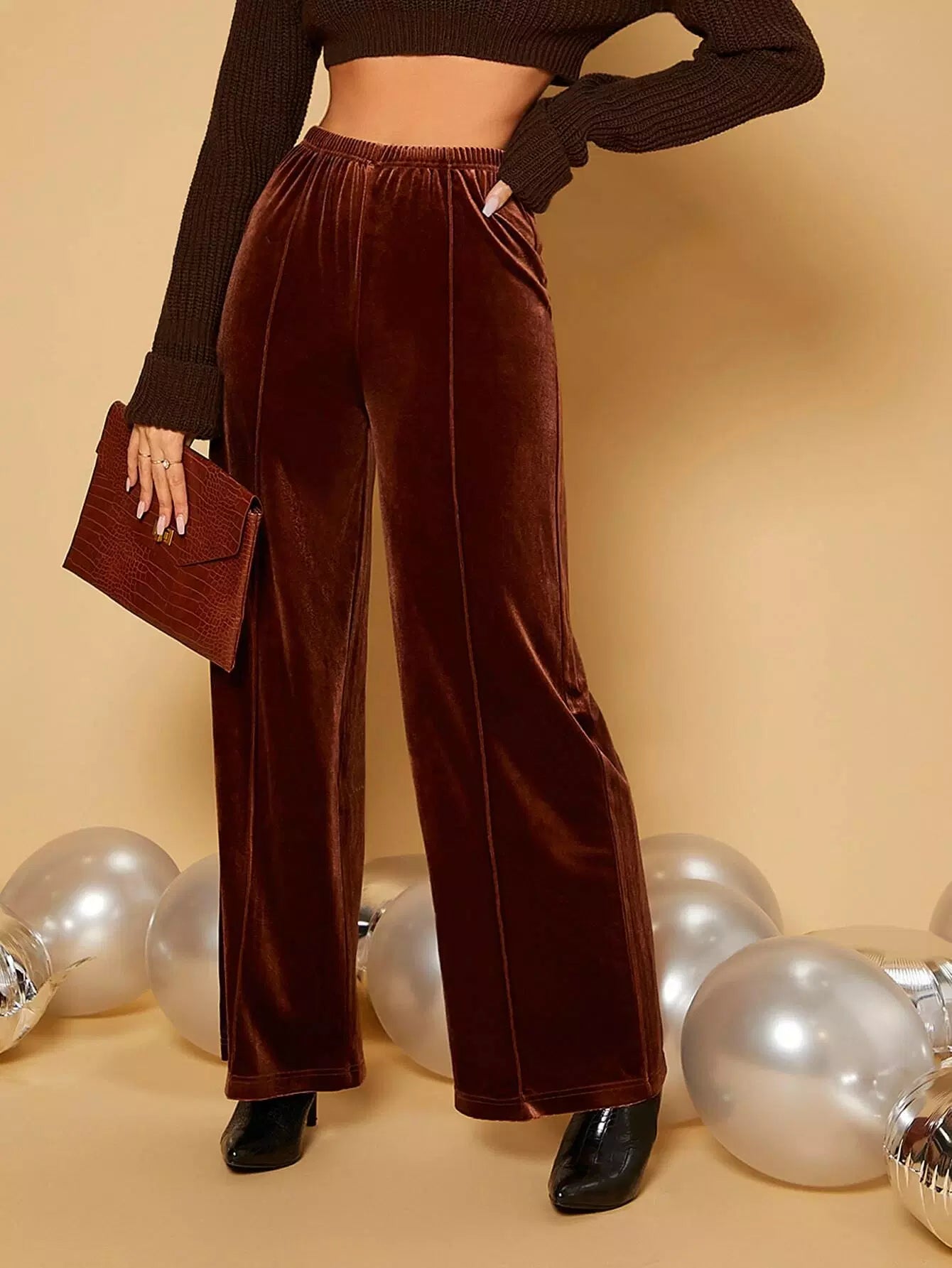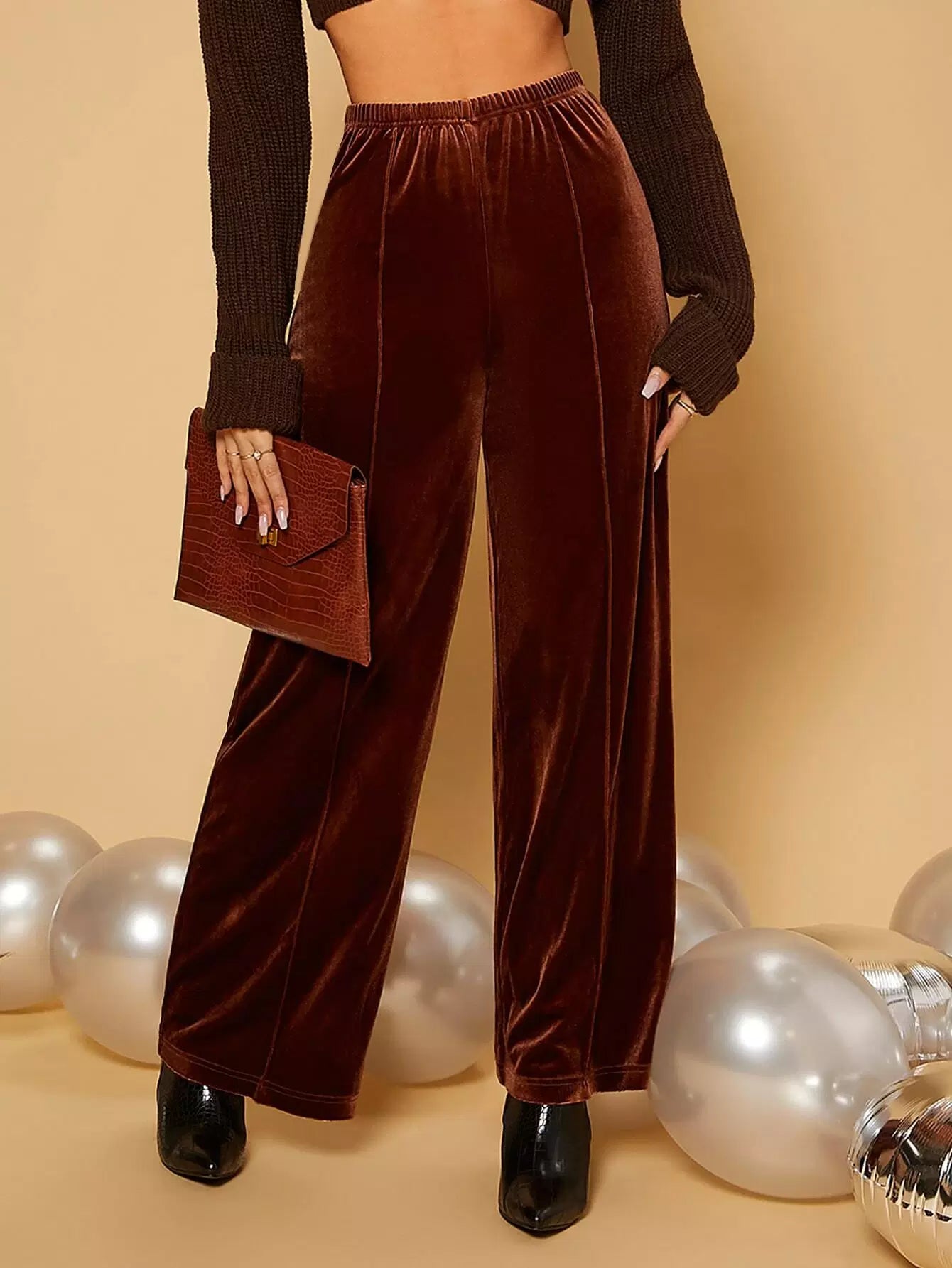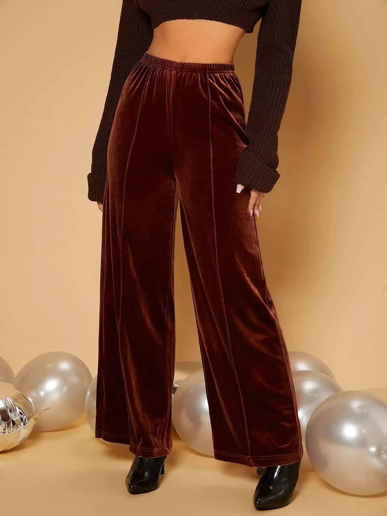 بنطال Palazzo مخملي بخياطة أمامية مرنة الخصر
