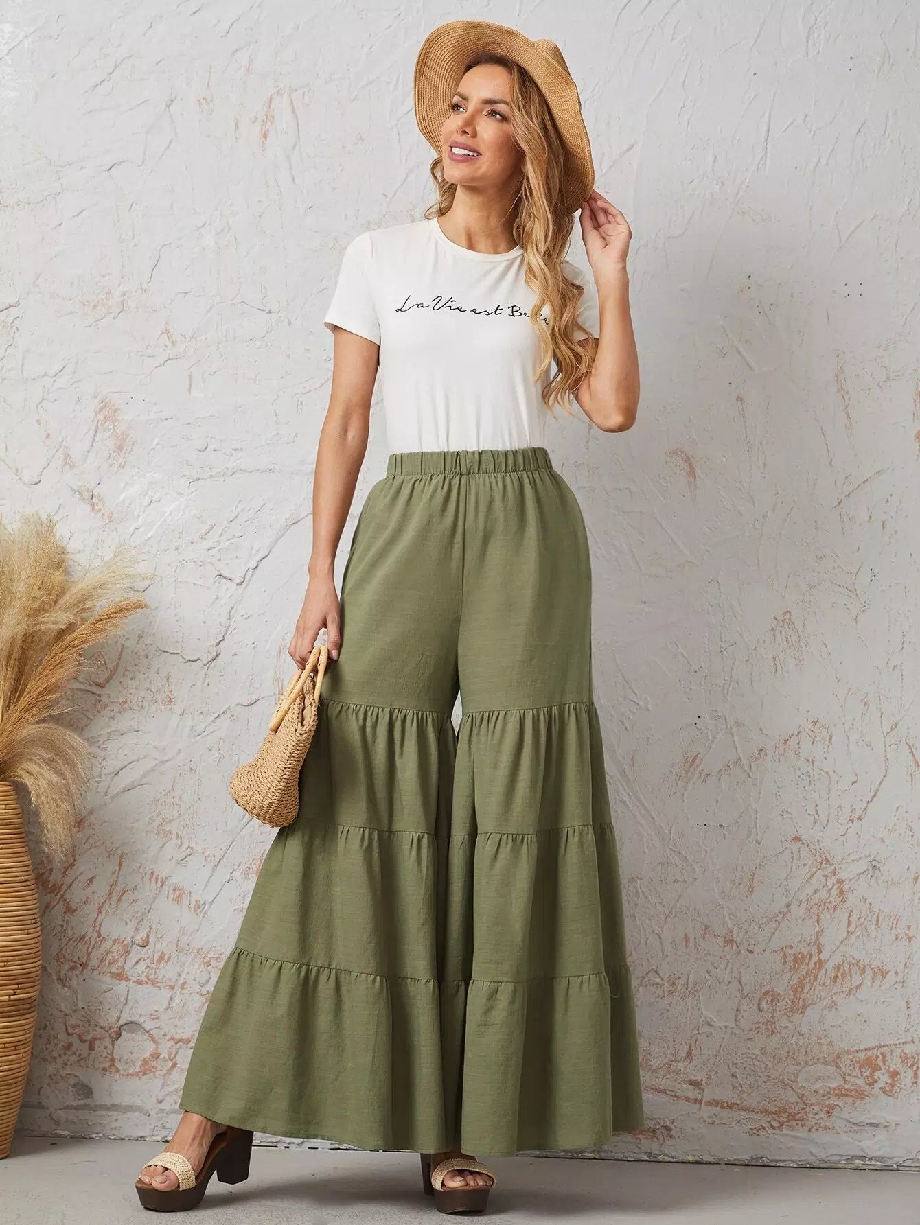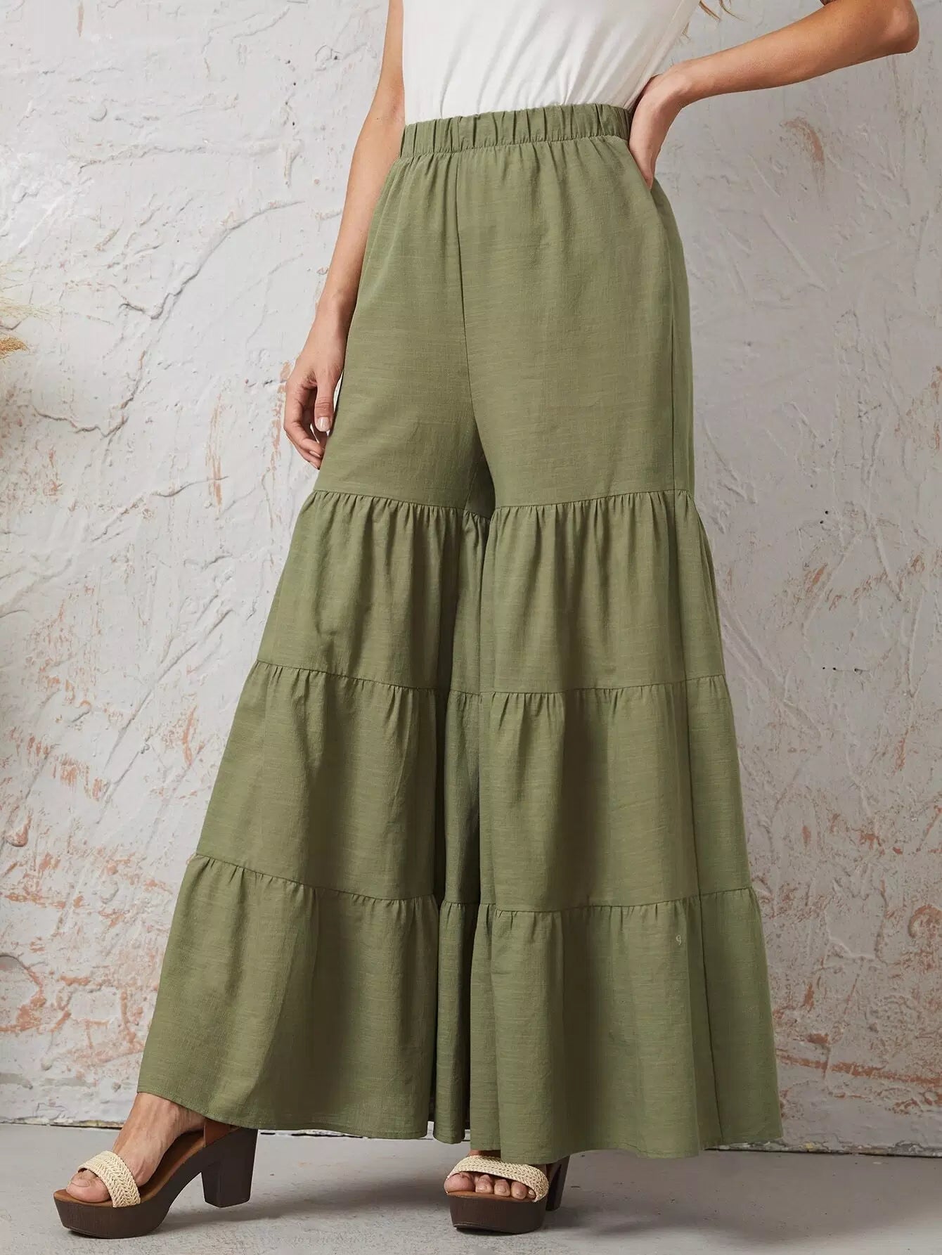 بنطلون بالازو بحافة مطاطية ذات خصر مطاطي بحواف متدرجة