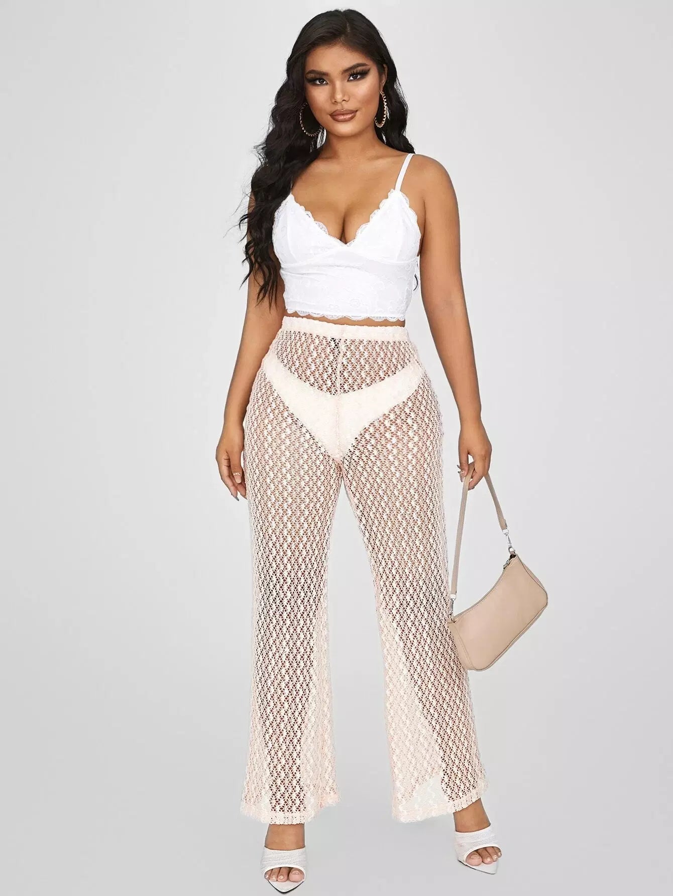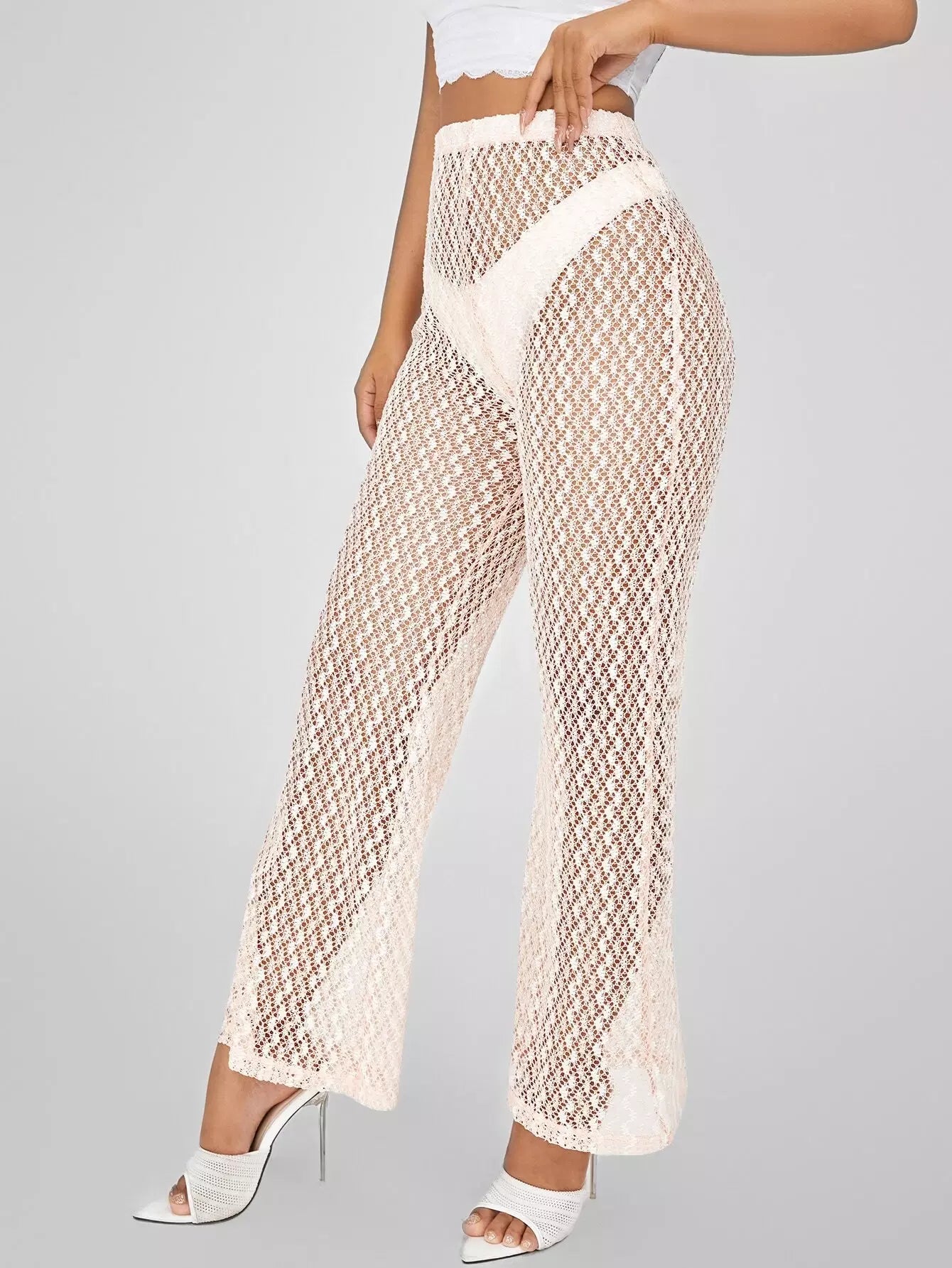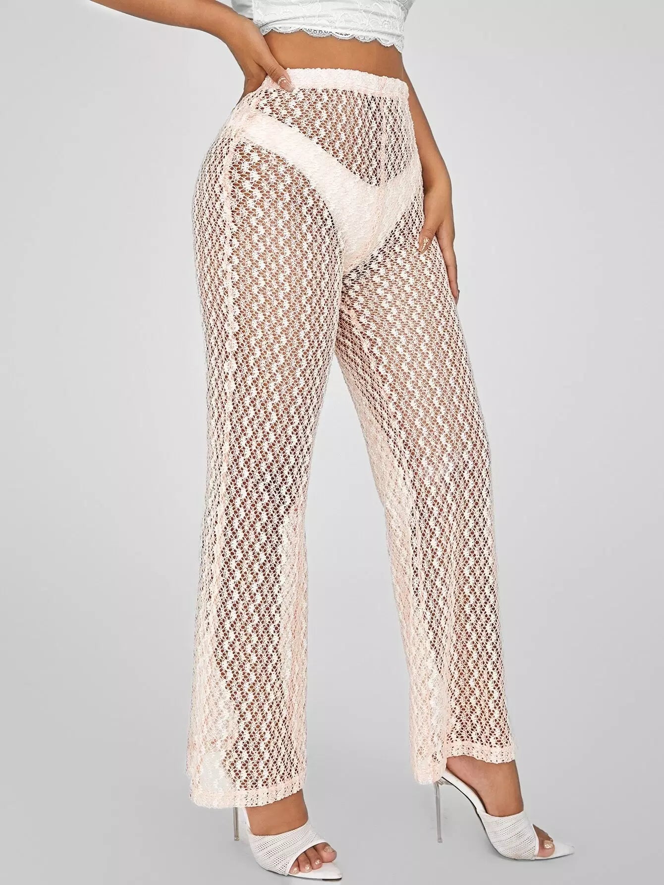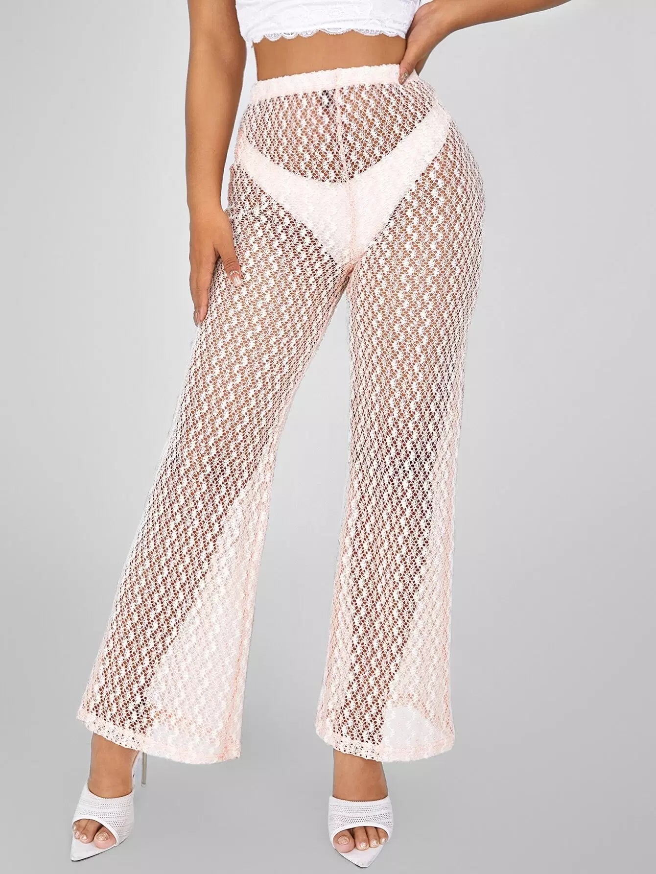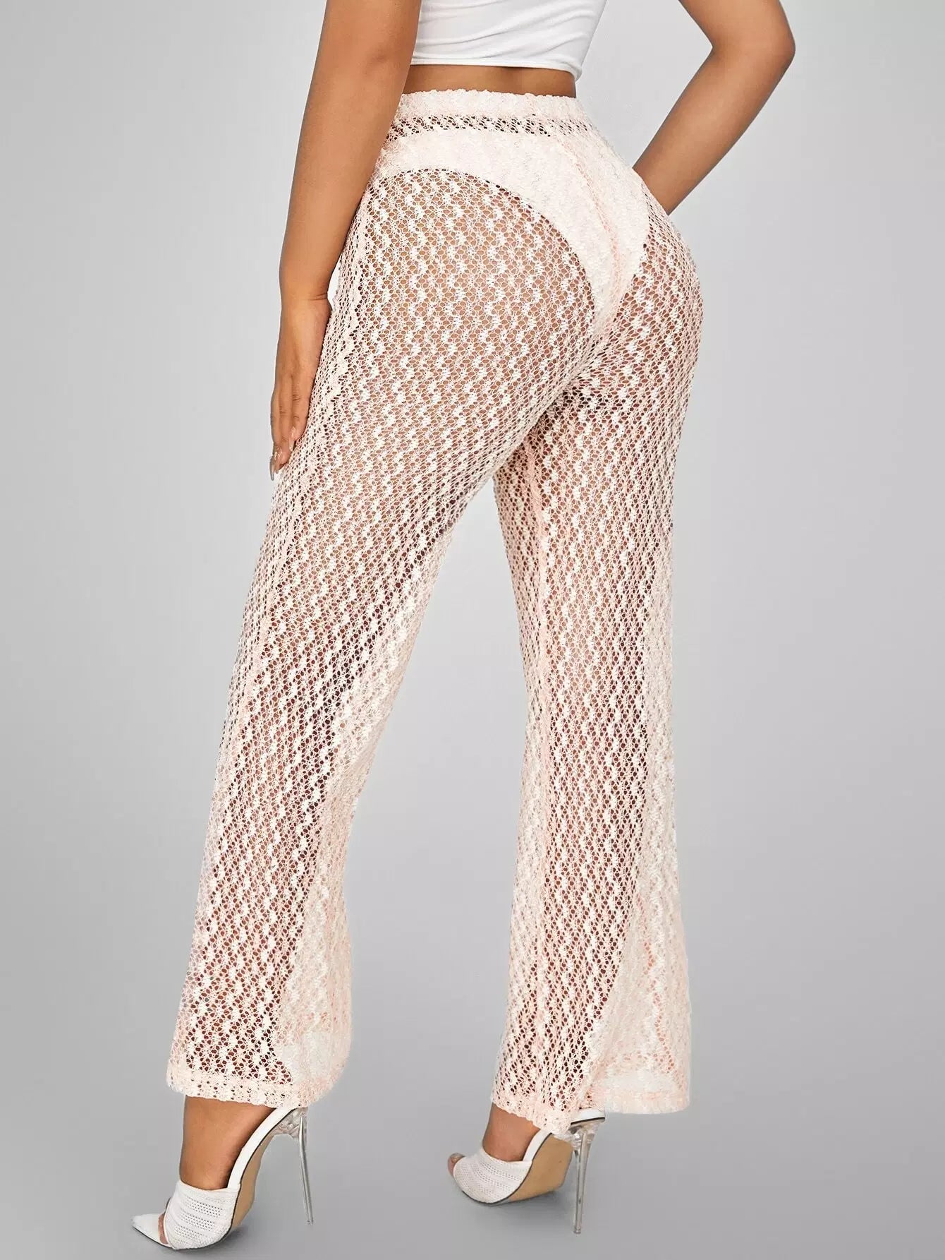 بنطال شفاف محبوك مفتوح من الأمام وخصر مطاطي بدون سروال داخلي