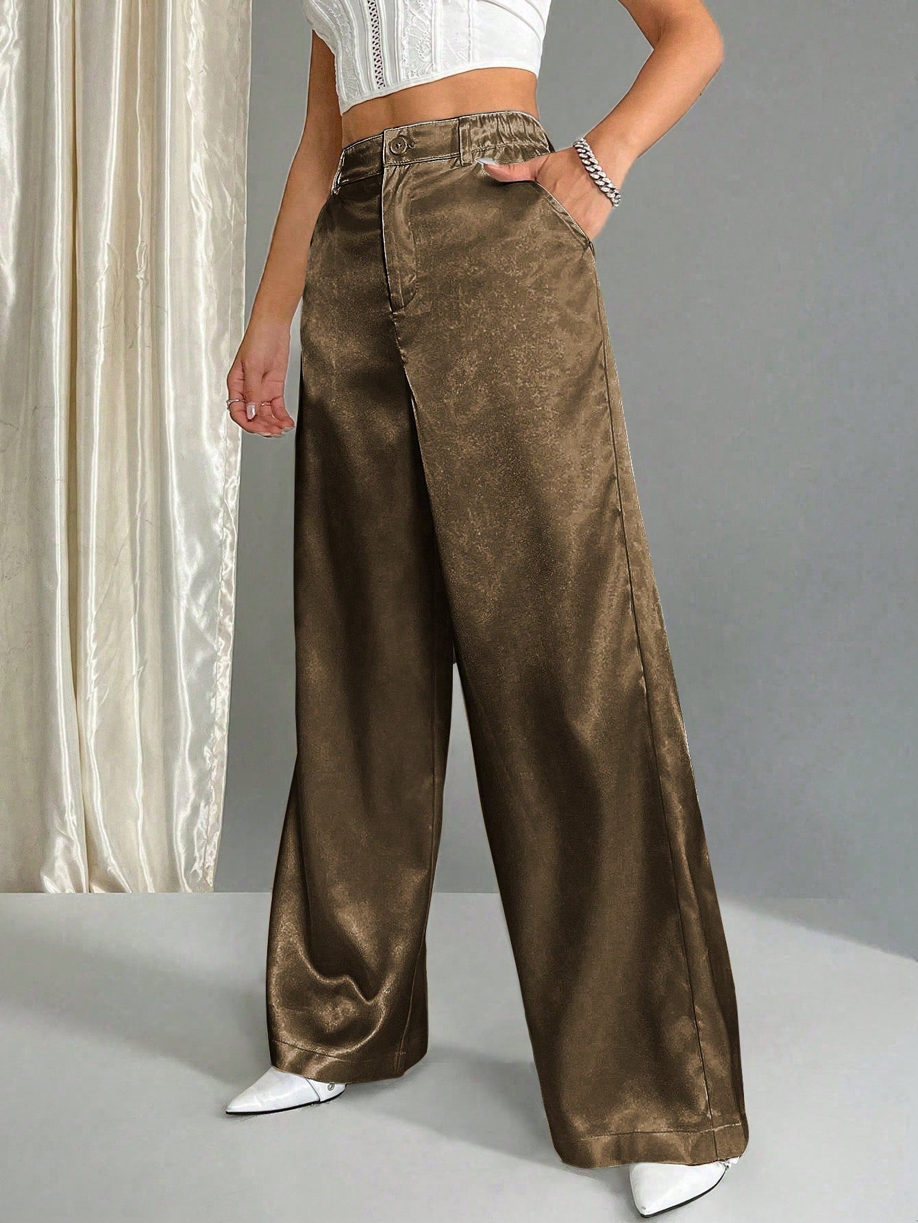Flirla Women's Simple Front Button Pocket Casual Pants For Daily Wear