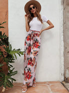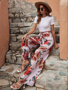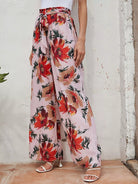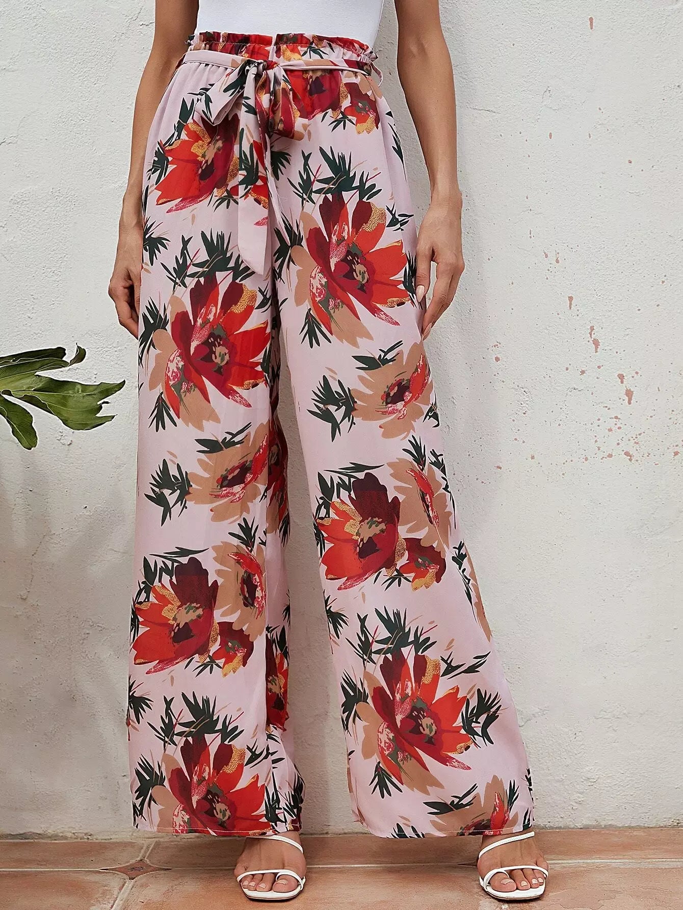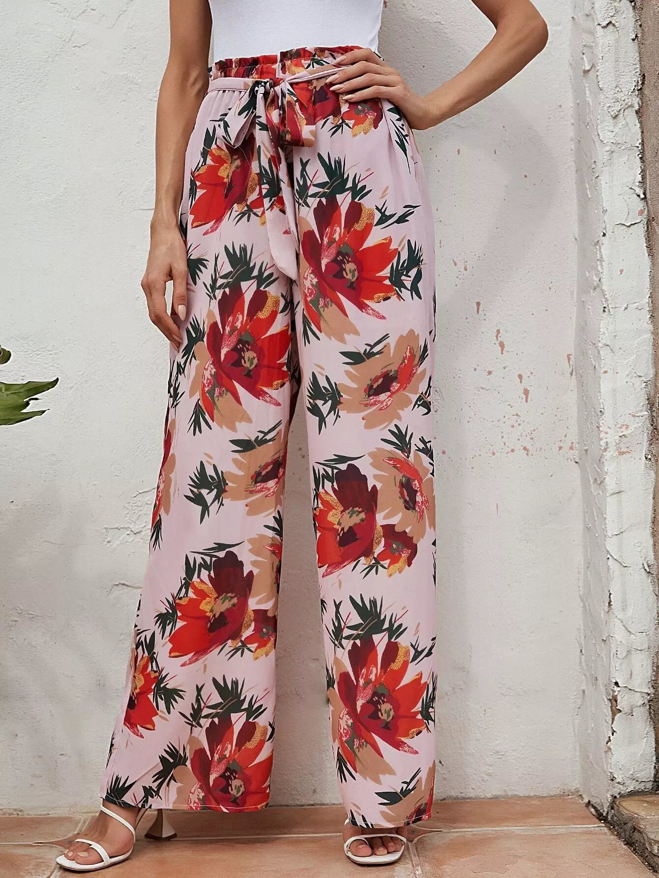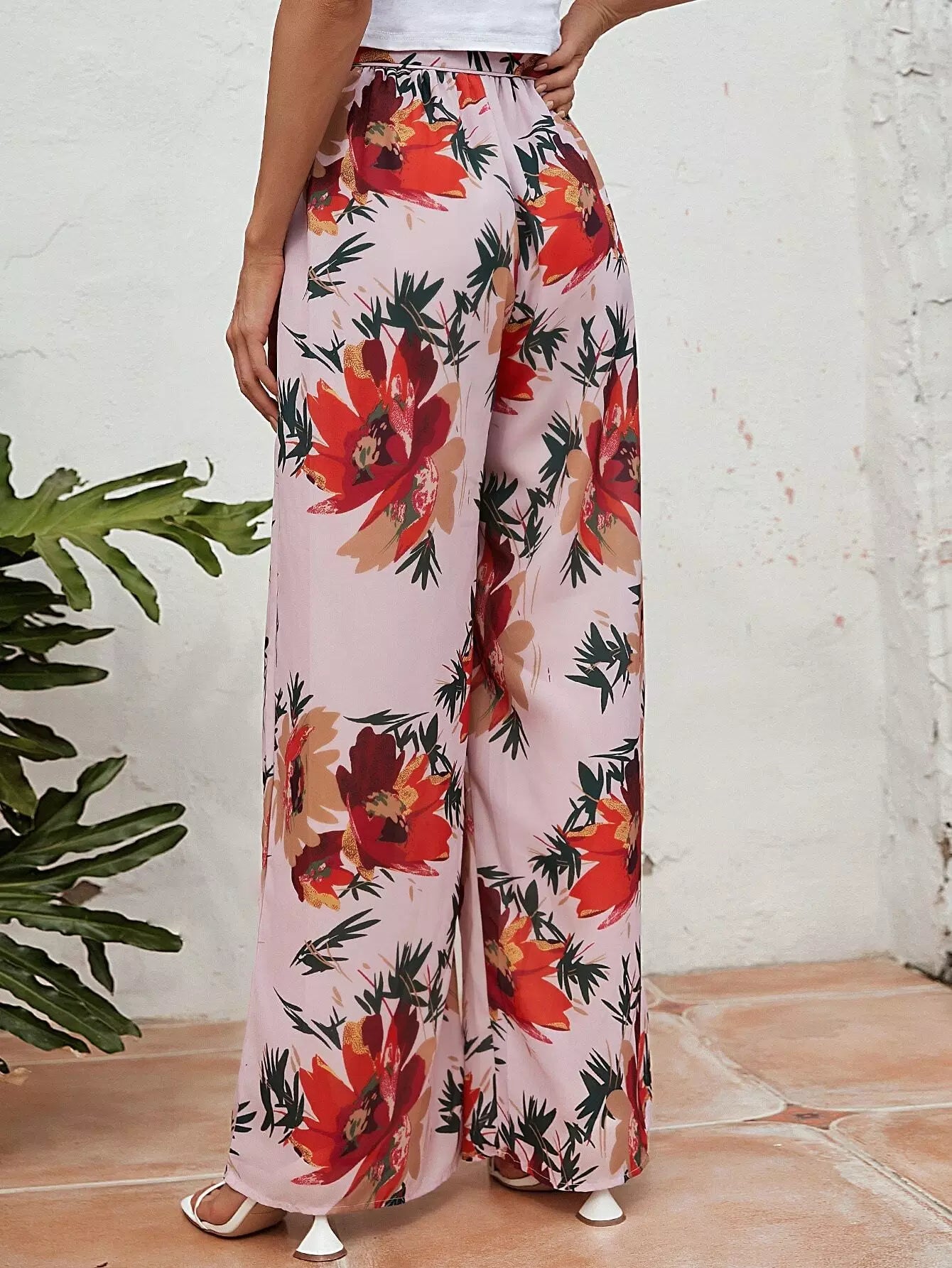 بنطال بأرجل واسعة وطبعات زهور بدون حزام