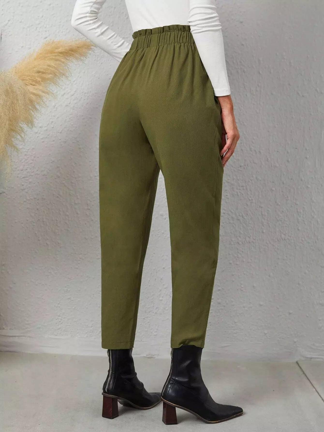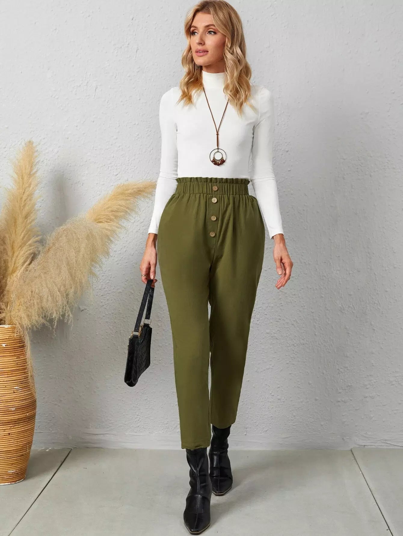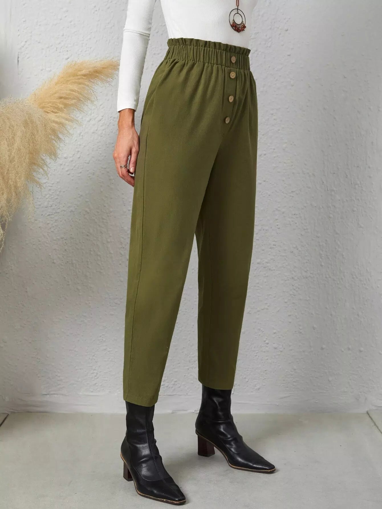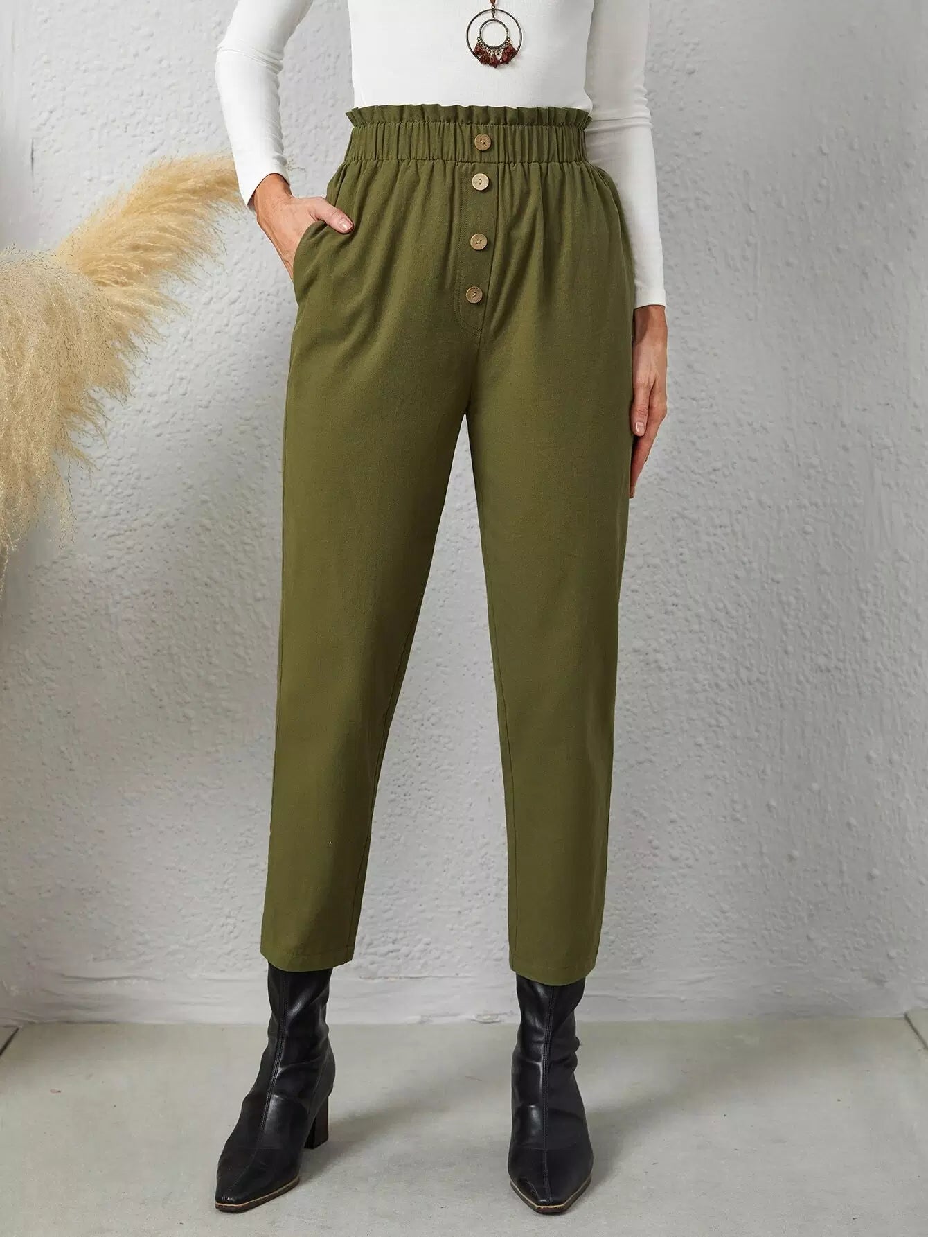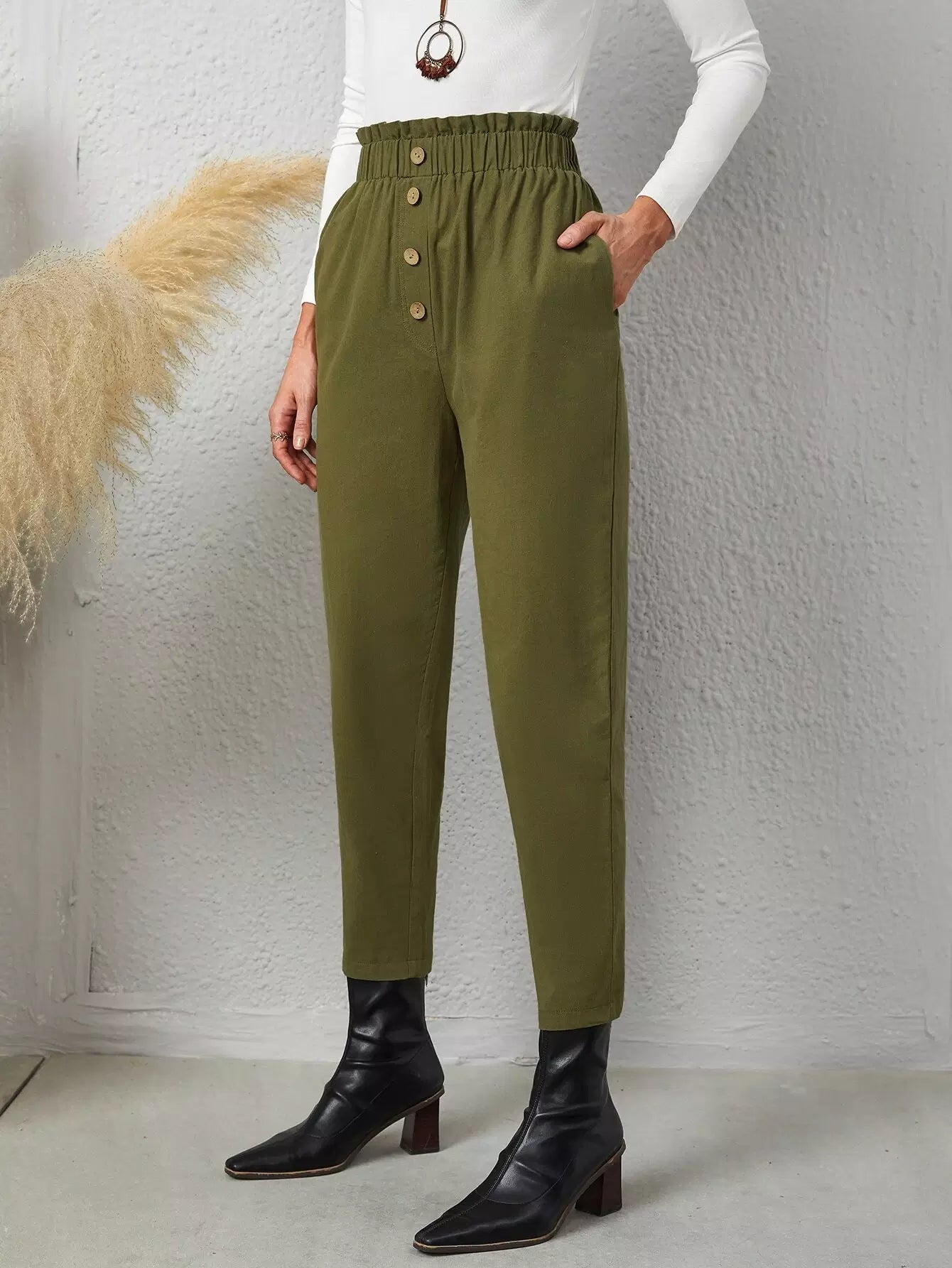 بنطلون بجيوب مائلة بأزرار مائلة بخصر كشكش