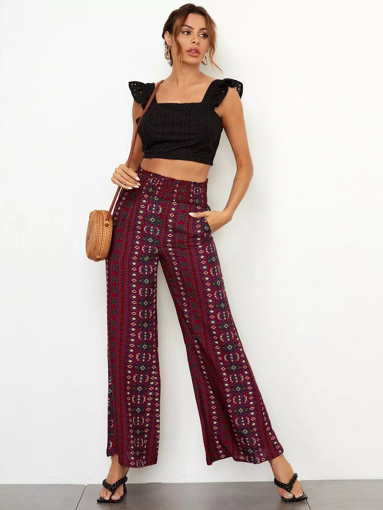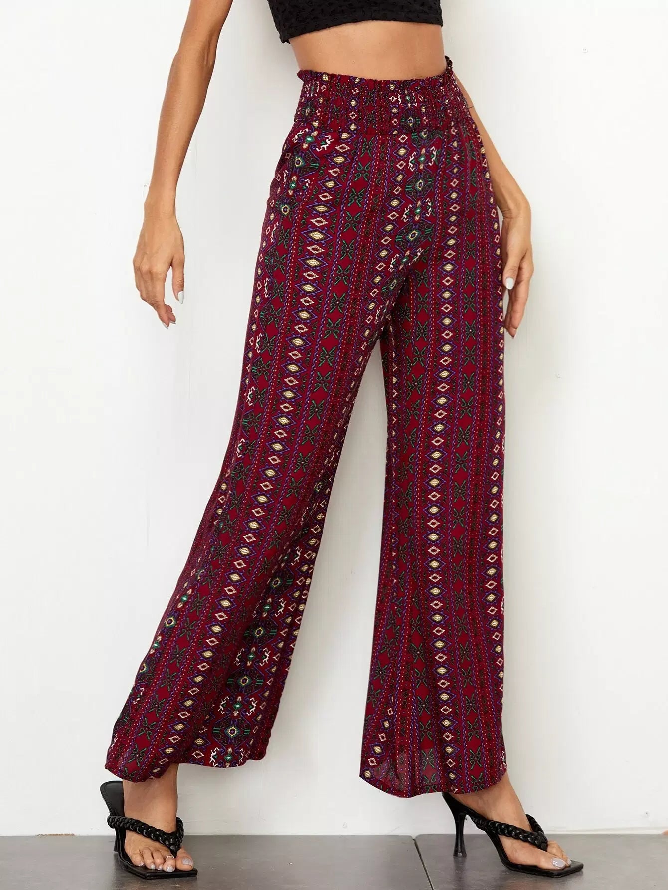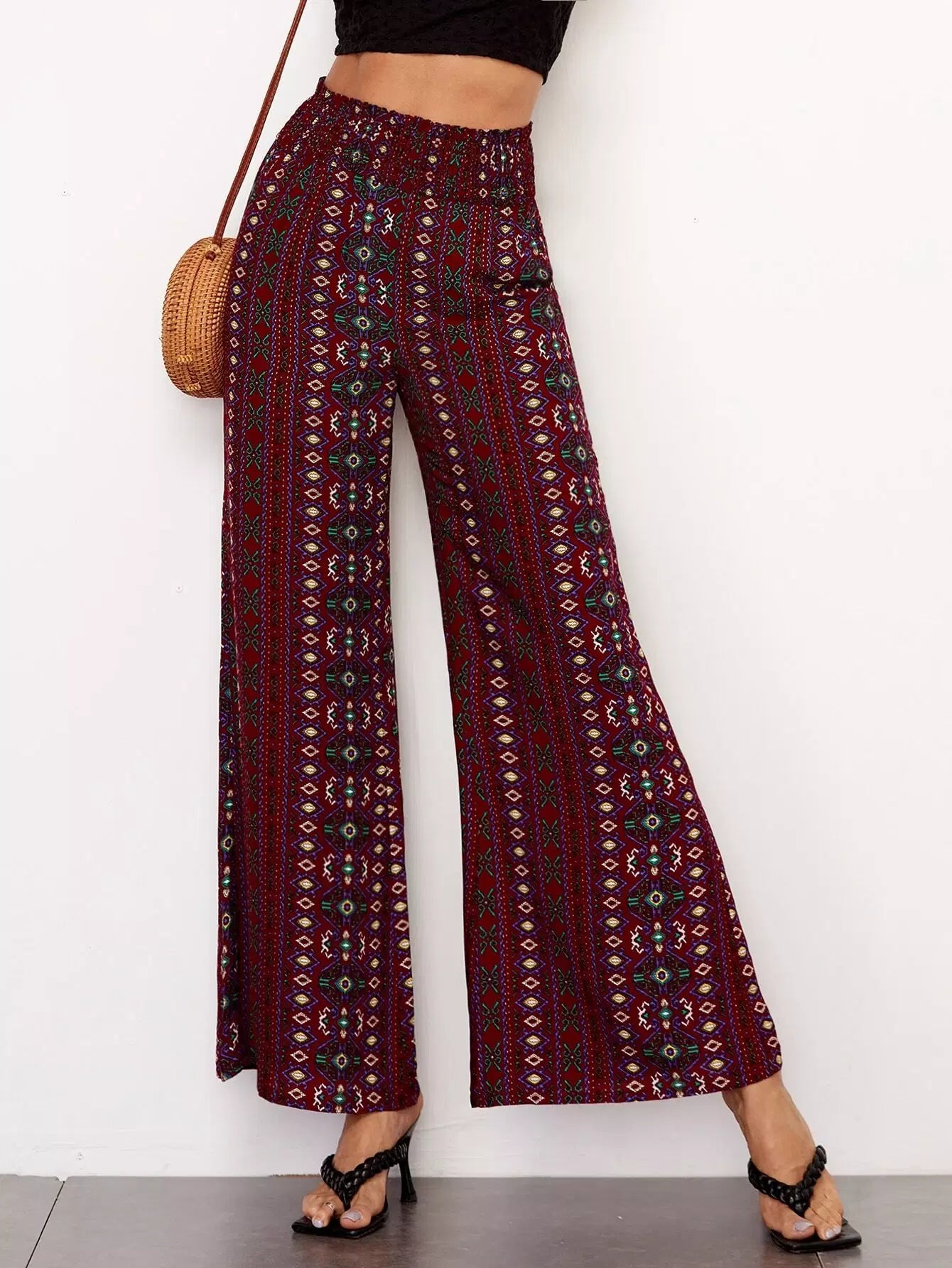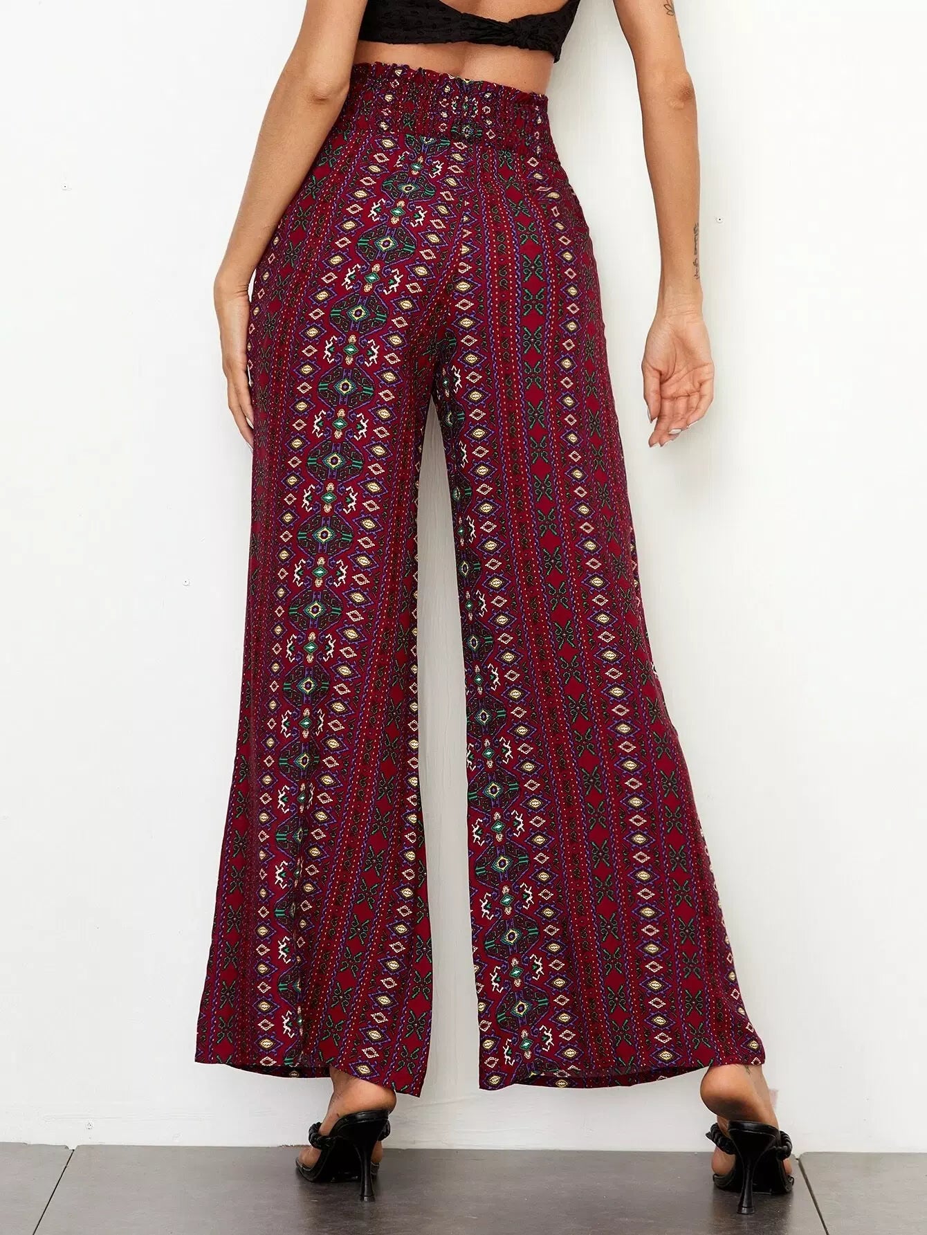 بنطال واسع الساقين بطبعة جيو
