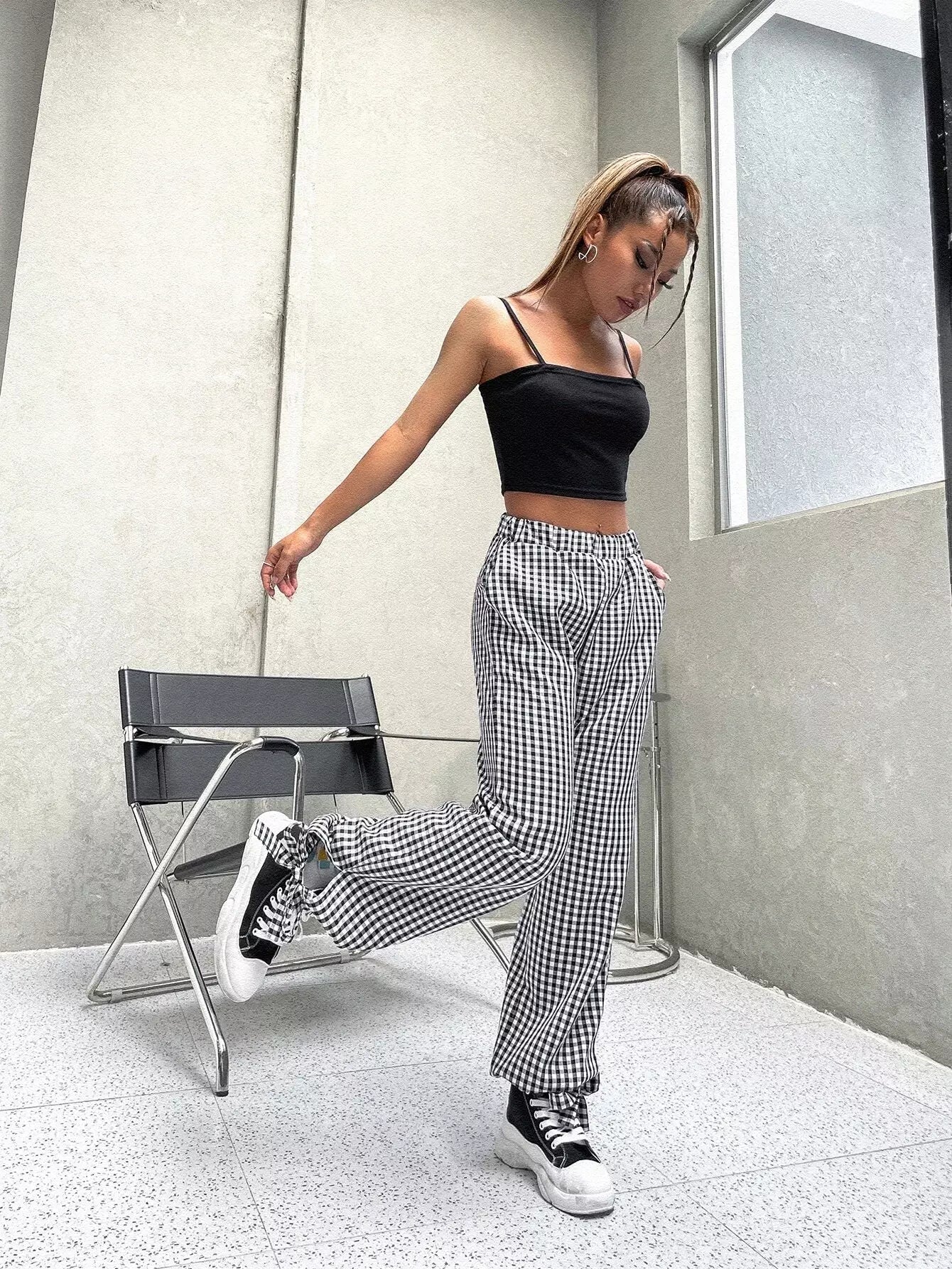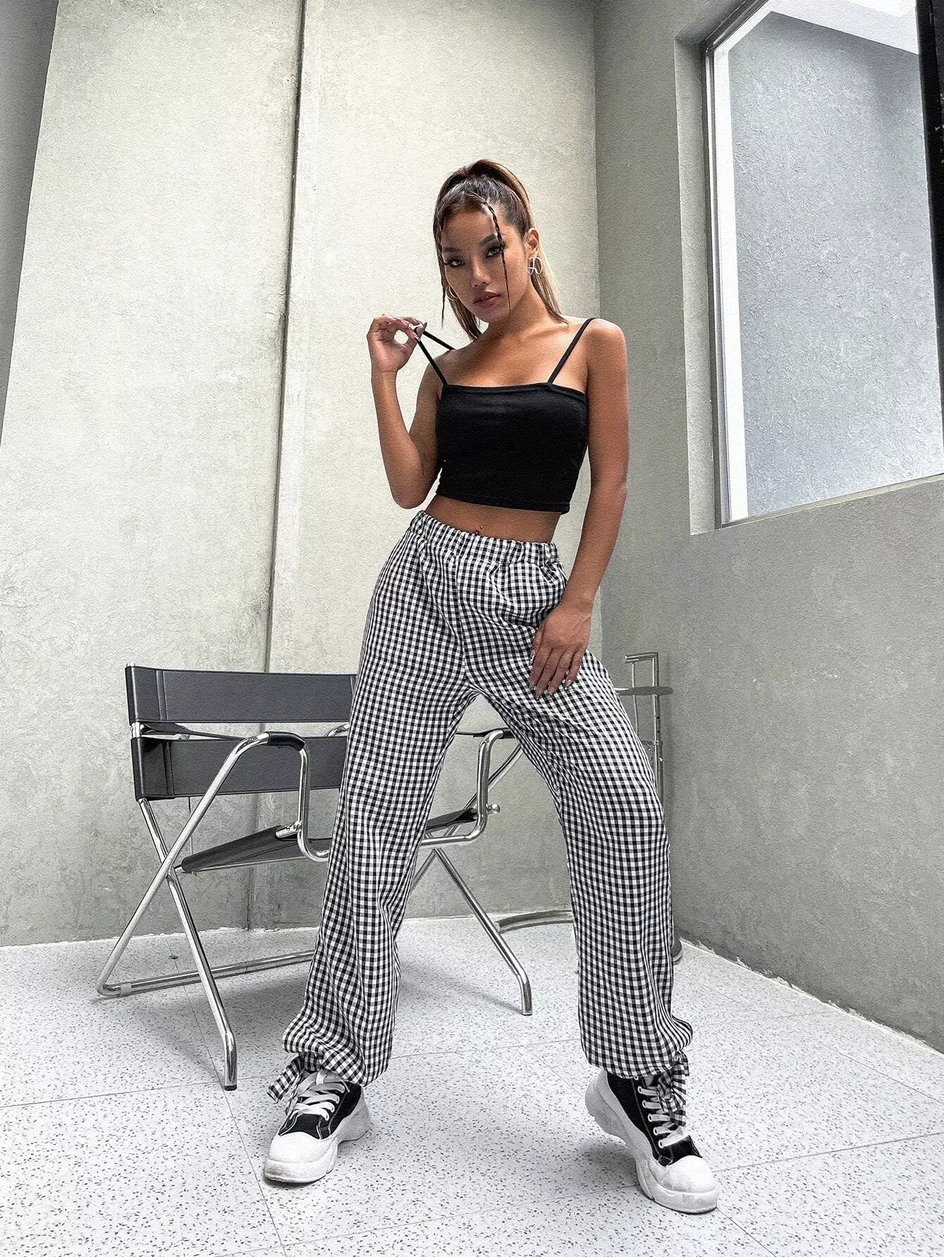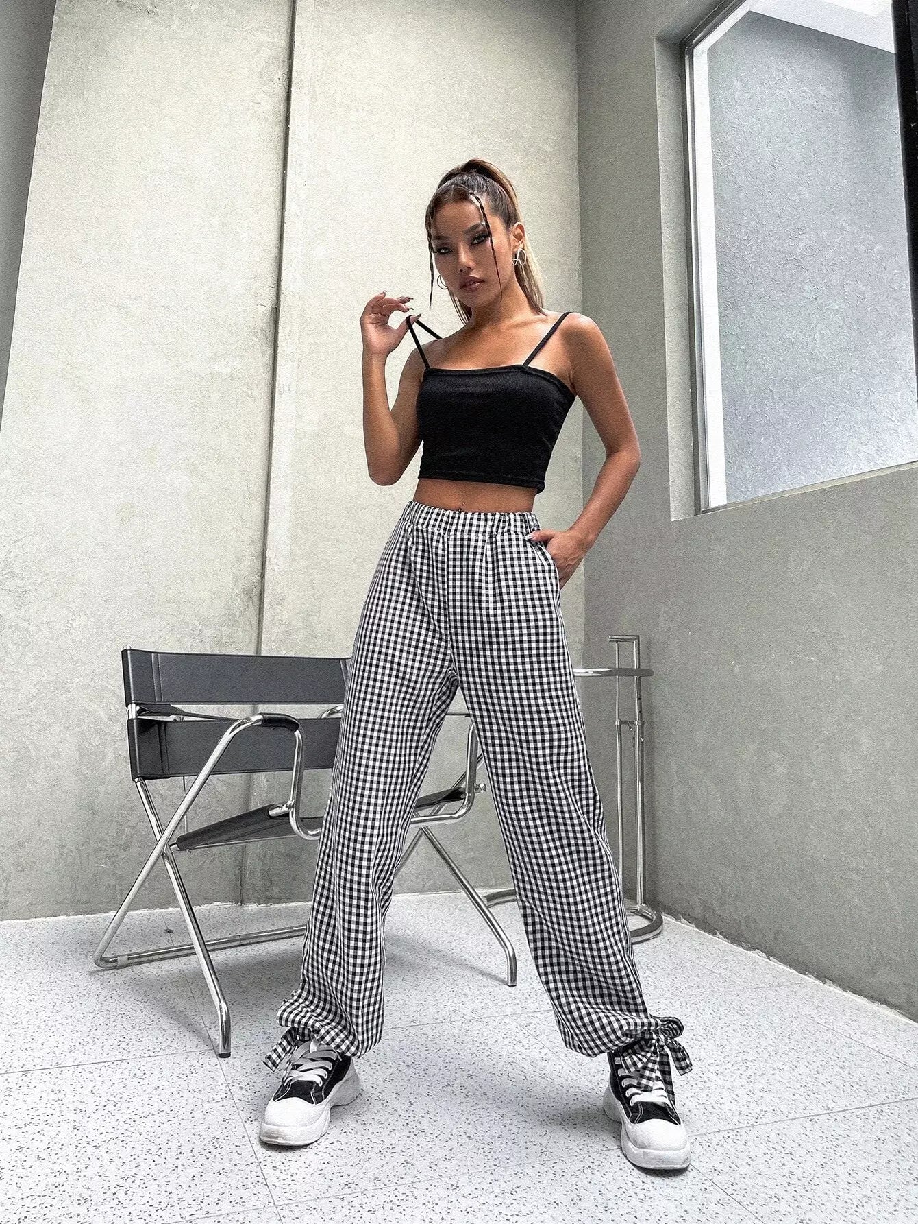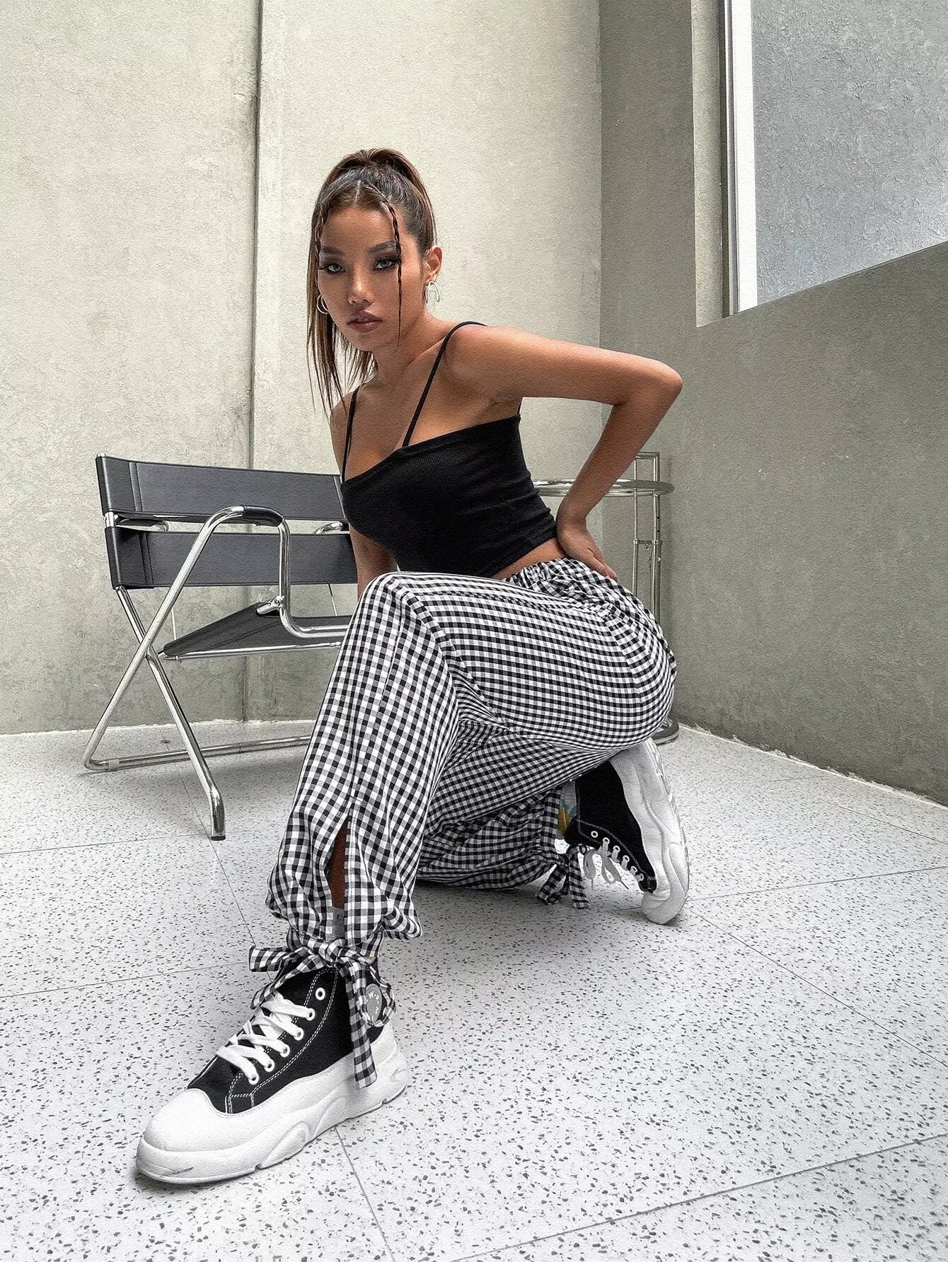 بنطلون قطني ذو عقدة قطنية بأساور ضيقة