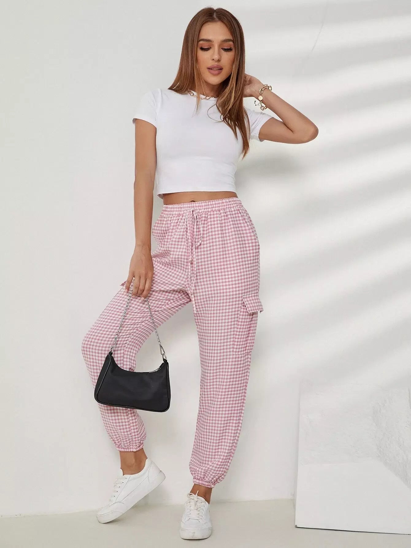 للنساء - بنطال بجيب قلاب وطبعة جينجهام