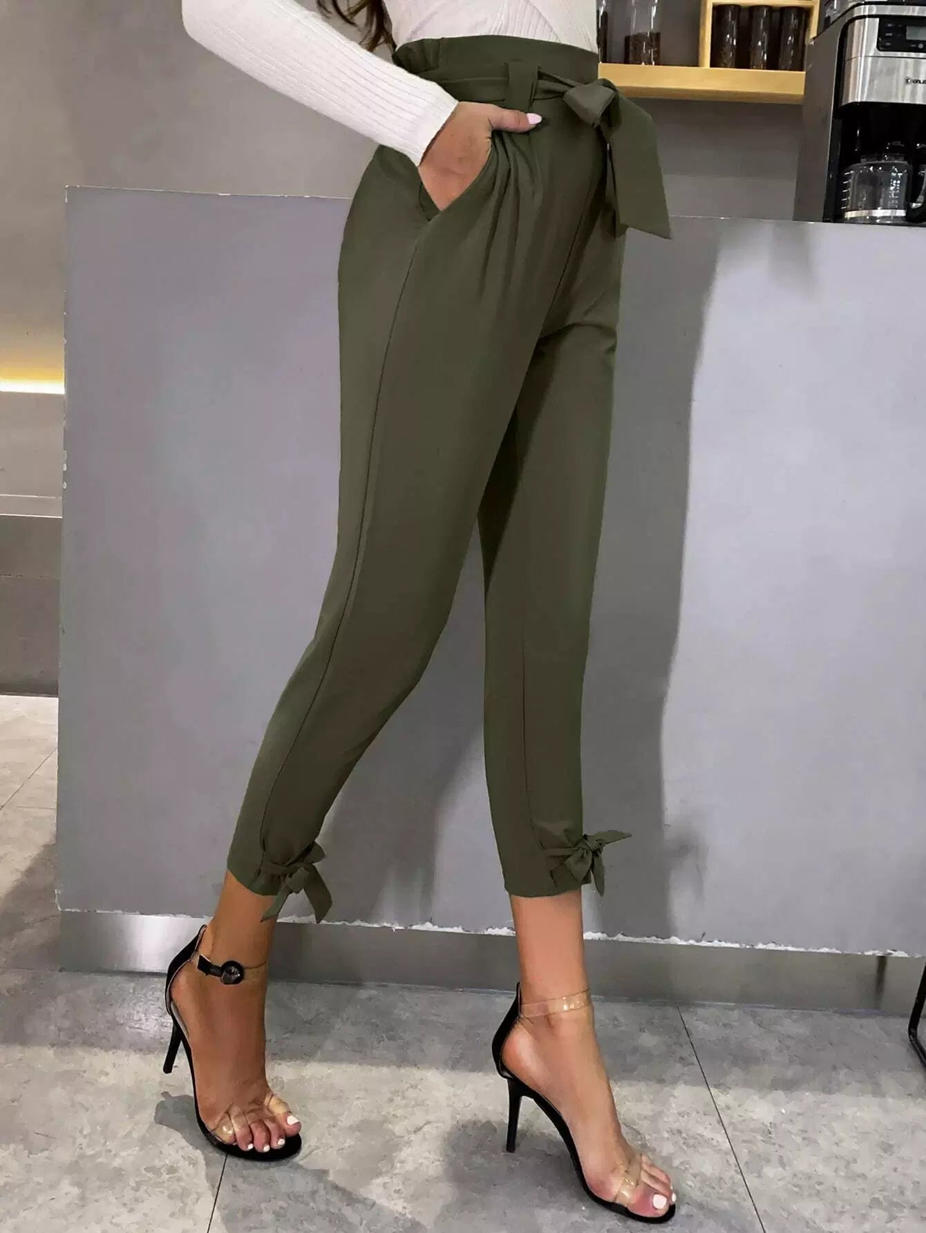 بنطال قصير بحاشية معقودة وخصر عالي بدون حزام