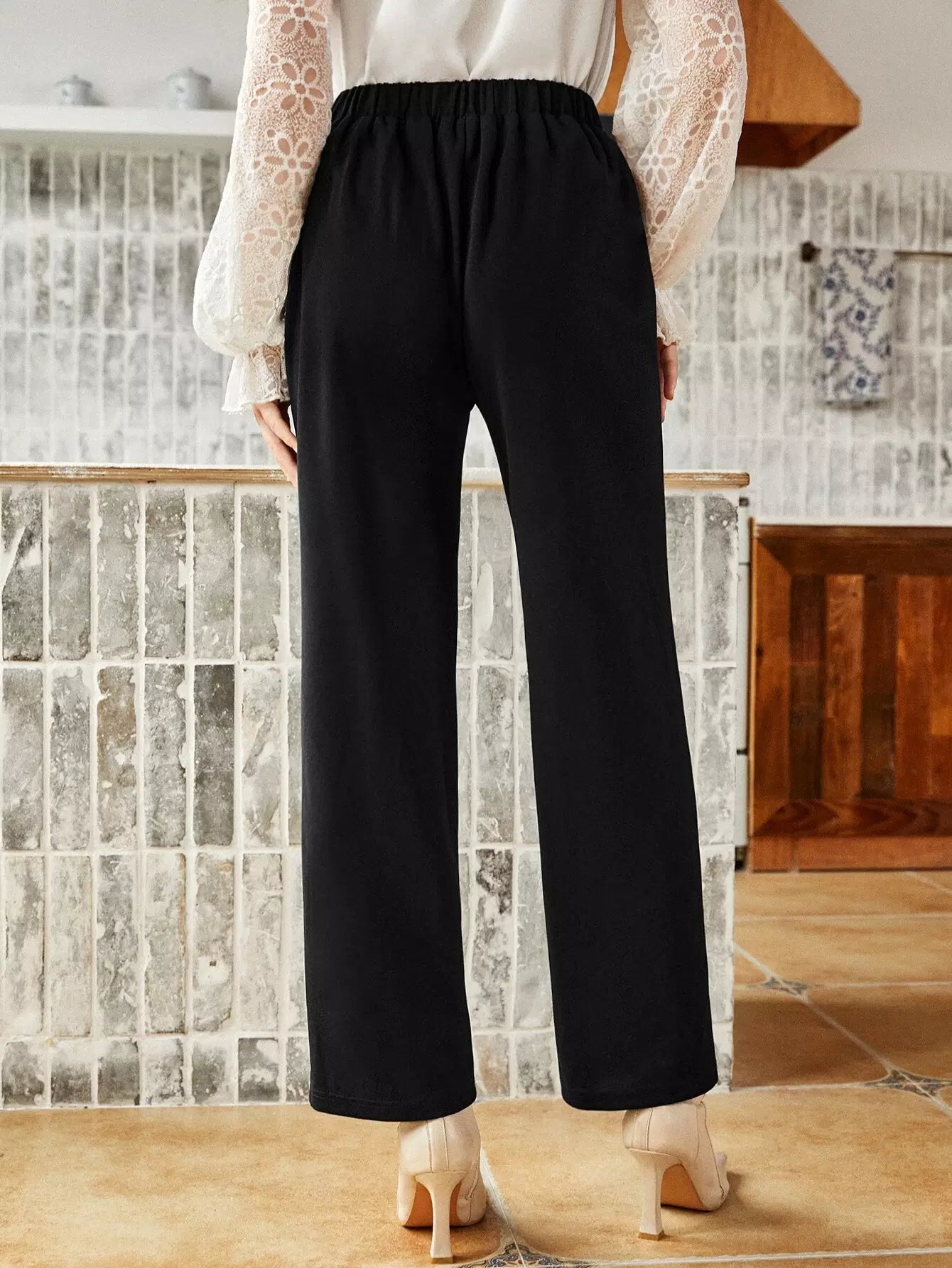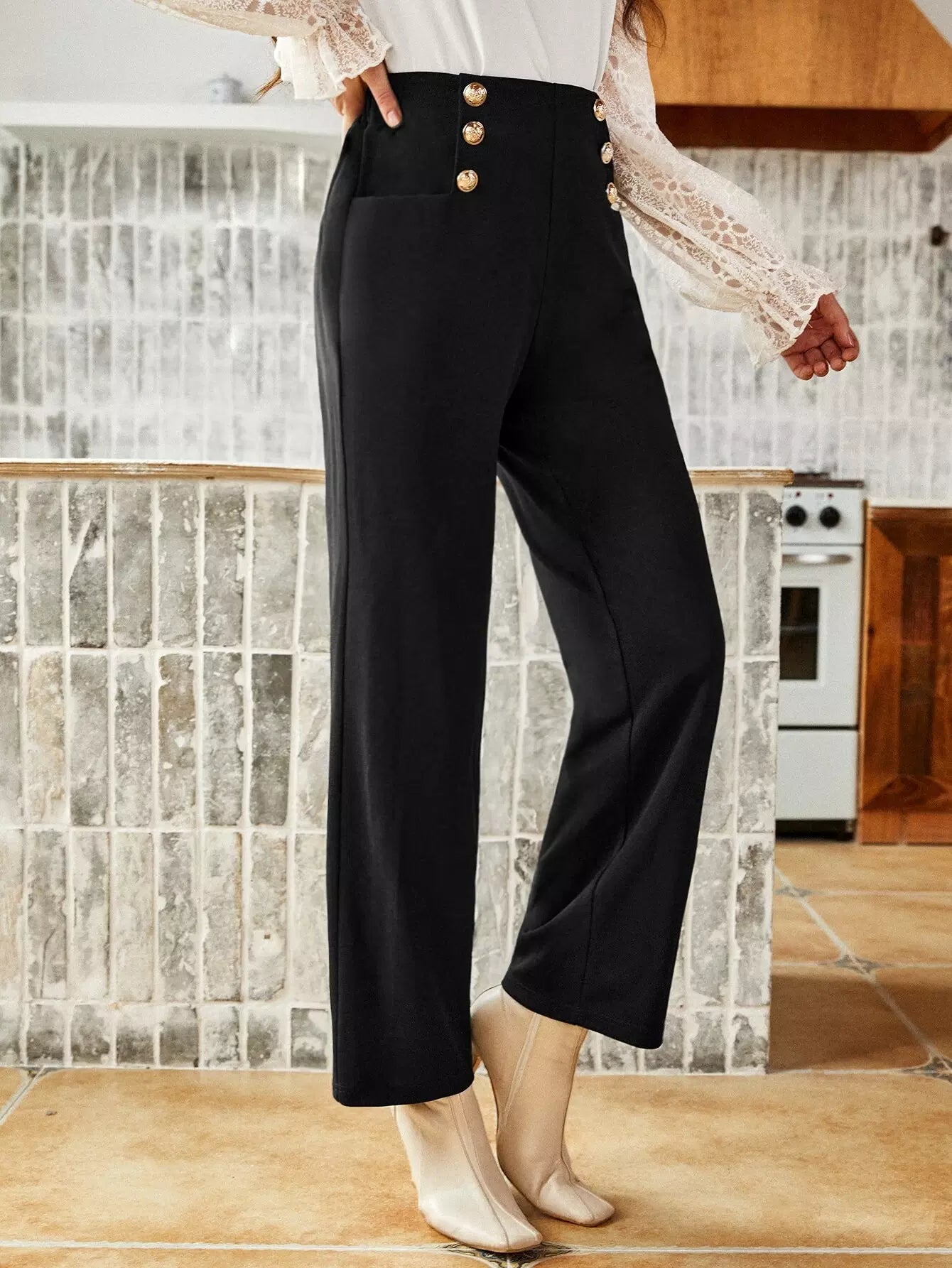 بنطلون بخصر عالٍ بأزرار أمامية بأرجل واسعة